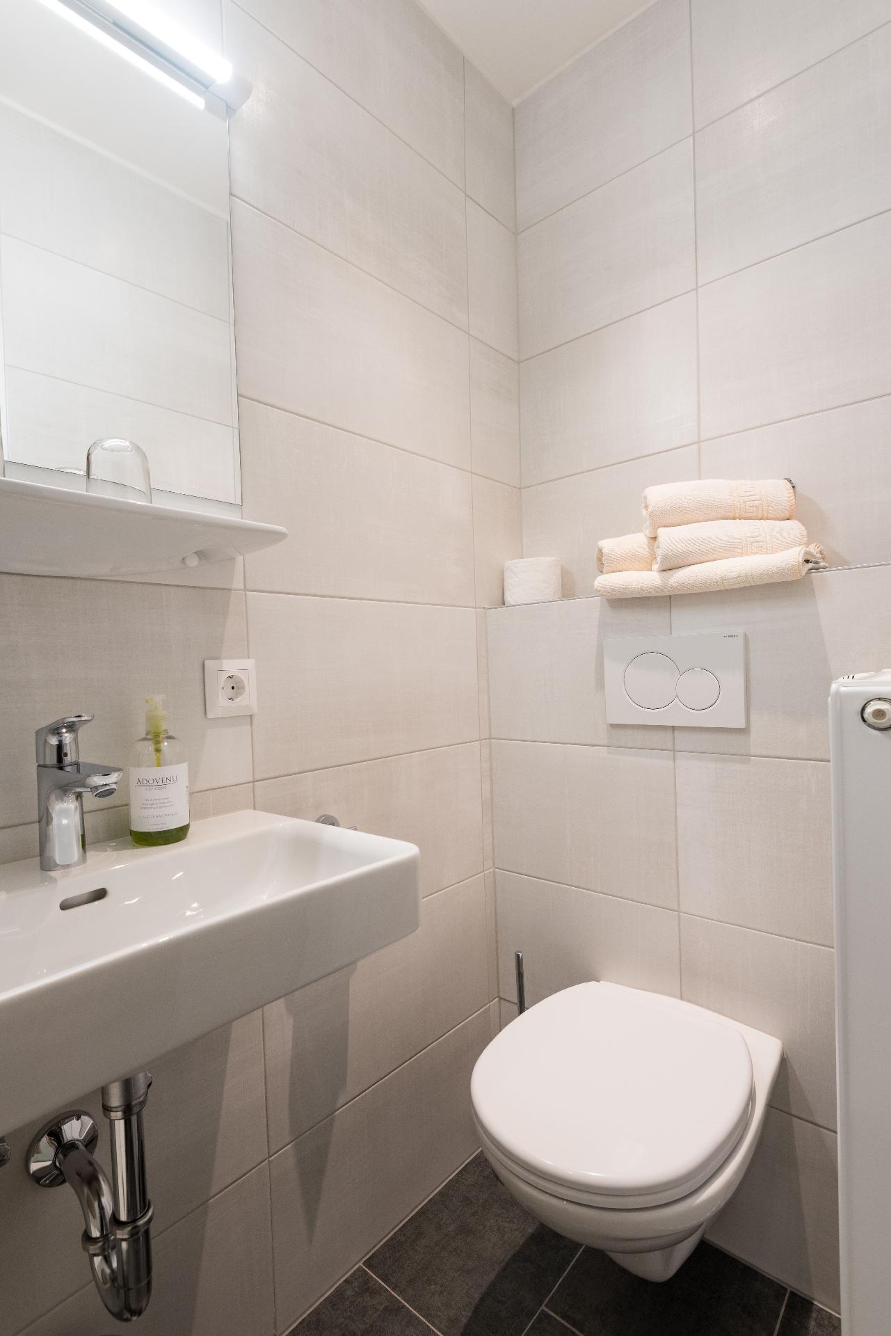 Bad/WC: Dusche; Dusche; Föhn; Solarium in der Nähe; Toilette; Toilette; Waschbecken
