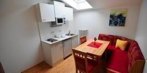 Unsere Ferienwohnung besteht aus 1 Zimmer mit Dusche/WC, Balkon, Sat-TV und Wohnküche für bis zu 4 Personen und ist natürlich voll ausgestattet. Zum supergünstigen Fixpreis!