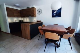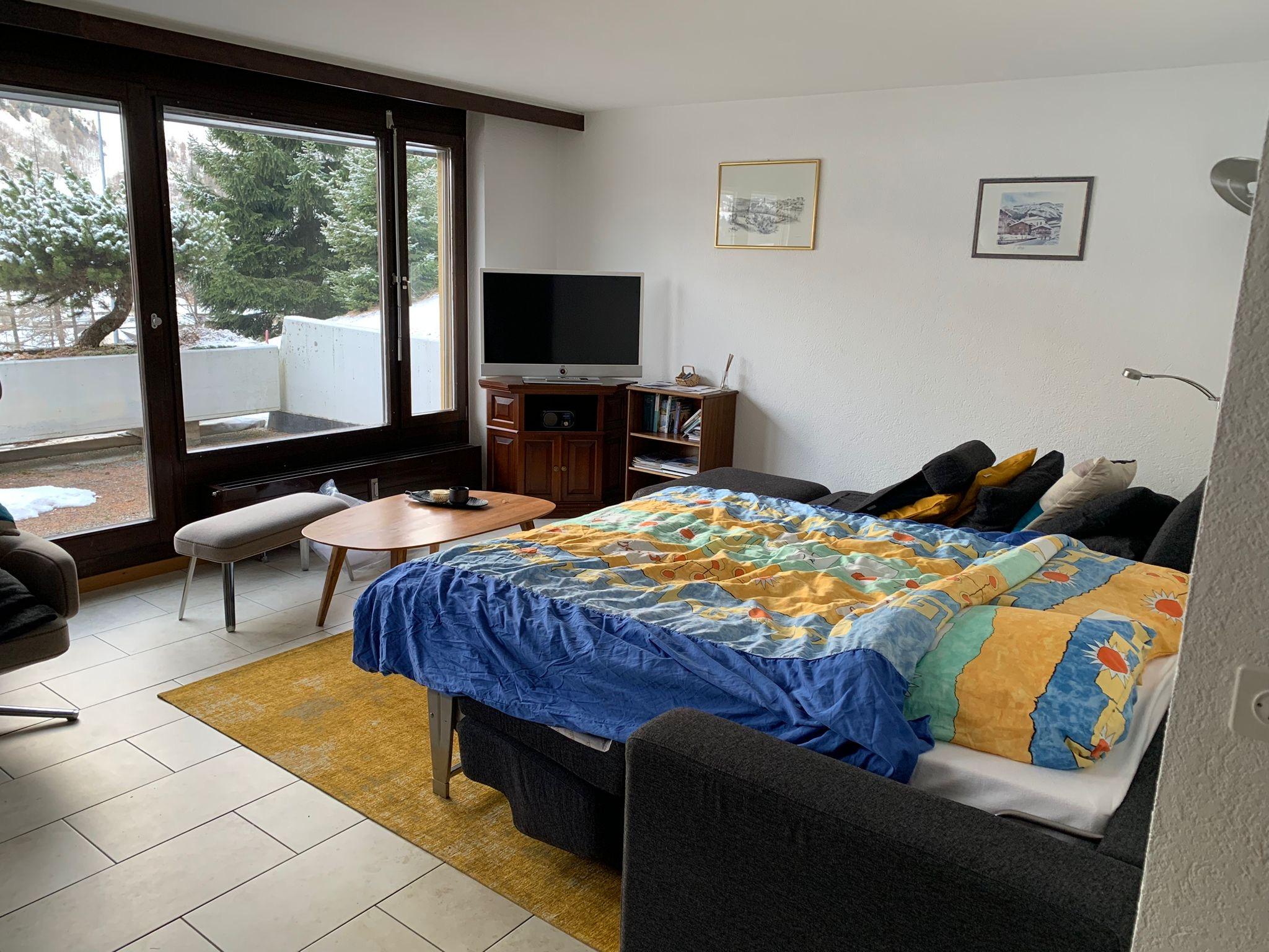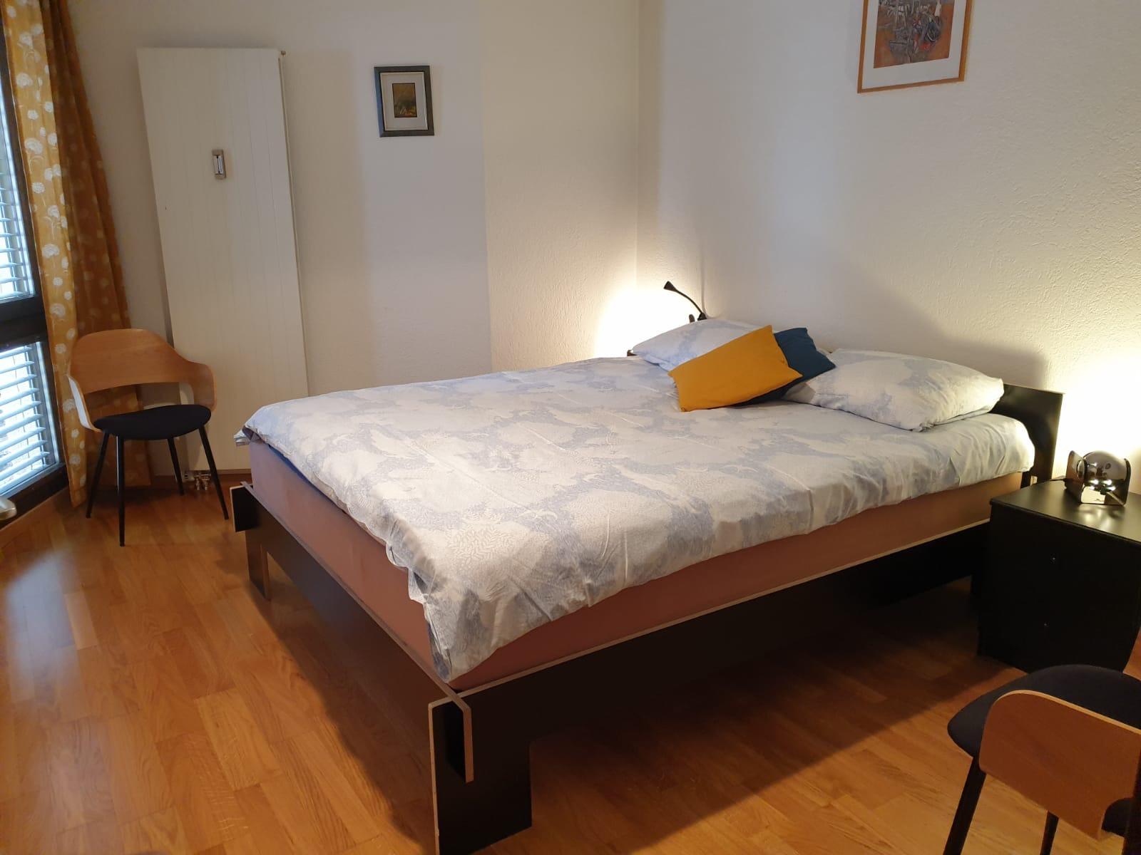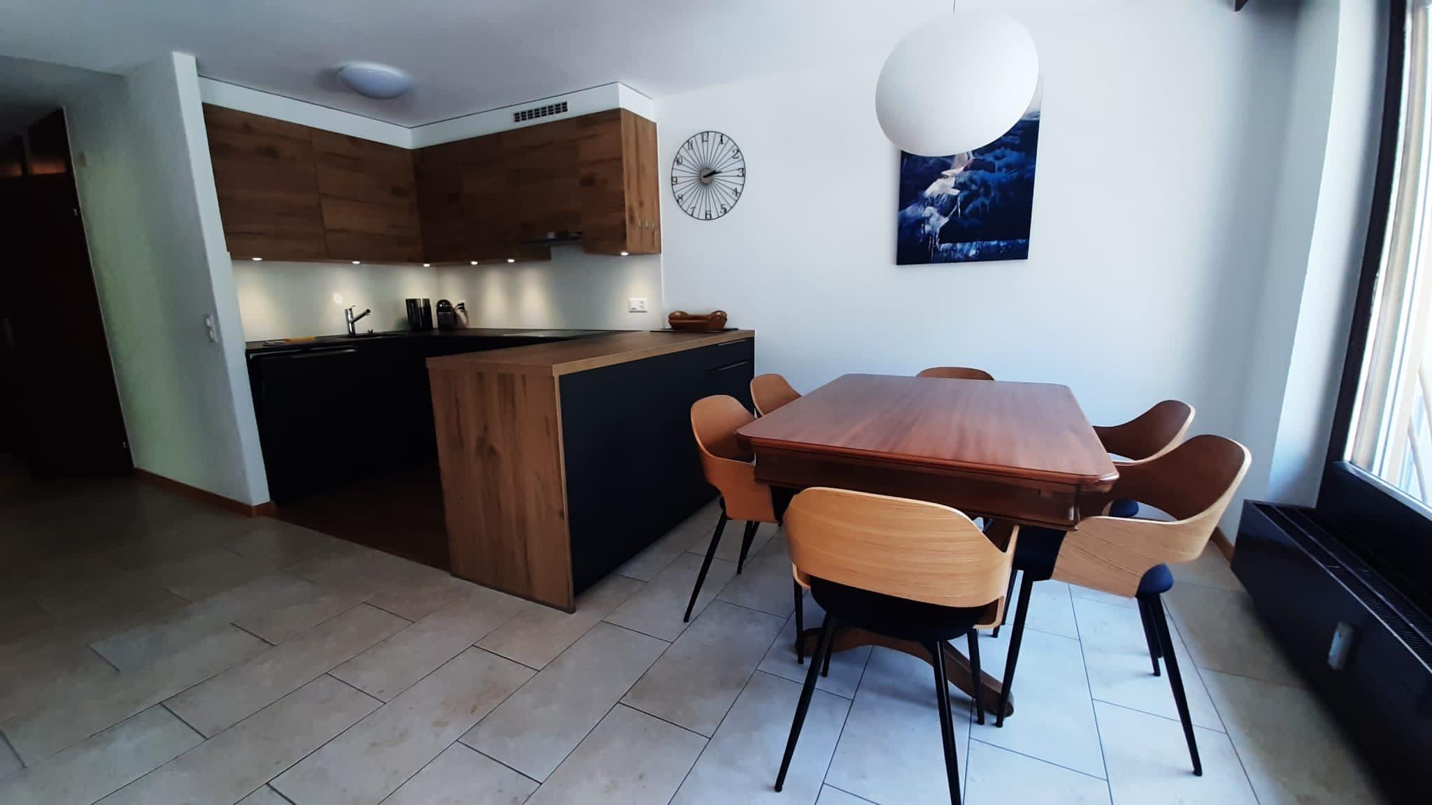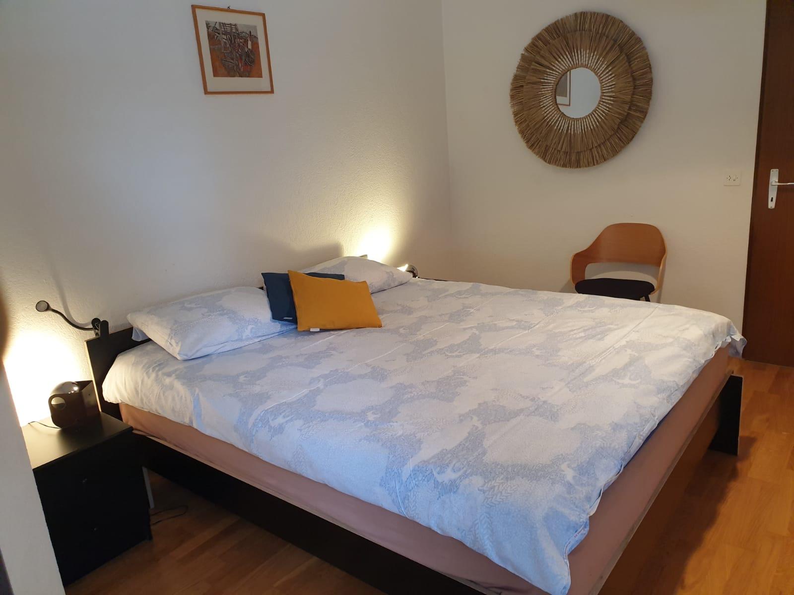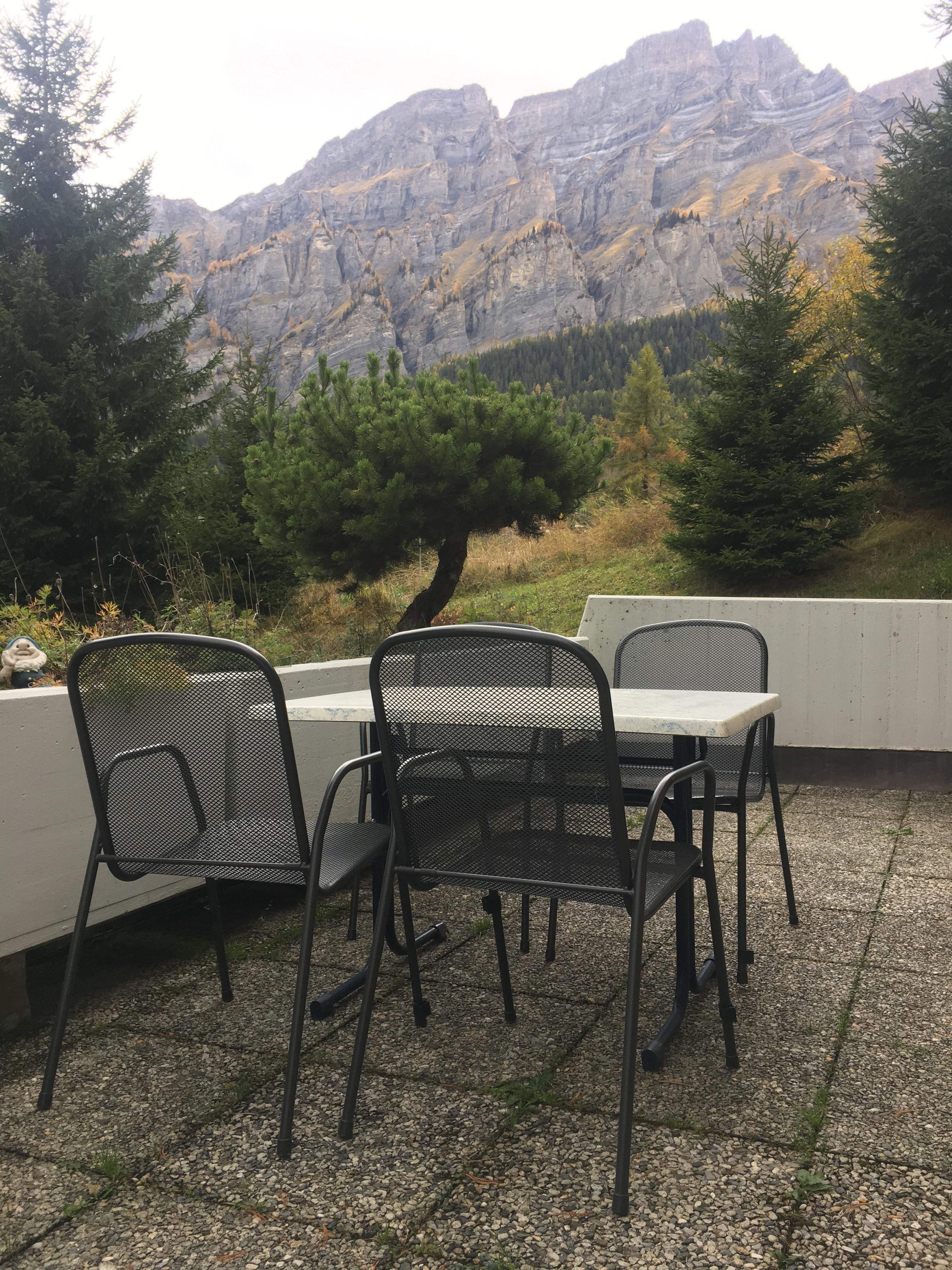3-Zimmerwohnung (70m2), 1. Etage, renoviert im 2023: Grosses Wohn-/Esszimmer mit Doppel-Sofabett, gratis WiFi, offene Küche mit Geschirrspüler, Fondue-Set, Raclette-Set, Kapsel-Kaffemaschine (Nespresso) und Filter-Kaffemaschine, 1 Doppelschlafzimmer, 1 Schlafzimmer mit 1 Etagenbett plus Aussziehbett, Badezimmer und separates WC, TV, Radio, grosser Süd-Balkon mit Panoramaausblick. Aussenparkplatz inklusive. Nichtraucherwohnung! Haustiere nicht erlaubt! In nächster Nähe: Haltestelle Ortsbus Ring-Jet, Talstation Torrent-Luftseilbahn, Wanderparadis, Dorfzentrum, Thermal-Bäder, Geschäfte und Restaurants.