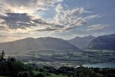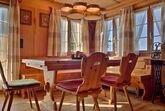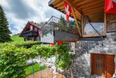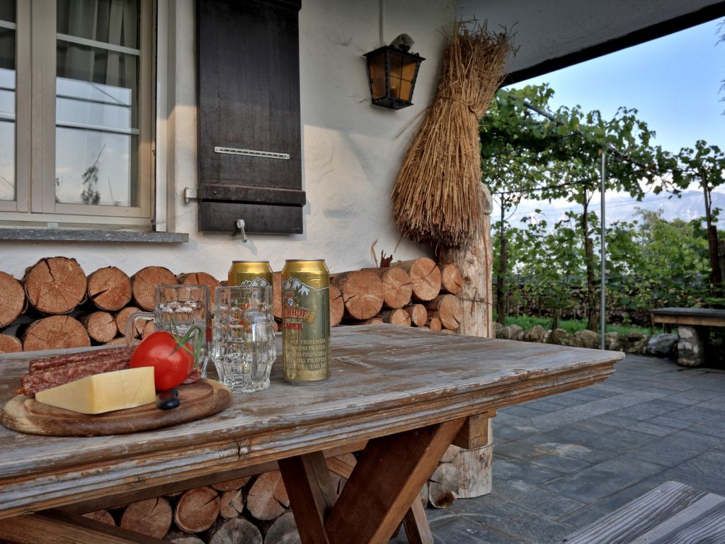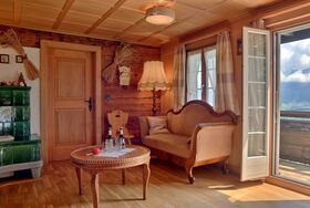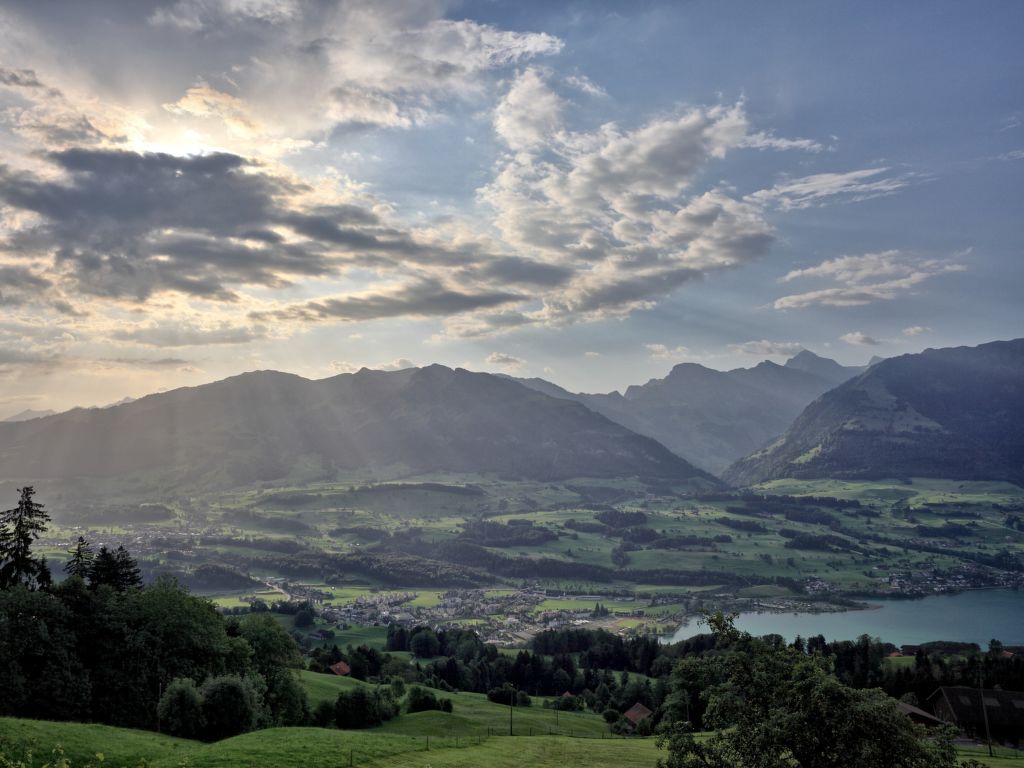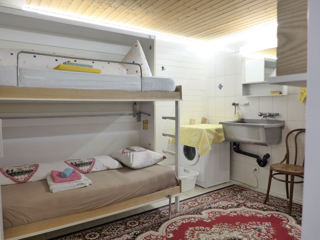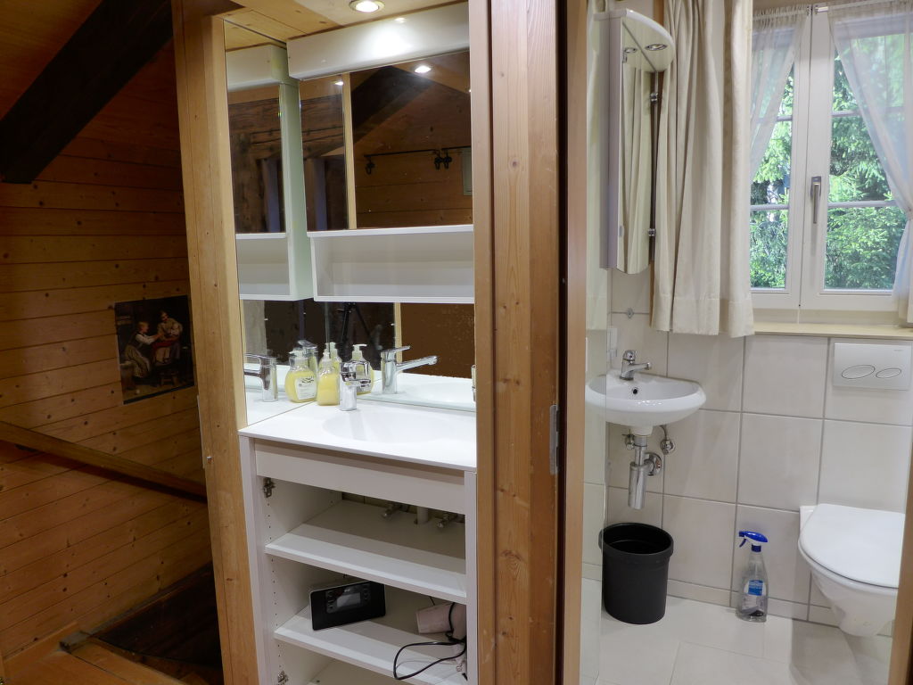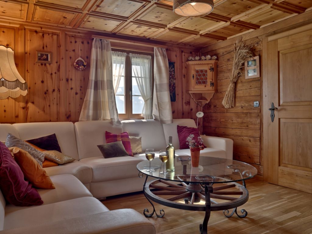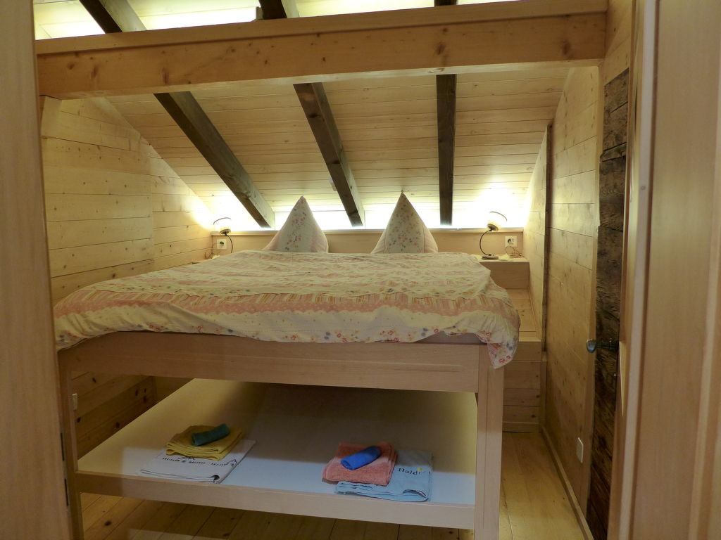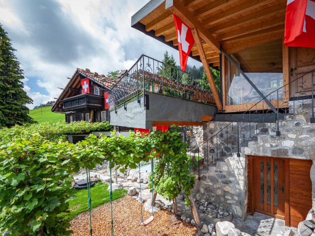 7-Zimmer-Chalet 140 m2 auf 3 Stockwerken. Rustikal und gemütlich eingerichtet: Wohn-/Esszimmer mit Esstisch und Kachelofen. Ausgang zum Balkon. Wohnzimmer mit Digital-TV. Küche (4 Kochplatten, Backofen, Geschirrspüler, Toaster, Wasserkocher, elektrische Kaffeemaschine, Kapseln für die Kaffeemaschine (Nespresso) extra) mit Esstisch. Bad/WC. Unteres Geschoss: 1 grosses Zimmer mit 1 Doppelbett (2 x 90 cm, Länge 200 cm), Waschbecken. 1 Kinderzimmer mit 2 x 2 Etagenbetten (90 cm, Länge 200 cm), Waschbecken. Bad/WC. Obergeschoss: (steile Treppe) 2 abgeschrägte Zimmer, jedes Zimmer mit 1 Doppelbett (2 x 90 cm, Länge 200 cm). Ausgang zum Balkon. 1 kleines Zimmer mit 1 franz. Bett (160 cm, Länge 200 cm). Dusche/WC. Holzheizung. 2 Balkone, grosse Terrasse, Gartensitzplatz. Terrassenmöbel, Gartengrill. Herrliche Panoramasicht auf den See, die Berge, das Tal und die Landschaft. Zur Verfügung: Waschmaschine, Kinderhochstuhl, Babybett, Holz (gratis). Internet (Wireless LAN, gratis). Parkplatz (6 Autos), Garage beim Haus. Bitte beachten: geeignet für Familien. Nichtraucher-Haus.