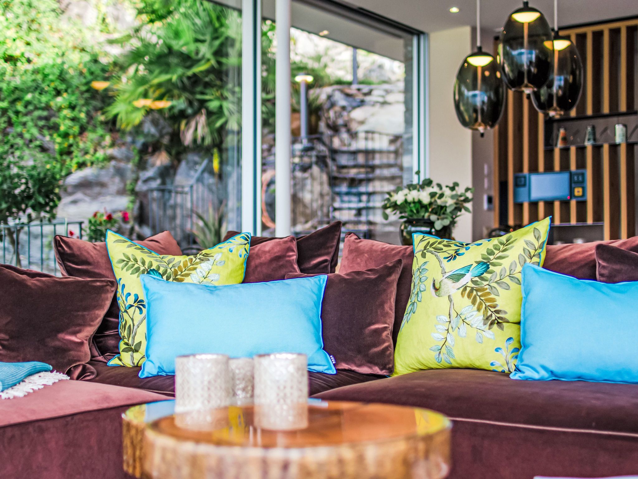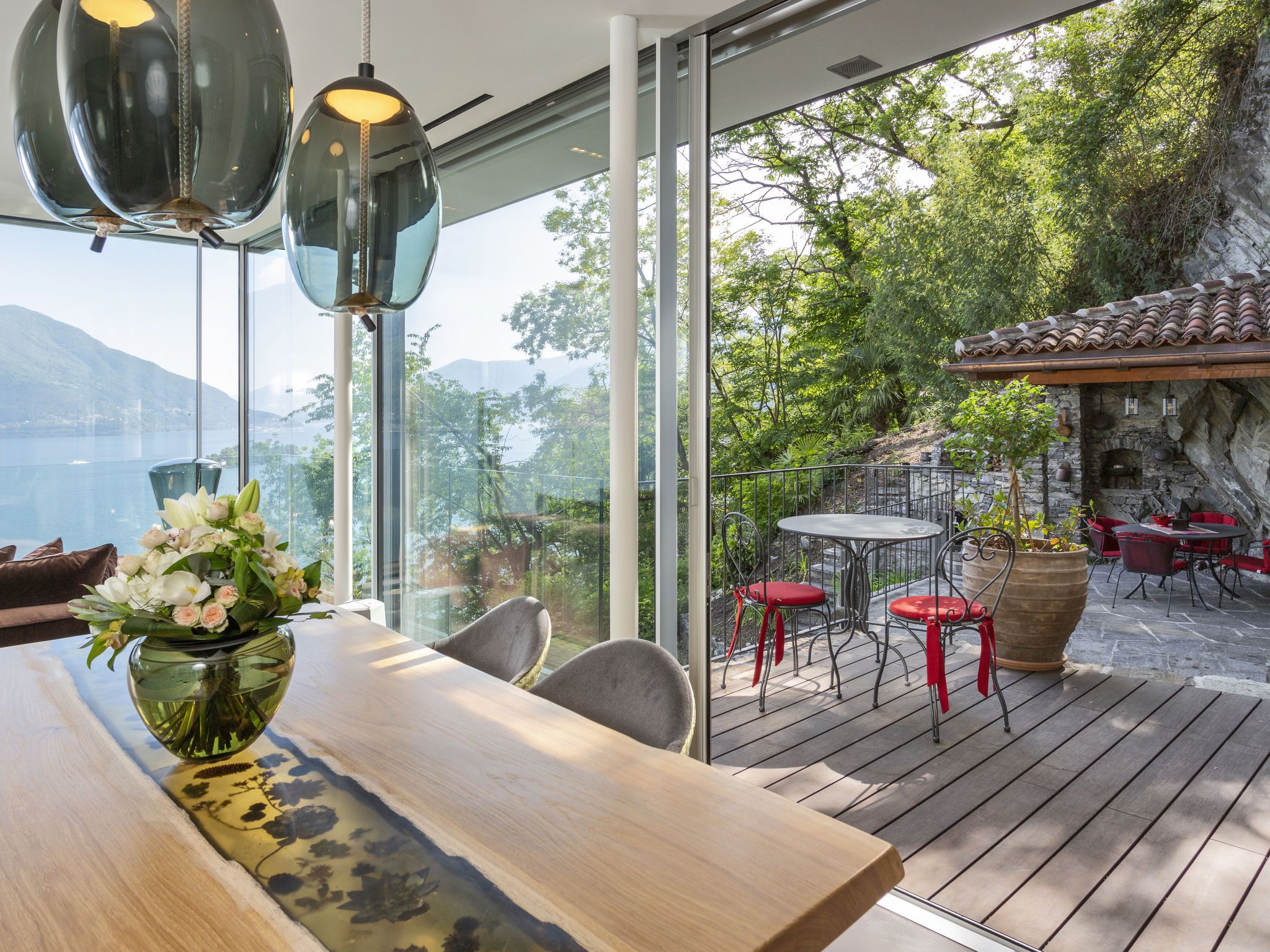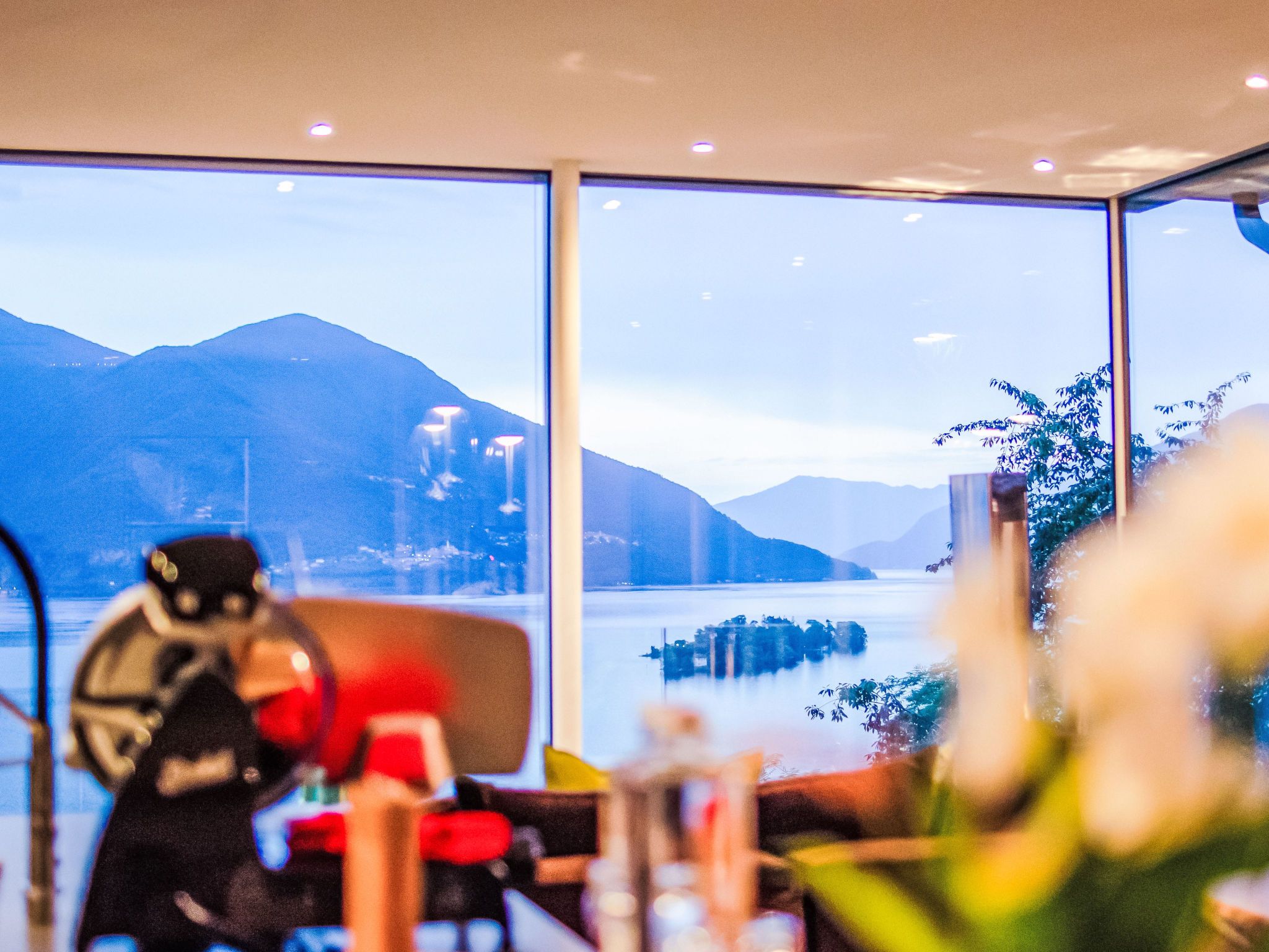 Grand Suite, 2-Zimmer-Wohnung 70 m2. Geräumig und hell, vollständig renoviert im Jahre 2022, luxuriös und stilvoll eingerichtet: offenes grosses Wohn-/Esszimmer mit Panoramafenster mit Esstisch, Kabel-TV und Internationale TV-Sender (Flachbildschirm), Radio und Klimaanlage. Ausgang zur Terrasse. 1 grosses Doppelzimmer mit Panoramafenster mit 1 Doppelbett (2 x 100 cm, Länge 200 cm), Dusche/WC, Doppelwaschbecken und Klimaanlage. Ausgang zur Terrasse. Grosse, offene Küche (Backofen, Geschirrspüler, 4 Induktionskochplatten, Toaster, Wasserkocher, Tiefkühler, elektrische Kaffeemaschine, Kapseln für die Kaffeemaschine (Nespresso), Kombinationsmikrowelle). Dusche/WC. Fussbodenheizung. 2 grosse Terrassen teilweise überdacht. Terrassenmöbel, Gartengrill, Liegestühle (2), Sitzplatz. Herrliche Panoramasicht auf den See, die Berge und die Landschaft. Zur Verfügung: Haartrockner. Internet (DSL/LAN, gratis). Bitte beachten: nicht geeignet für Kinder unter 14 Jahren. Nichtraucher-Unterkunft. Die Grand -Suite liebevoll und mit grosser Eleganz dekoriert über dem Lago Maggiore, bietet ein rundum Wohlgefühl. Ein Ort der Ruhe zum Geniessen! NL-