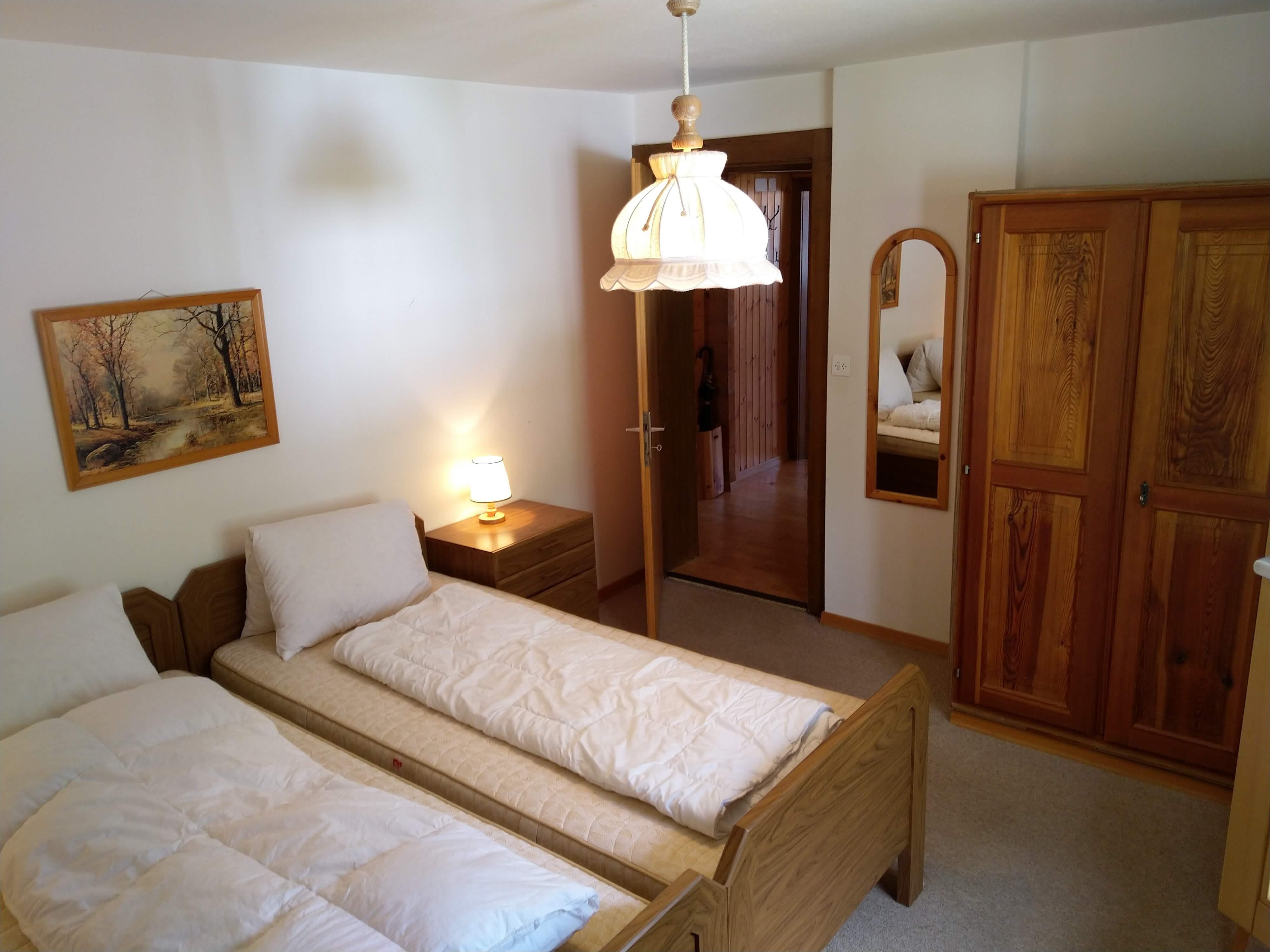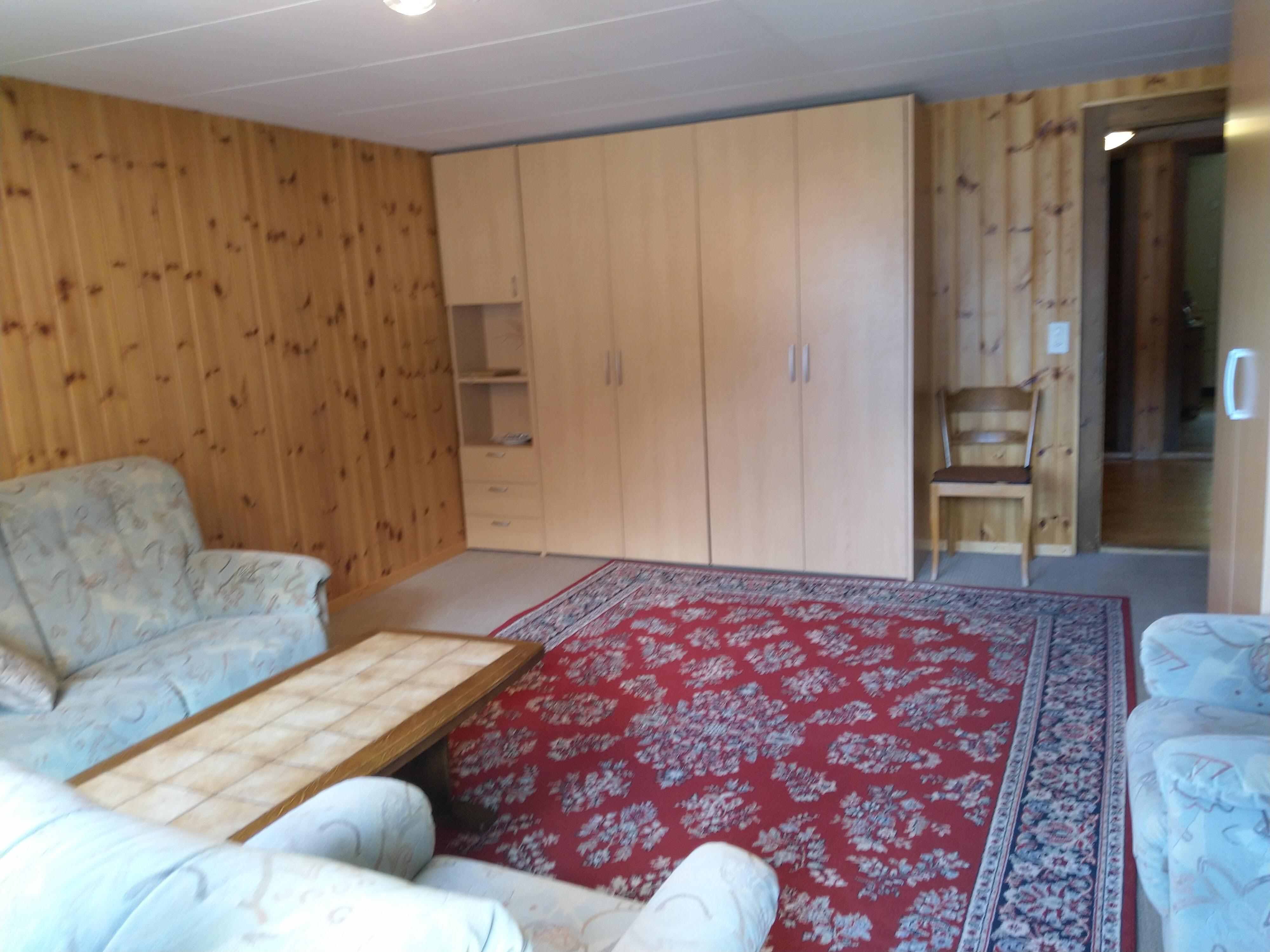 2-Zimmerwohnung: Wohnzimmer mit 2 Betten, Küche, 1 Zweibettzimmer, Bad/WC, Balkon, Radio, TV. Garage vorhanden.