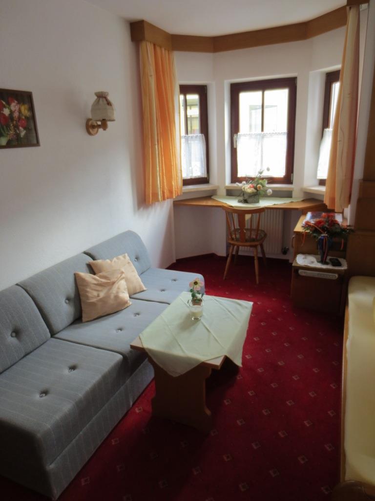 Komfortable Frühstückspension mit 15 Betten, 7 Zimmer. Gutes reichhaltiges Frühstücksbuffet. Zentrale, sehr ruhige Lage, direkt neben dem Sport- und Unterhaltungspalast Freizeit Arena. Ca. 7 Gehminuten bis zur Talstation Giggijochbahn. Schischul- und Bergführerbüro sind vis-à-vis. Parkplätze sind vorhanden. Kreditkarten werden akzeptiert (Visa, Mastercard und Bankomat/Maestro Karte).