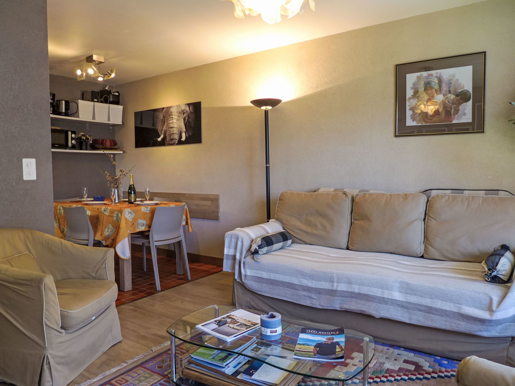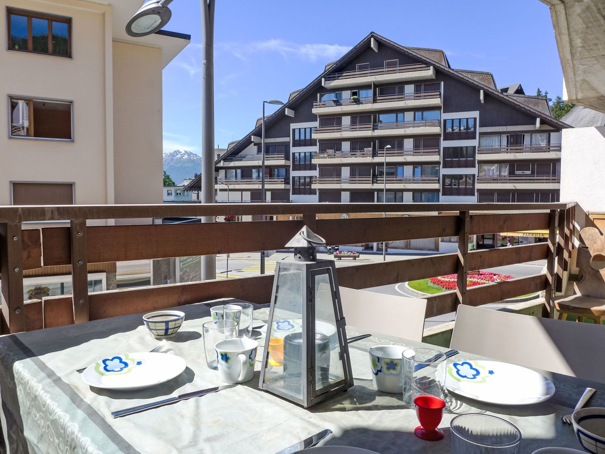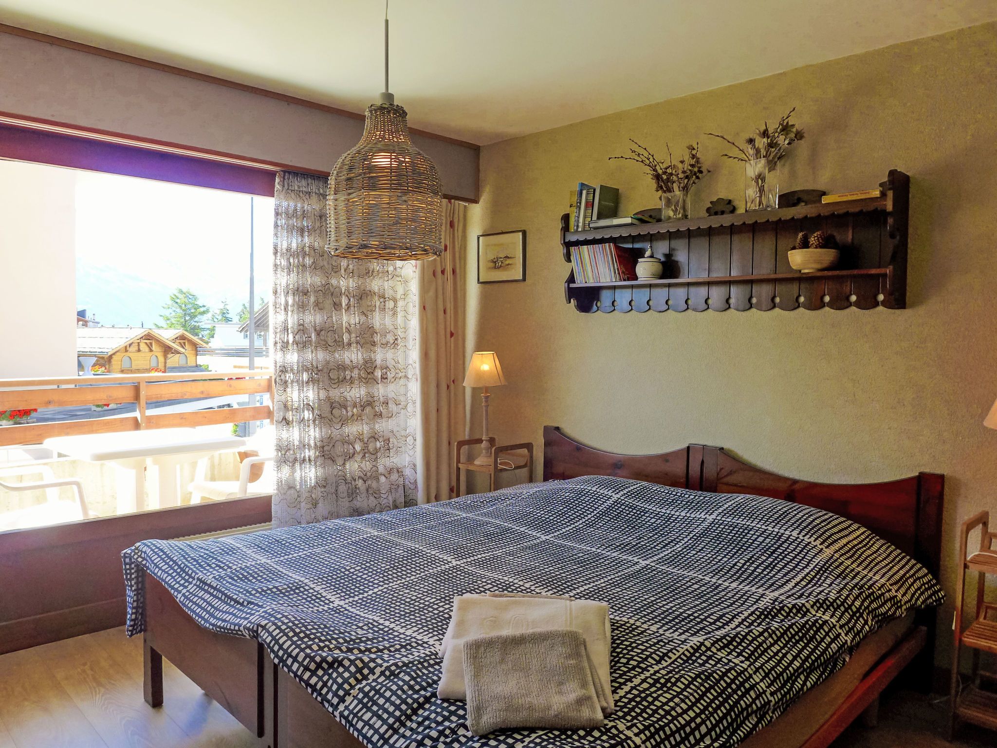 Immeuble Rond-Point Apt. 11, 2-Zimmer-Wohnung 46 m2 im 1. Stock, Südlage. Wohn-/Esszimmer, Richtung Süden mit 1 Doppeldiwanbett (160 cm, Länge 190 cm), Essecke und Kabel-TV. Ausgang zum Balkon. 1 Zimmer, Richtung Süden mit 2 Betten (90 cm, Länge 200 cm). Ausgang zum Balkon. Offene Küche (3 Kochplatten, Backofen, Mikrowelle, elektrische Kaffeemaschine, Racletteofen, Fondue Set (Käse)) mit Esstisch. Bad/Bidet/WC. Ölheizung. Balkon 8 m2, Südlage. Balkonmöbel. Seitliche Sicht auf die Berge und die Ortschaft. Zur Verfügung: Internet (Wireless LAN). Garage Nr. 11. Bitte beachten: Nichtraucher-Unterkunft.