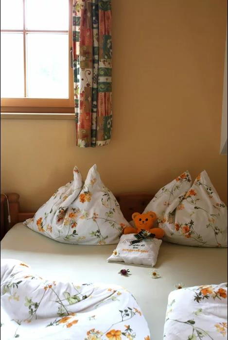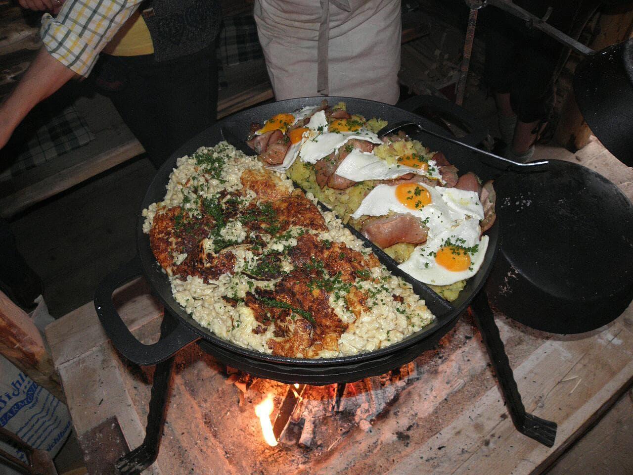 In der Lanfthütte brutzelt Andrea das Abendessen am offenen Feuer und Pepi verkostet Selbstgebranntes. Volksmusik gehört auch zum Hoferleben beim Musikantenstammtisch oder probier dich selbst an der Maultrommel oder der lustigen Geige Spüren mit allen Sinnen.