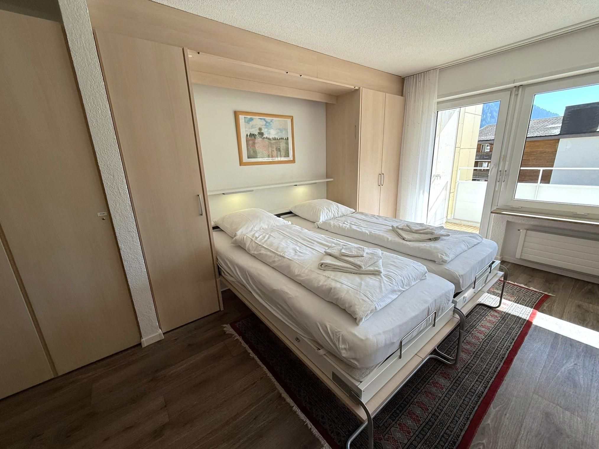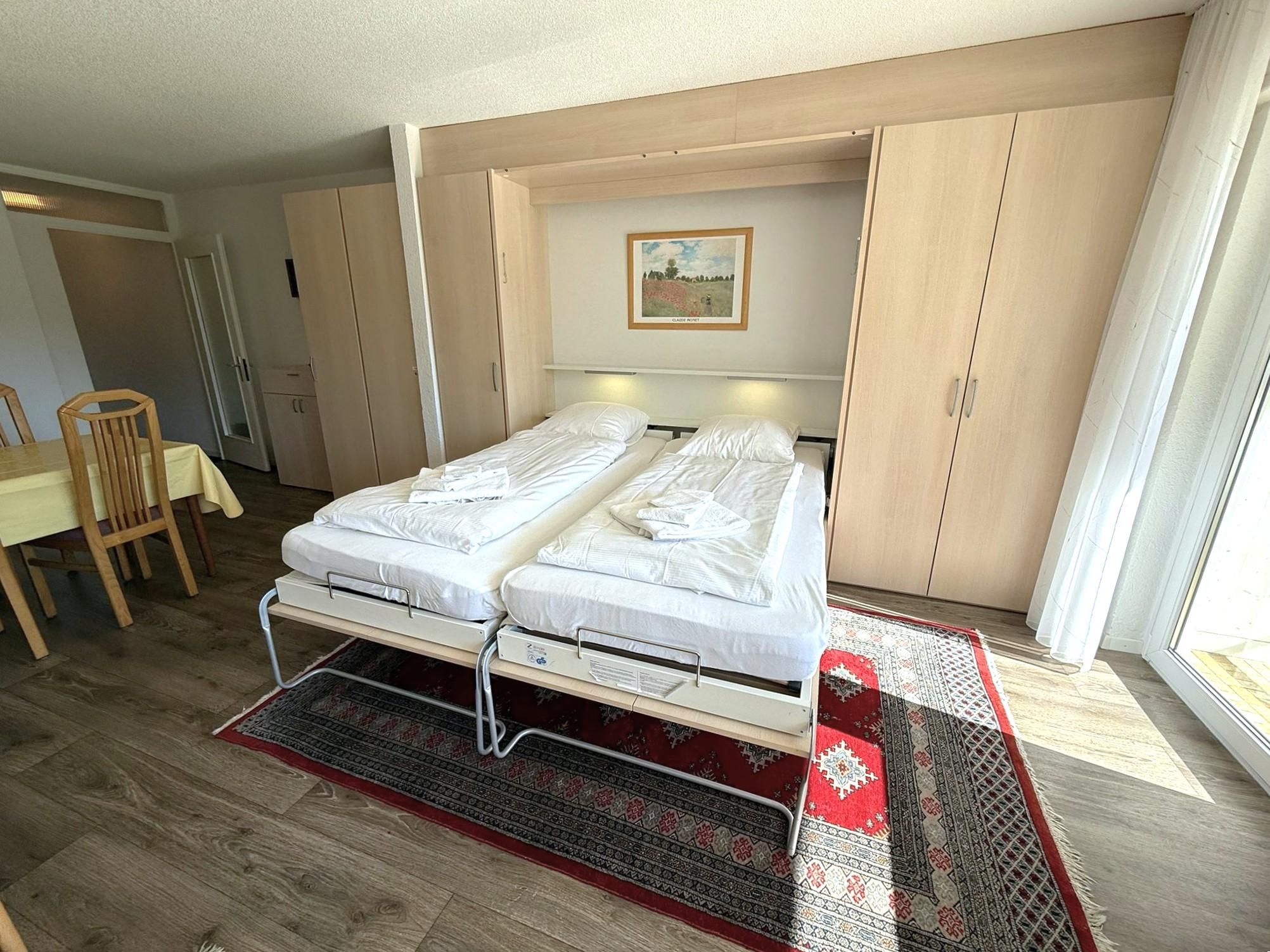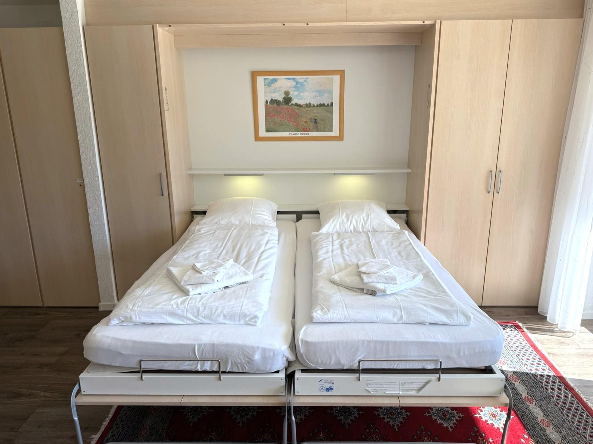 2-Zimmerwohnung: Wohn-/Esszimmer mit 2 Schrankbetten, separate Küche mit Mikrowelle, Schlafzimmer mit Etagenbett, Dusche/WC, Balkon, Radio, TV. Garage inklusive. Haustiere sind nicht erlaubt. Nichtraucher-Wohnung.