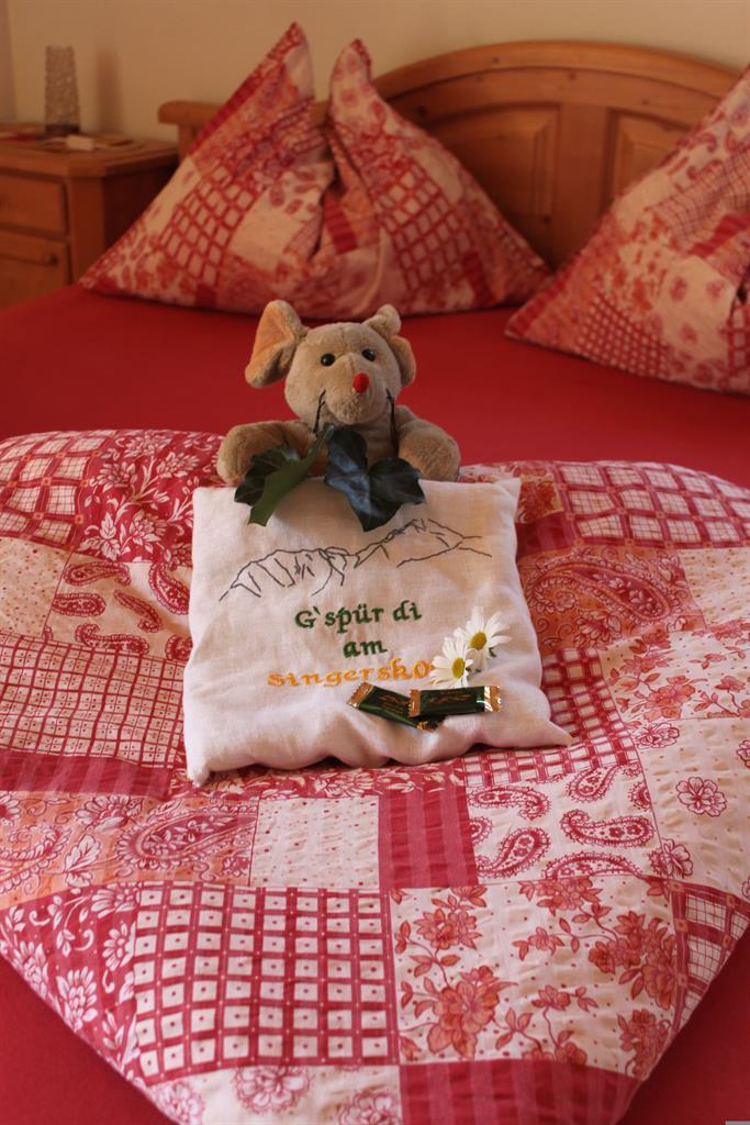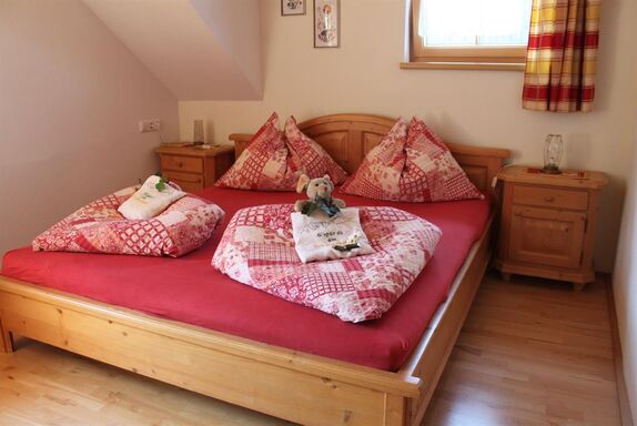 Jedes Jahr ist die Freude groß, wenn die Natur blüht mit ihren bunten Farben. Erleben Sie dieses Gefühl in unserem DZ „Sommer“. Es lädt mit kräftigen Farben des Sommers zum Wohlfühlen ein. Genießen - Spüren Sie, wie unsere erdigen Holzmöbeln die Natur hineinholen. Der Sommer ist im 2. Stock im Bauernhaus daheim und wartet auf Sie.