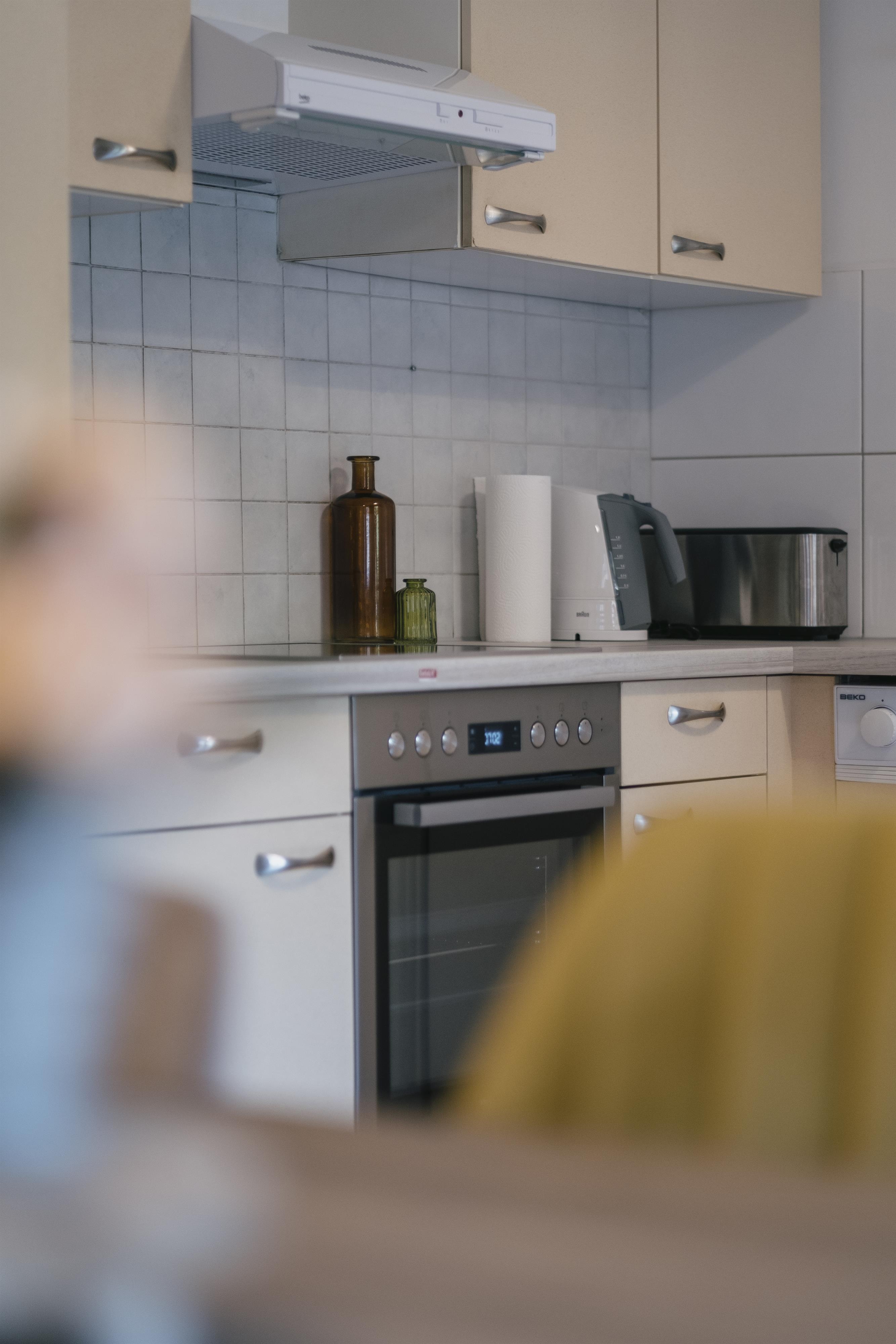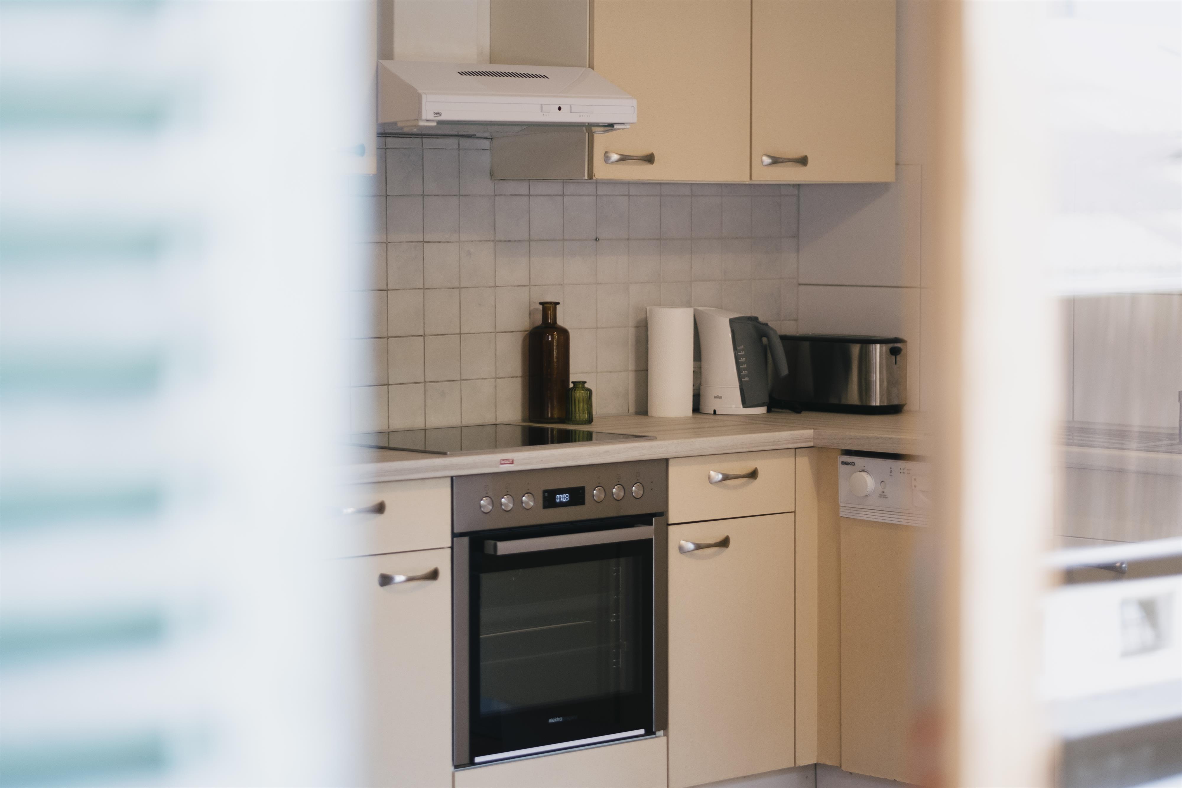Die Küche ist komplett mit allem ausgestattet, was du brauchst, um eine richtige Mahlzeit zu kochen und sie mit deiner Familie und Freunden zu genießen. Von Backofen, Herd, Geschirrspüler, Kühlschrank, Toaster, Wasserkocher, Dolce-Gusto-Kaffeemaschine bis hin zu Töpfen, Pfannen, Tellern, Besteck, Gläsern, Küchenutensilien und einem komfortablen Essbereich.