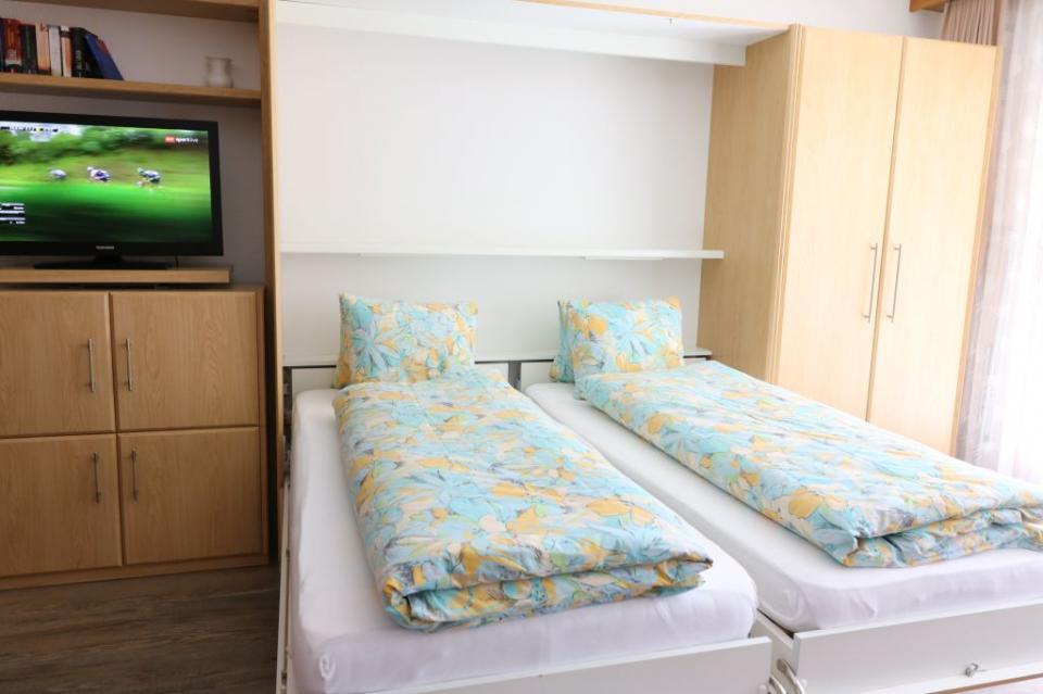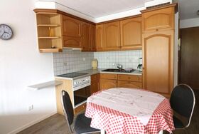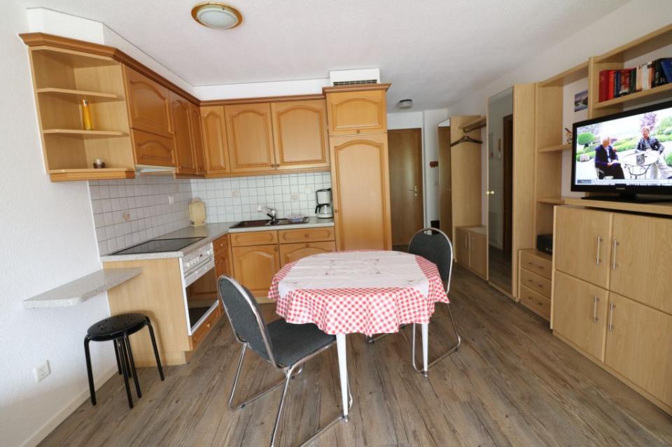 1-Zimmerwohnung (30 m2) im 3.Stock mit Balkon zur Südwestseite, Wohn-/Esszimmer mit 2 Wandschrankbetten, Sitzgelegenheit, moderne offene vollausgestattete Küche, Dusche/WC, Maximalbelegung 2 Personen, Kabel-TV , FREE WiFi, Lift, Nichtraucherwohnung, Garage zu mieten. Sehr zentrale und ruhige Lage.