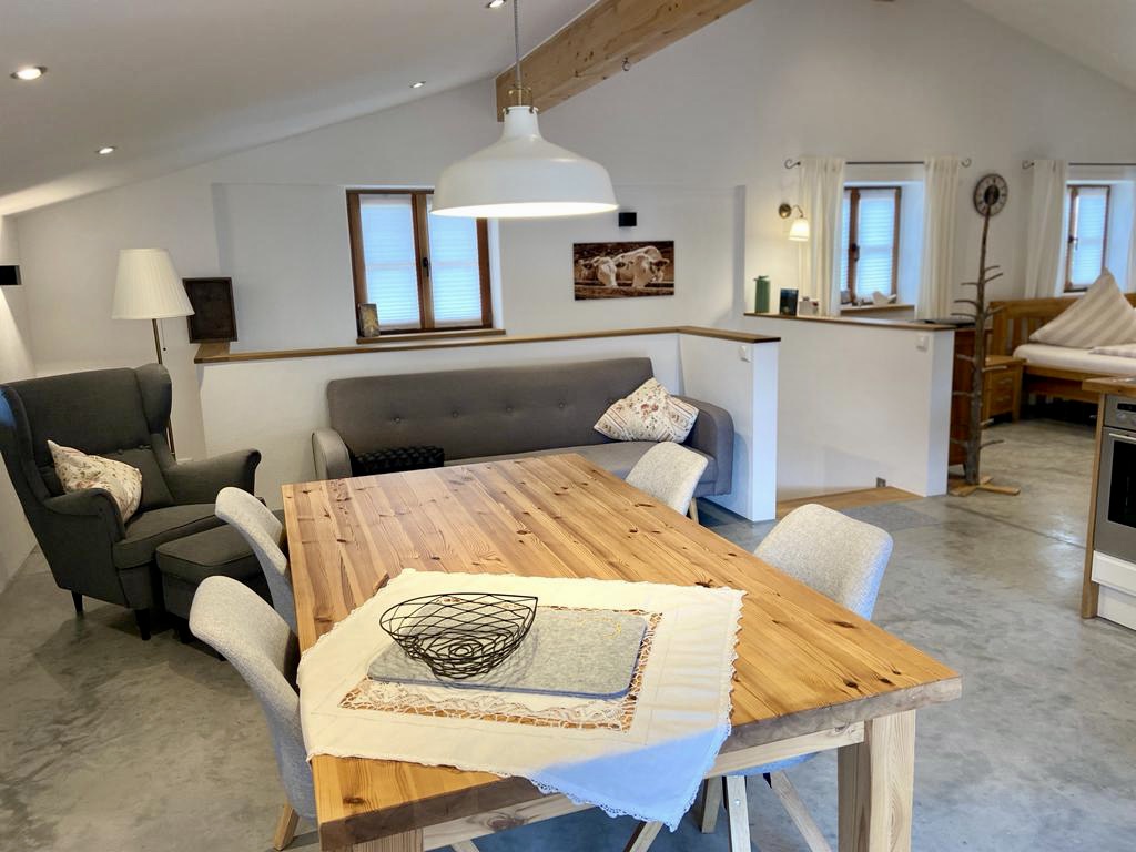 Der wunderschöne und sehr ruhige Ort Staudach-Egerndach befindet sich im Achental und lädt zur absoluten Entspannung ein. Eingebettet zwischen Bergen, der Tiroler Ache und dem Chiemsee bietet der Ort mit seiner Umgebung zahlreiche Ausflugsmöglichkeiten, die zu Fuss oder mit dem Fahrrad gut zu erreichen sind. Für Bergbegeisterte geht es direkt von der Ferienwohnung aus auf den Hausberg Hochgern, der zu jeder Jahreszeit seinen eigenen Charm entwickelt. Für entspannte und gemütliche Spaziergänge bieten sich die zahlreichen ausgeschilderten Wanderwege an der Tiroler Ache oder durch das Staudacher Moor an. Ausflugstipp ist der Staudacher Moorrundweg mit vielen liebevoll gestalteten Attraktionen. Zwei gut bürgerliche und bayerische Gasthäuser Zum Ott und Mühlwinkl laden zum genießen ein. Ob ein tolles Schnitzel oder doch lieber köstliches vom Wild ist für jeden was dabei.Im Außenbereich gibt eine Überdachte Sitz- und Grillmöglichkeit, eine kleine Liegewiese mit Liegestühlen und Sonnenschirm. E-Bike Verleih vorort buchbar.