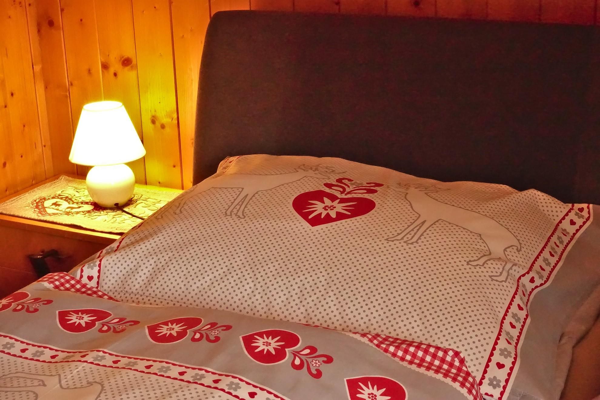 Drei gemütliche Schlafzimmer mit Naturholzmöbeln im Hüttenstil, ein jedes mit Balkon und Blick auf die 3000er-Gipfel der Hohen Tauern, und die Ruhe unserer Alleinlage sorgen für Erholung und gesunden Schlaf. Natürlich gibt es High-Speed WLAN im ganzen Haus und einen Smart-TV mit Netflix, Internet-Browser und den wichtigsten Streaming-Diensten.
