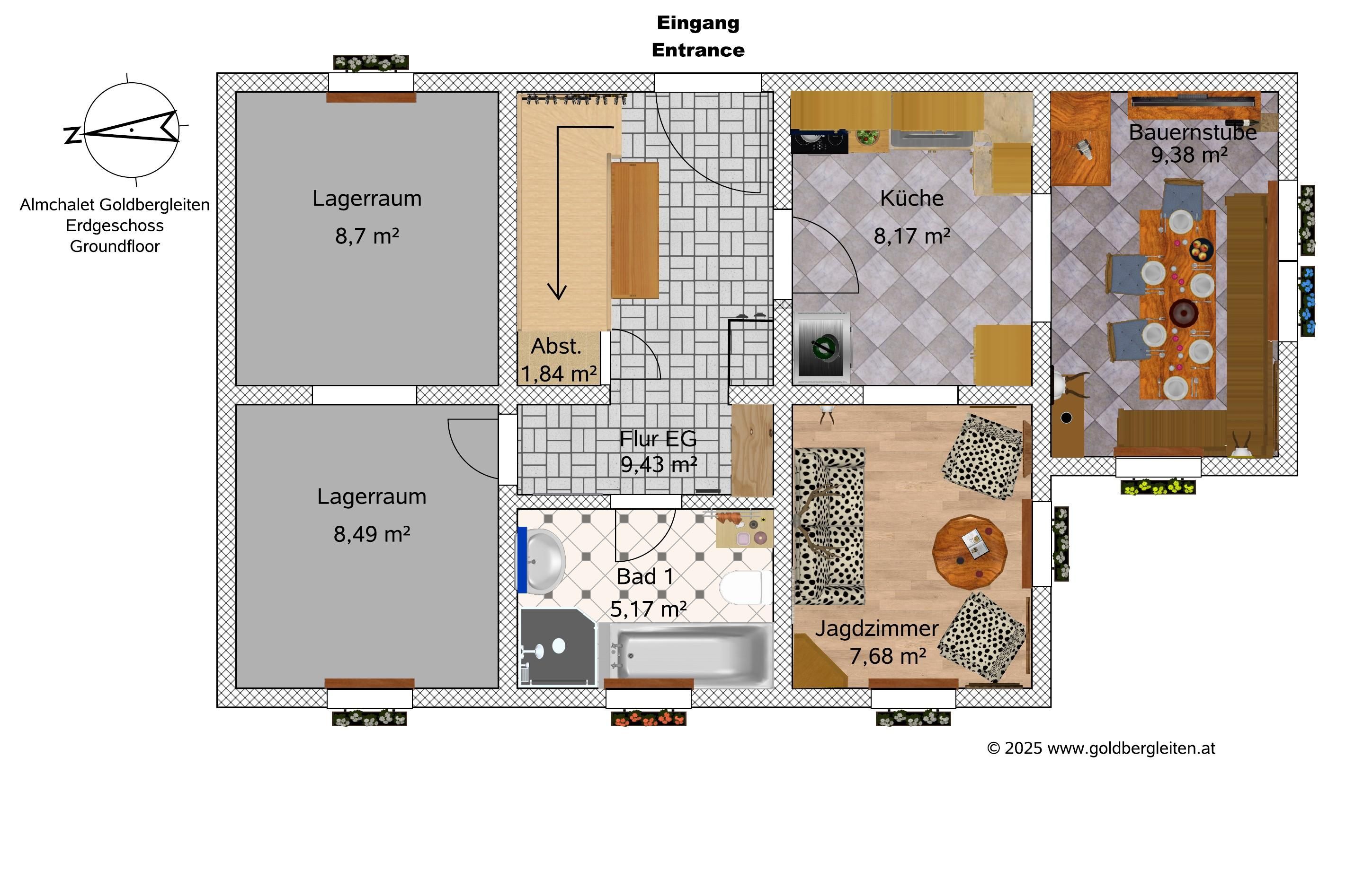 Der Name Goldbergleiten kommt übrigens vom Massiv der Goldberggruppe her, an dessen Fuße unser Bergchalet liegt und wo bis vor gut 100 Jahren noch aktiv Gold- und Silberbergbau betrieben wurde. Noch heute können sich Gäste bei uns sommers im Goldwaschen versuchen; durchaus mit realistischen Erfolgschancen. Eure Gastgeber Uli und Alla freuen sich auf Euren Besuch, und Hunde sind bei uns nicht nur erlaubt, sondern herzlich willkommen!