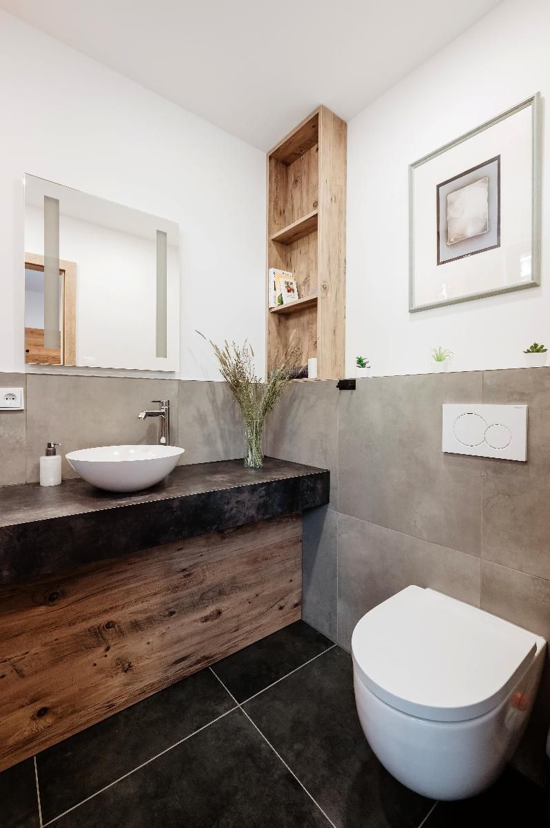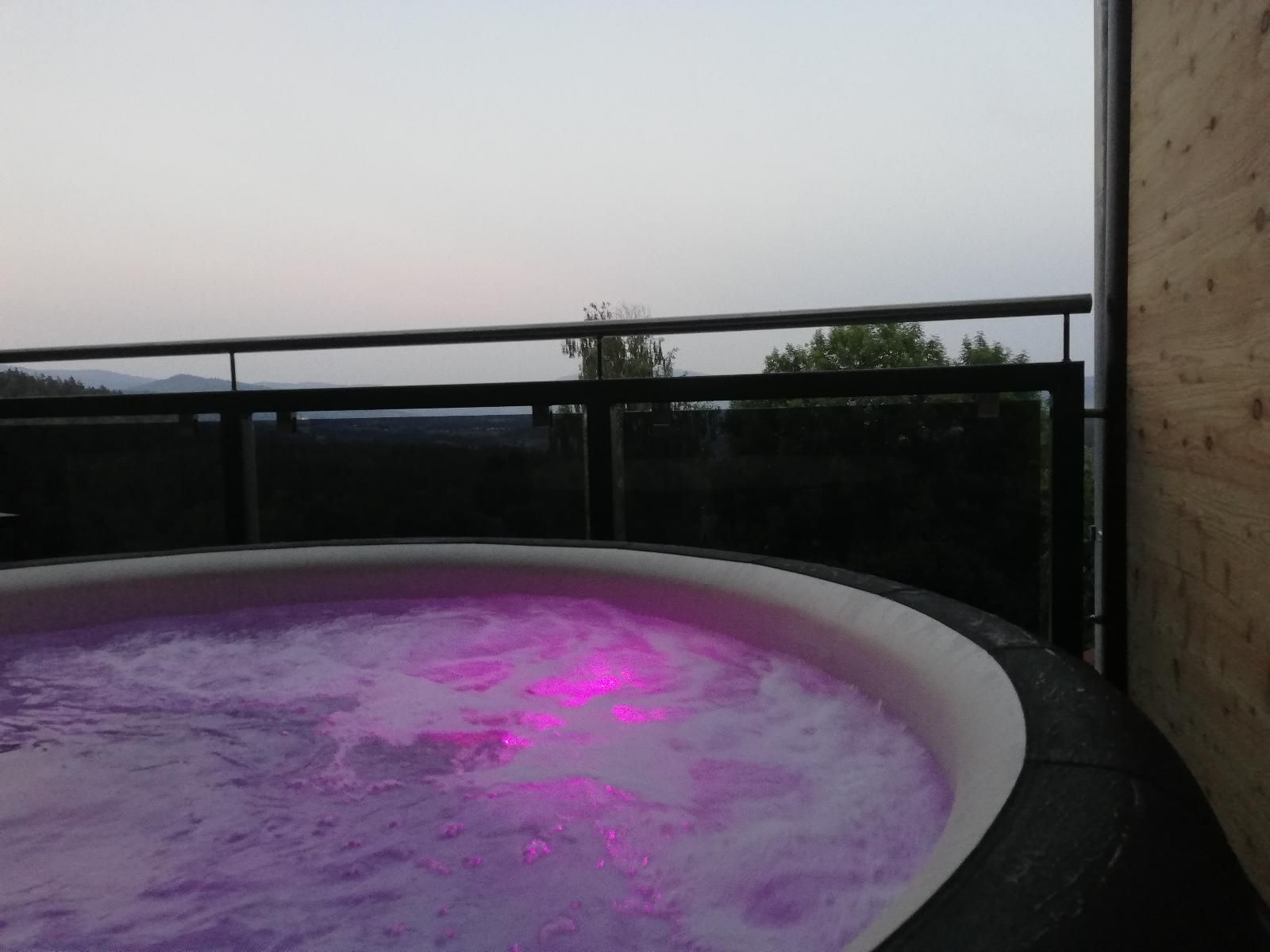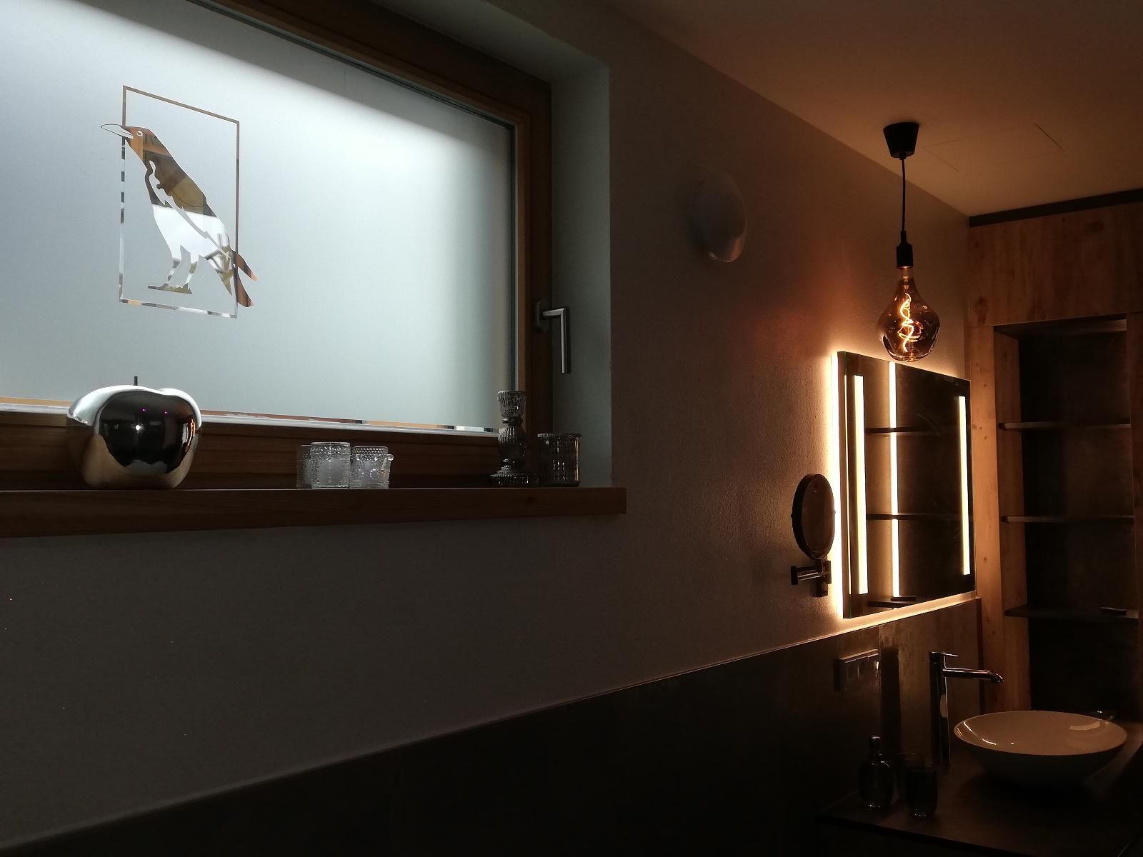 Im Eingangsbereich befindet sich die Garderobe mit Stauraum sowie die Toilette mit Fenster. Der großzügige Wohnbereich besteht aus einer gut ausgestatteten Küche mit Weinkühlschränken, Kaffeevollautomat, Mikrowelle usw., einem Essplatz, einer gemütlichen Couchecke und einem 55 Zoll Smart TV-Gerät. Von hier aus gelangt man in das Schlafzimmer mit hochwertigem Doppelbett und Smart TV. Nebenan liegt das großzügige Badezimmer mit steuerbarer Wellness-Ambiente-Beleuchtung, Einbauradio mit Bluetooth-Funktion, freistehender Badewanne, Walk-in-Regendusche und finnischer Sauna mit Infrarot-Bereich. Ein besonderes Highlight ist der 25 qm große überdachte Balkon, den man über Wohn- und Schlafzimmer betreten kann und der mit Sonnenliegen, Sitzgarnitur und einem Whirlpool ausgestattet ist. Von hier aus haben Sie eine traumhafte Aussicht auf die grandiose Landschaft.