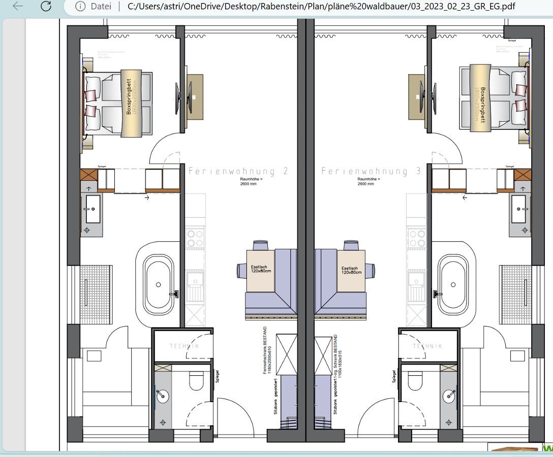 Beide Wohnungen mit Sauna und Whirlpool liegen im Erdgeschoss und können jeweils über einen eigenen Eingang barrierearm betreten werden.