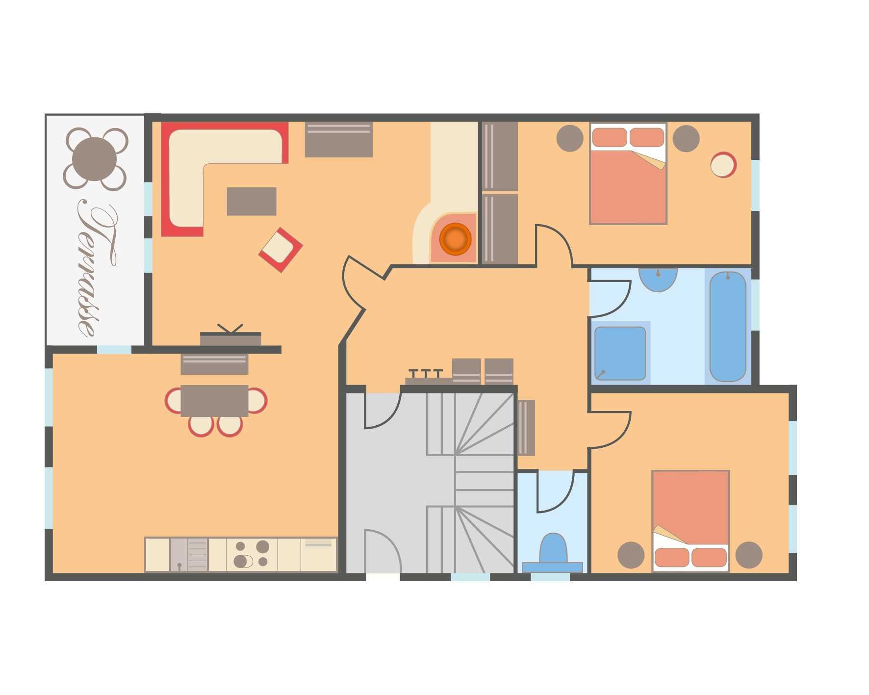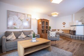 Neu renovierte Ferienwohnung für 4 bis 6 Personen im alpinen Stil mit 2 Schlafzimmern, 1 Bad mit Dusche & Badewanne, separater Toilette, gemütlichem Wohnraum mit Sitzgruppe und Kachelofen, komplett ausgestatteter Küche mit Essecke sowie einer Terrasse mit kleinem Garten.