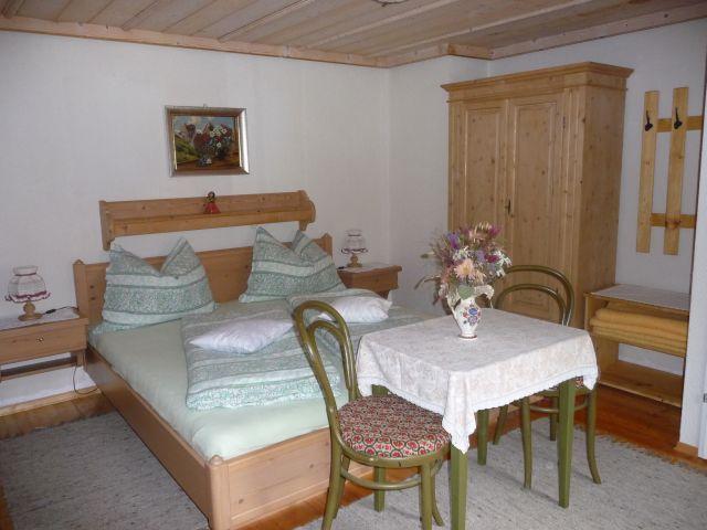 Das Doppelzimmer ist mit Dusche, Waschbecken und Balkon ausgestattet. Schöne freie Aussicht in die umliegende Bergwelt. Im großen Garten können sie Ruhe und Erholung finden. Es gibt Liegestühle, sowie Sitzmöglichkeiten in der Sonne oder Schatten, auch eine Terasse und ein gemauerter Grill steht ihnen zur Verfügung.