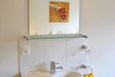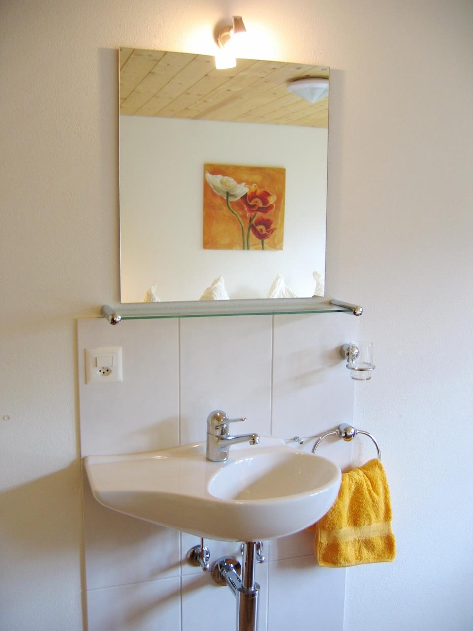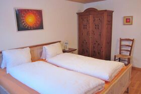 Gemütliches, talseitig gelegenes Doppelzimmer (12 m2) mit Doppelbett (180 x 200 cm). Lavabo im Zimmer. Dusche und Toilette auf der Etage.