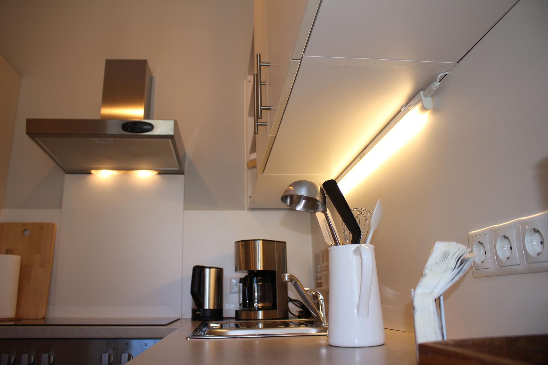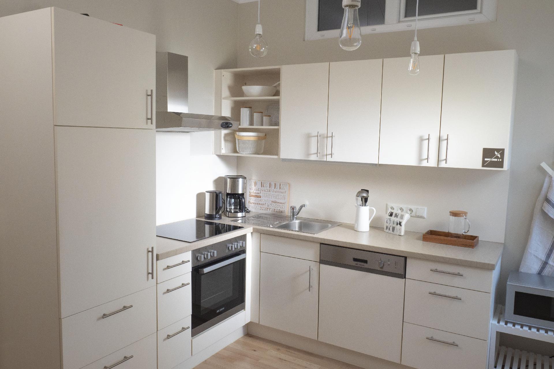 Kochen: Backofen; Ceranherd; Elektroherd; Gefrierfach; Herd; Kaffeemaschine; Kaffekapselmaschine; Kühlschrank; Mikrowelle; Spülmaschine; Toaster; Wasserkocher