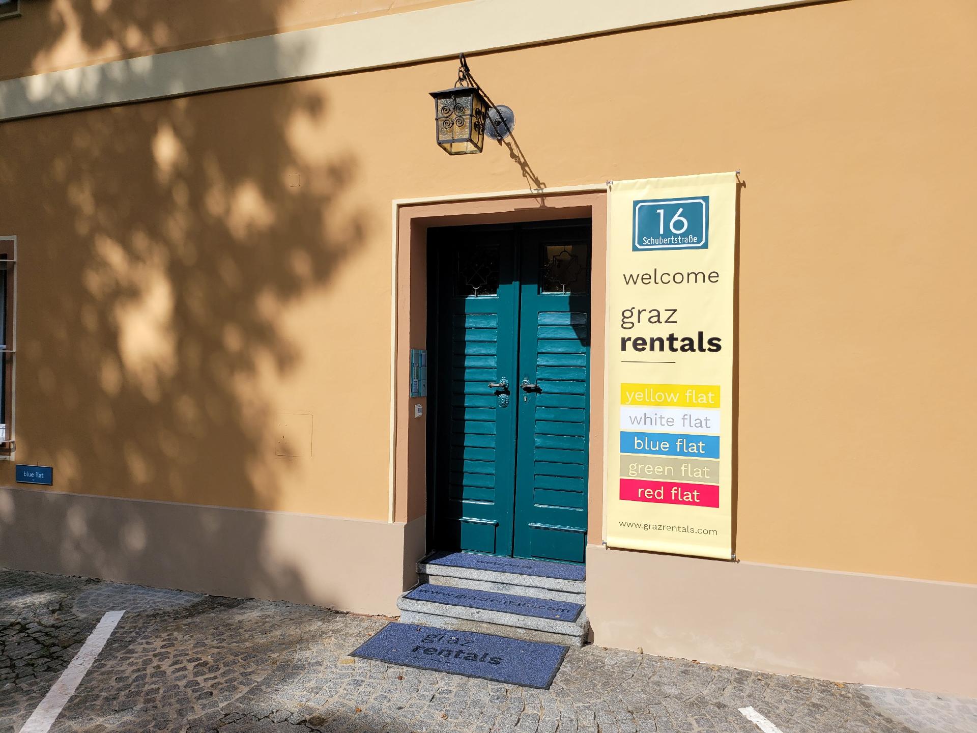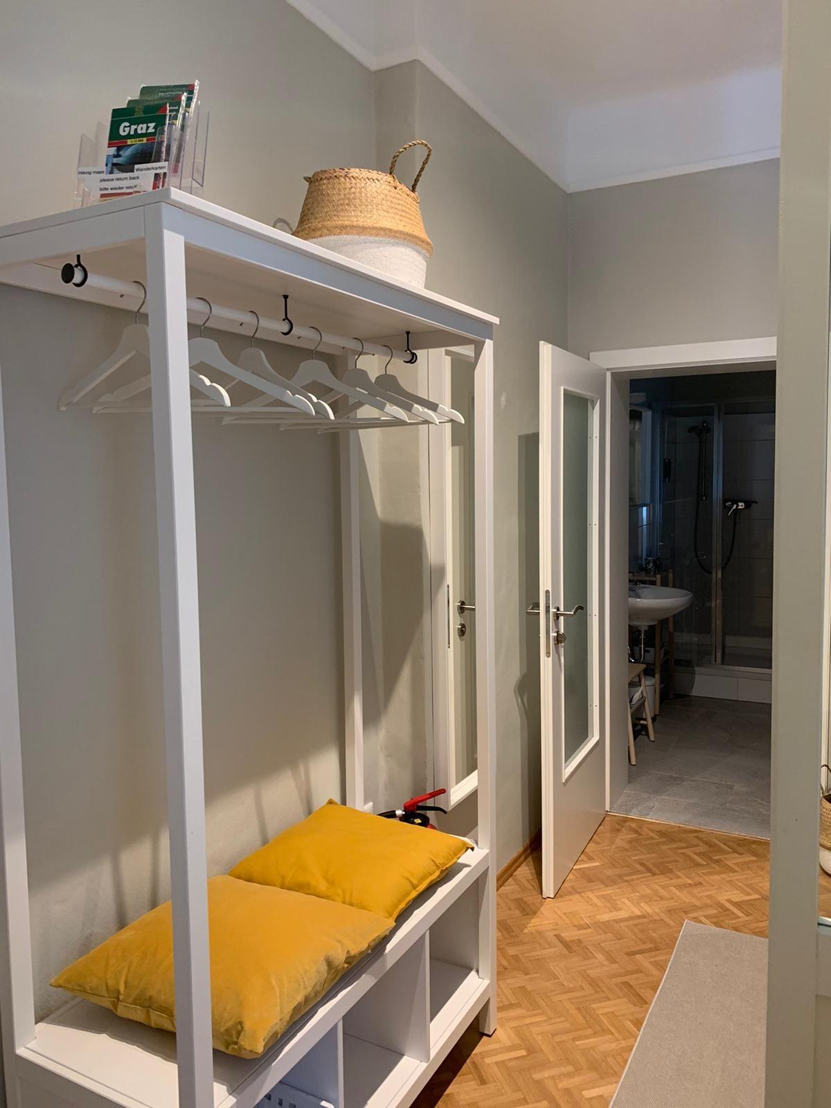 Kontaktloser Check-In Statt Schlüssel gibt es ein Zahlenschloss damit sich keiner Sorgen machen muss die Wohnungsschlüssel zu verlieren. Wie können daher auch zu jeder Tages- und Nachtzeit ein- und auschecken. Das weiße Apartment befindet sich im Erdgeschoß und ist über 2 Stufen und einem Vorraum erreichbar.