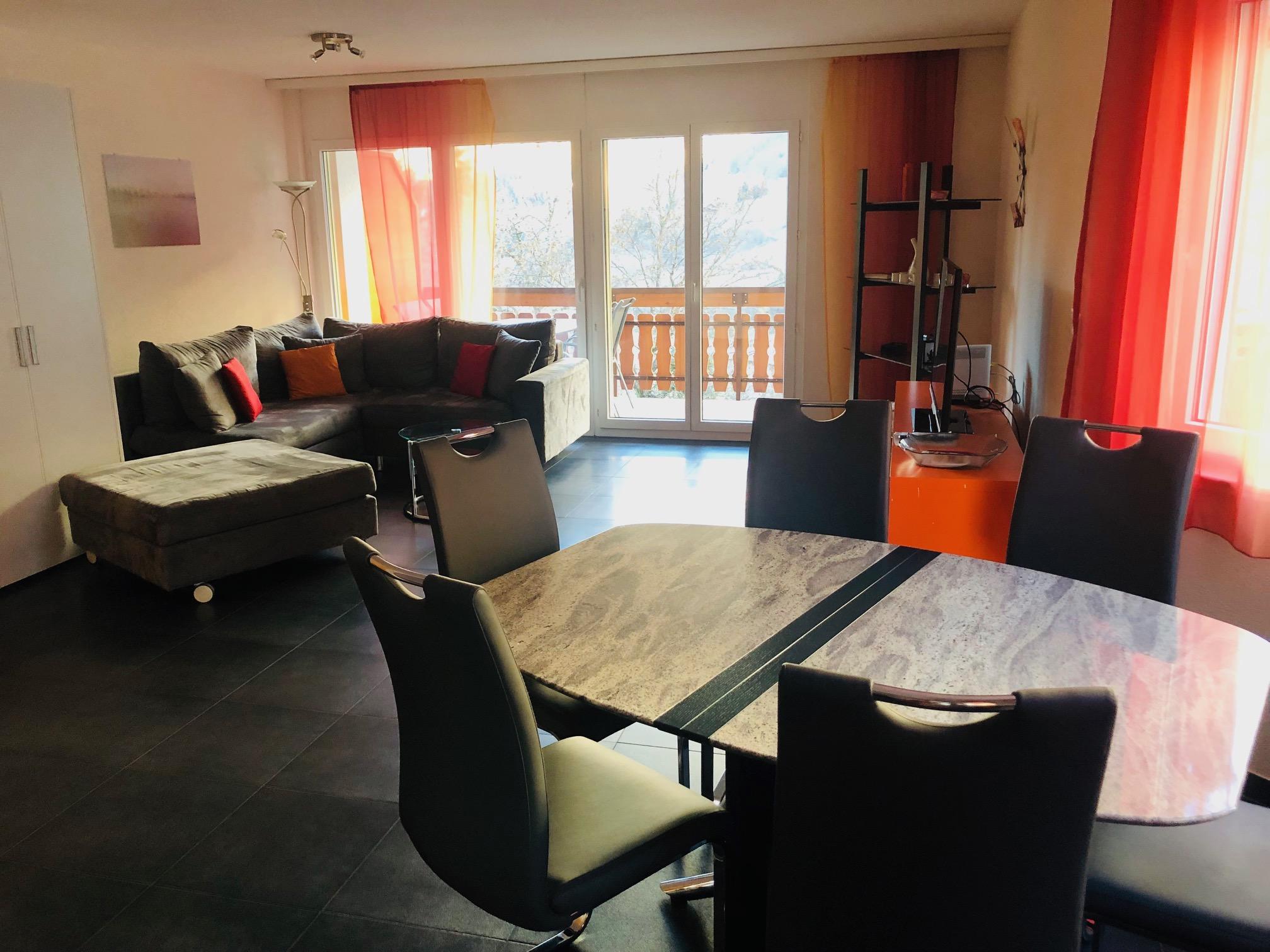 3-Zimmerwohnung 90m2: Wohnzimmer, TV, DVD, Radio/CD, gratis WiFi. Offene Küche, Geschirrspüler, Mikrowelle, Kaffeemaschine. 2 Doppelschlafzimmer, 2 Dusche/WC. Balkon 12m2, Panoramasicht, ruhige Lage, Garage, Lift, Ski- & Veloraum, Nähe: Torrentbahnen,Thermalbäder, Bushaltestelle, Dorfzentrum. Nichtraucherwohnung! Haustiere nicht erlaubt!