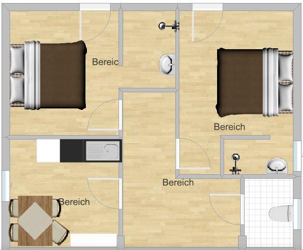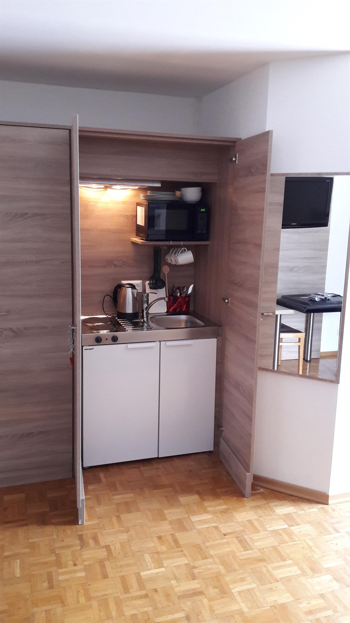 Kleines Appartment mit Schlafzimmer für bis zu Personen, Dusche/WC, Sat-TV, voll ausgestattete Küche mit Esstisch und Balkon