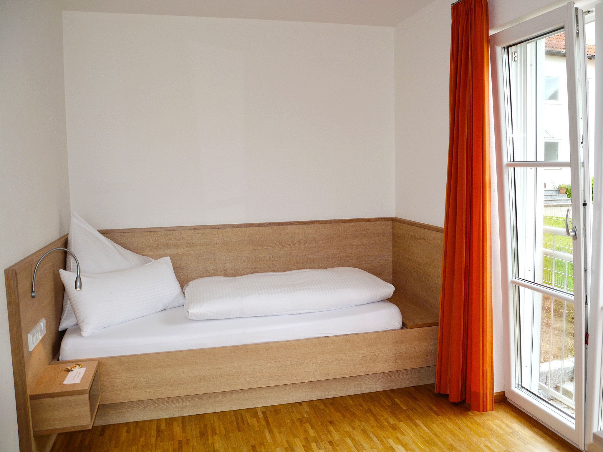 Familiengeführtes, neu erbautes Apparthotel mit hellem Holz ausgestattet