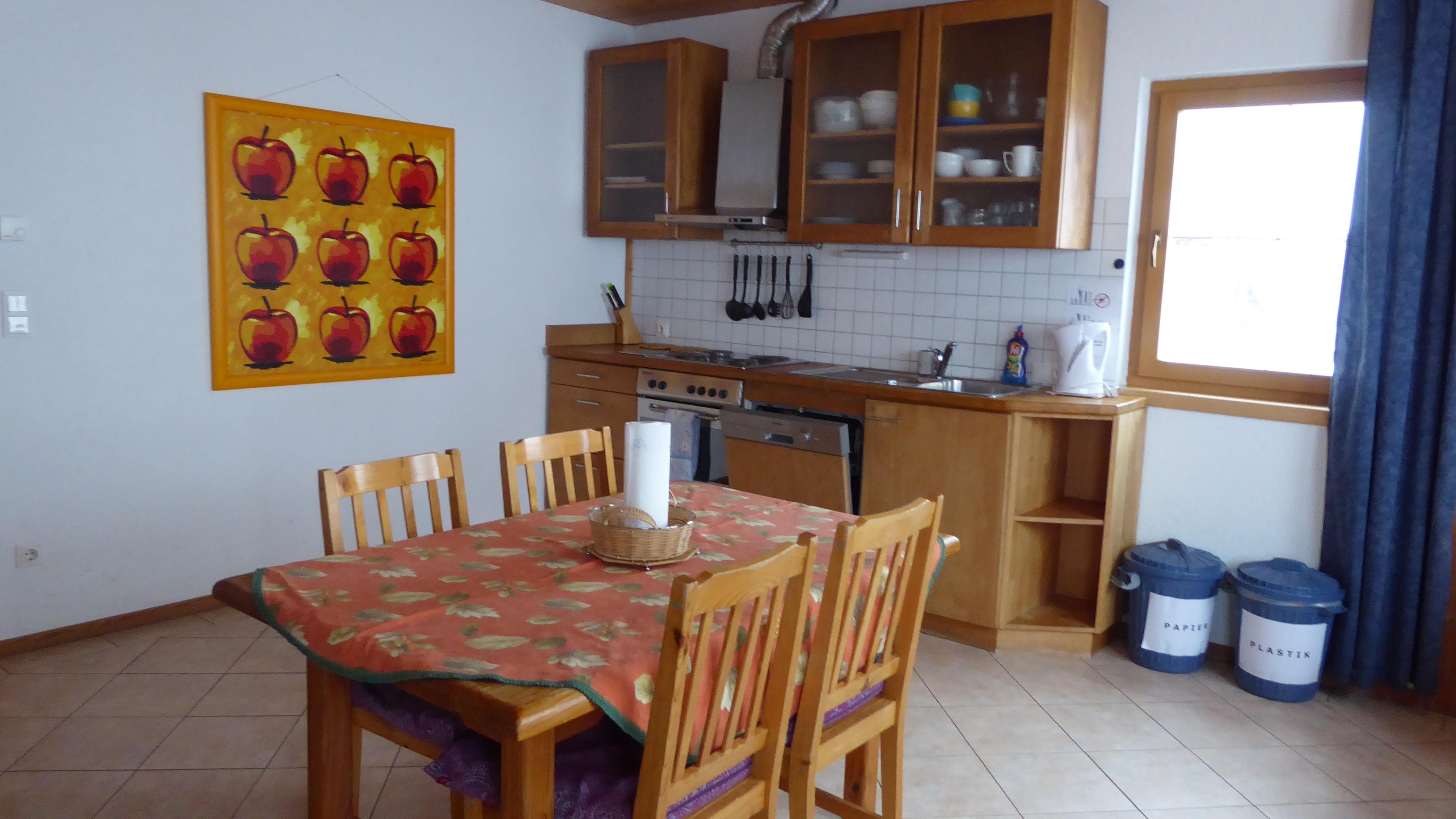 Mit rund 50 m2 ist die Ferienwohnung perfekt für 4 Erwachsene, oder eine Familie mit zwei Kindern. Im Schlafraum befindet sich ein Doppelbett und zwei Einzelbetten. Wohnzimmer und Küche sind getrennt, das Badezimmer mit Dusche und WC  ist mit Fenster. Wireless-Internet, TV mit Sat-Anschluss und eine komplett ausgestattete Küche mit Geschirrspüler, Kühlschrank mit Gefrierfach, Geschirr, Besteck ect. stehen für sie zur Verfügung. Kaffeemaschine und Toaster auf Anfrage.
