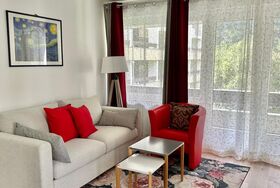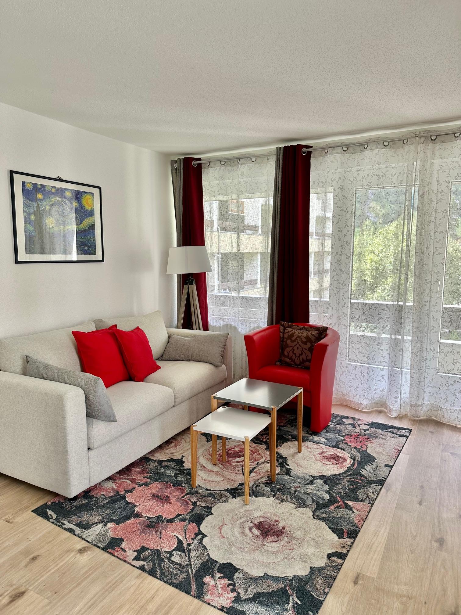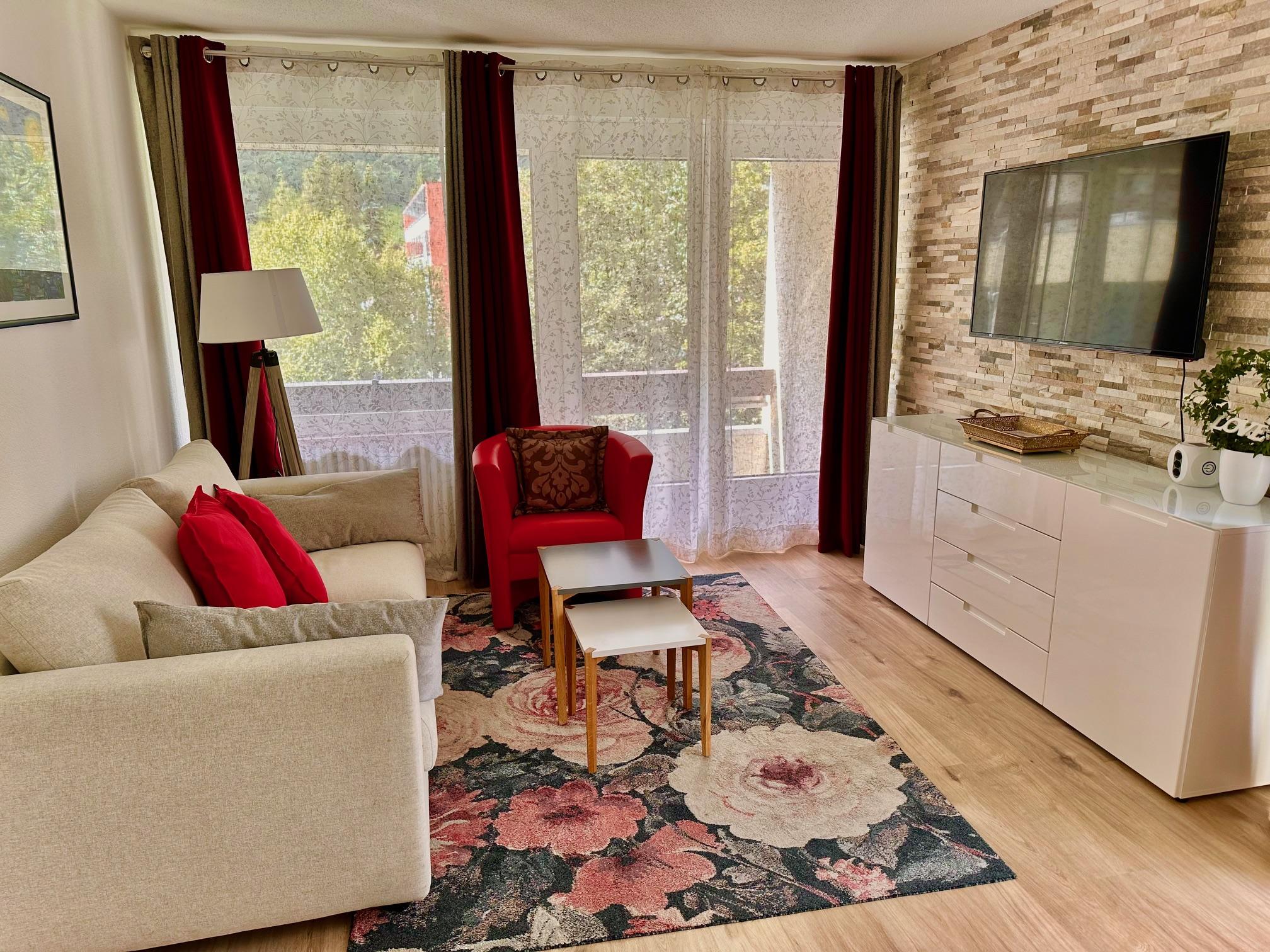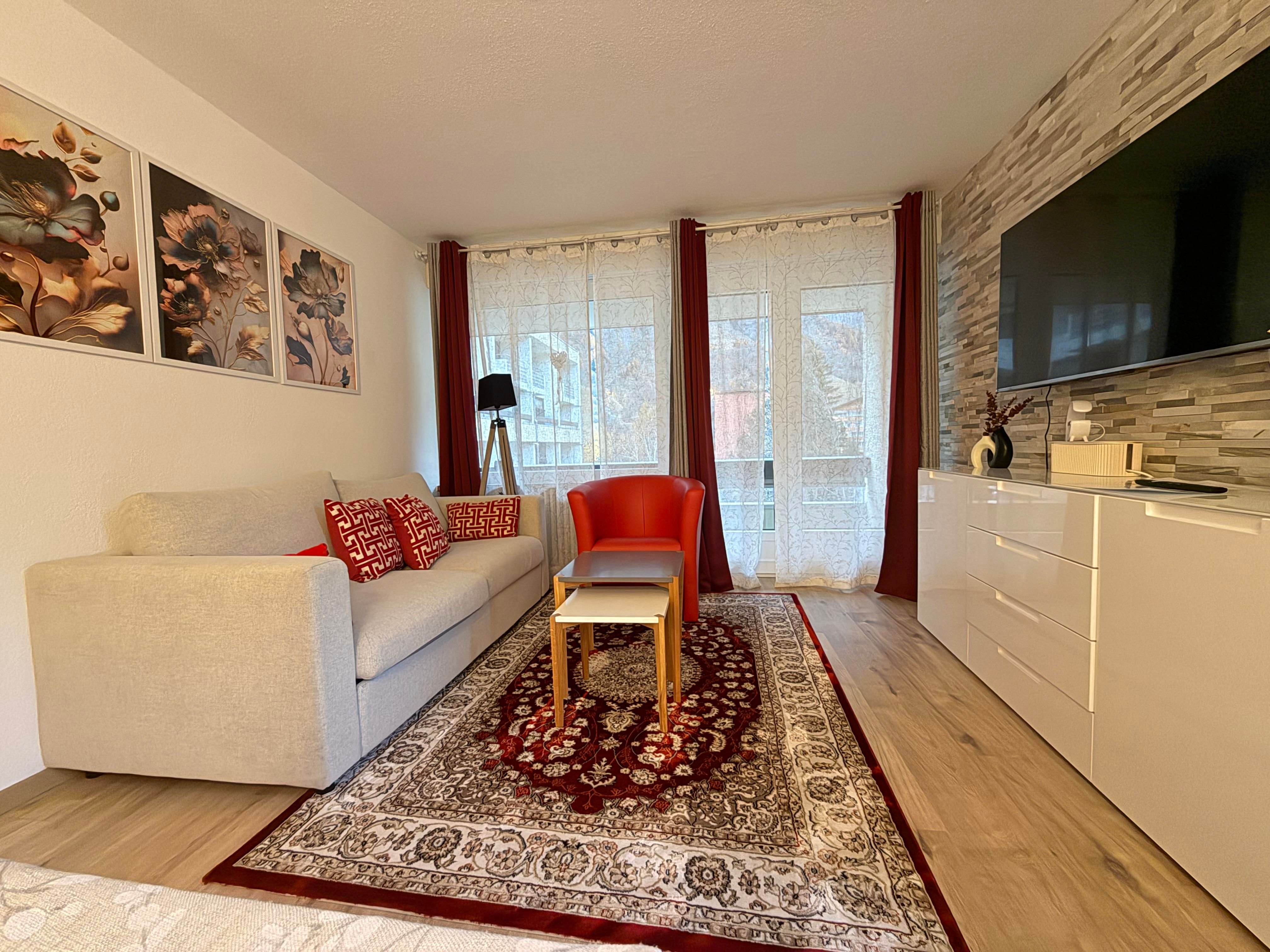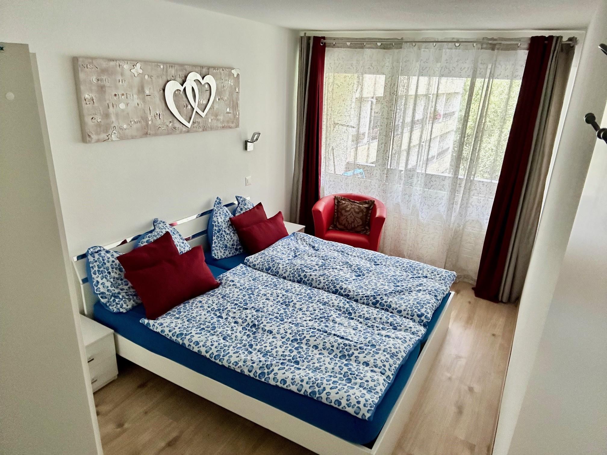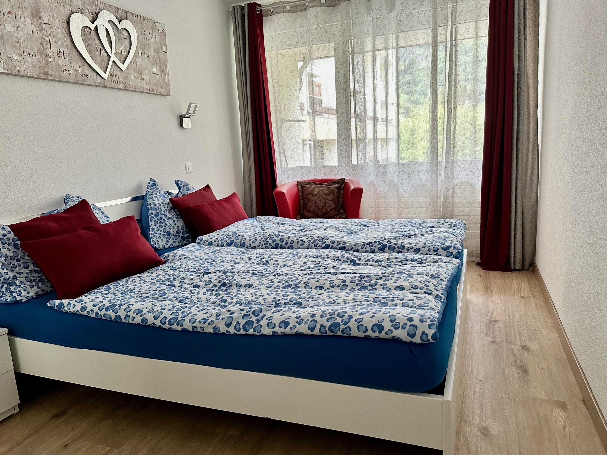 2-Zimmerwohnung, neu renoviert: Wohn-/Esszimmer mit Doppel-Schlafsofa, Radio, TV, gratis WiFi, separate Küche mit Geschirrspüler, 1 Schlafzimmer mit Doppelbett, Dusche/WC, Balkon auf Westseite. Nichtraucherwohnung. Haustiere sind nicht erlaubt. Garagenplatz zu mieten.