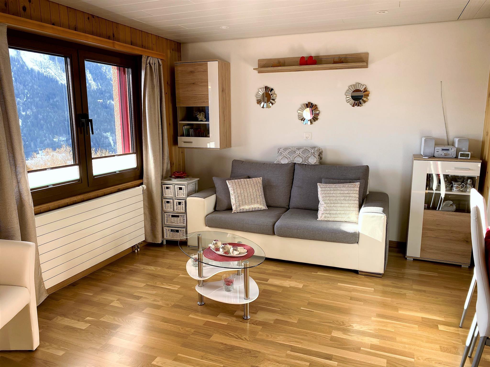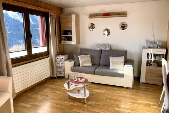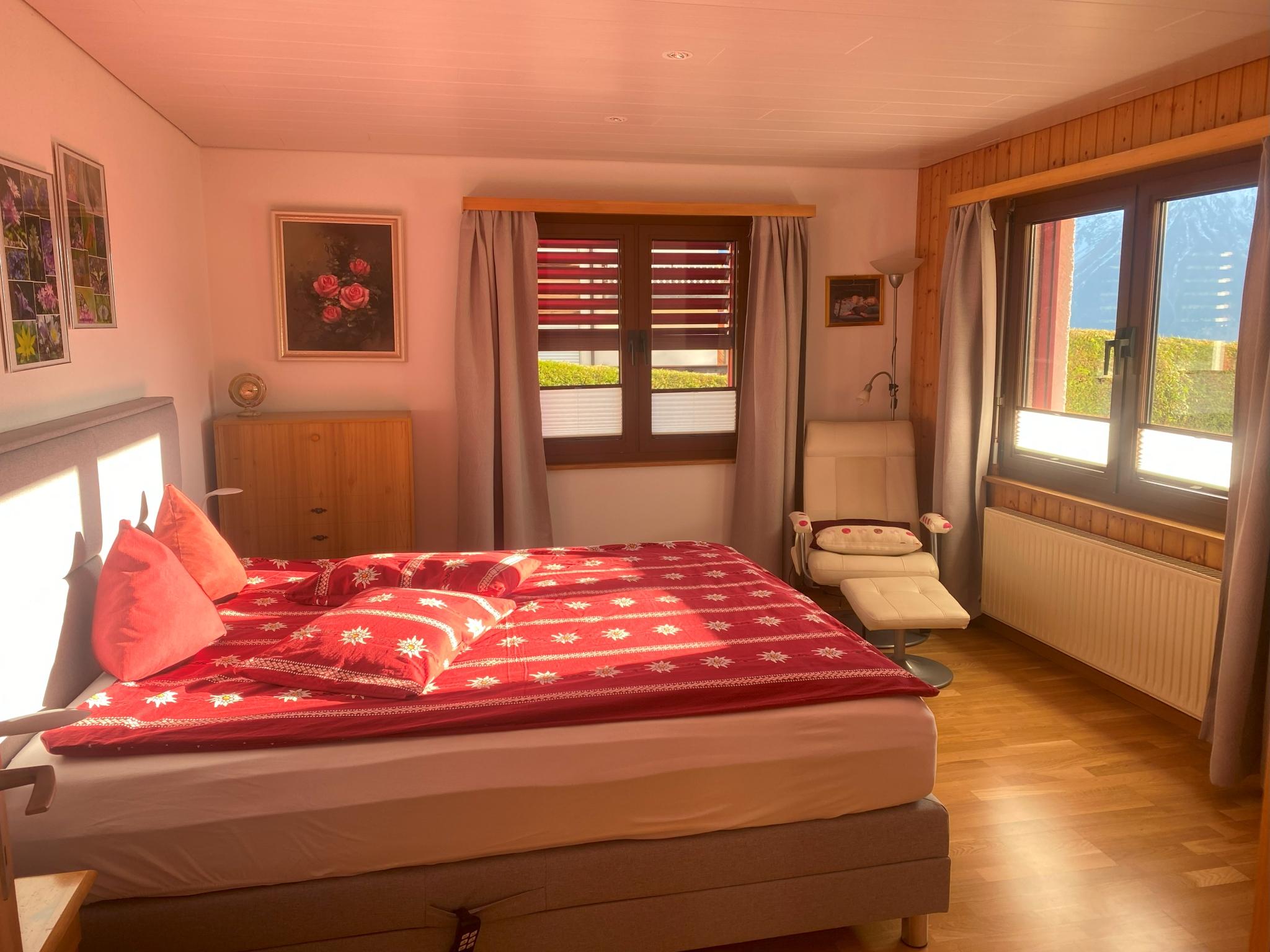 2-Zimmerwohnung mit separatem Eingang: Wohn-/Esszimmer mit Sofa, Sat-TV, DAB+ Radio, CD-Player, Wireless-LAN, offene Küche mit Geschirrspüler & Mikrowelle, Filter- und Kapsel Kaffeemaschine DELIZIO, Toaster, Raclette, Fondue, 1 grosses Schlafzimmer, Dusche/WC, alleinige Terrassen- & Gartenbenützung mit Panoramablick, Südlage. Garage beim Haus. Nichtraucherwohnung. Haustiere nicht erlaubt.
