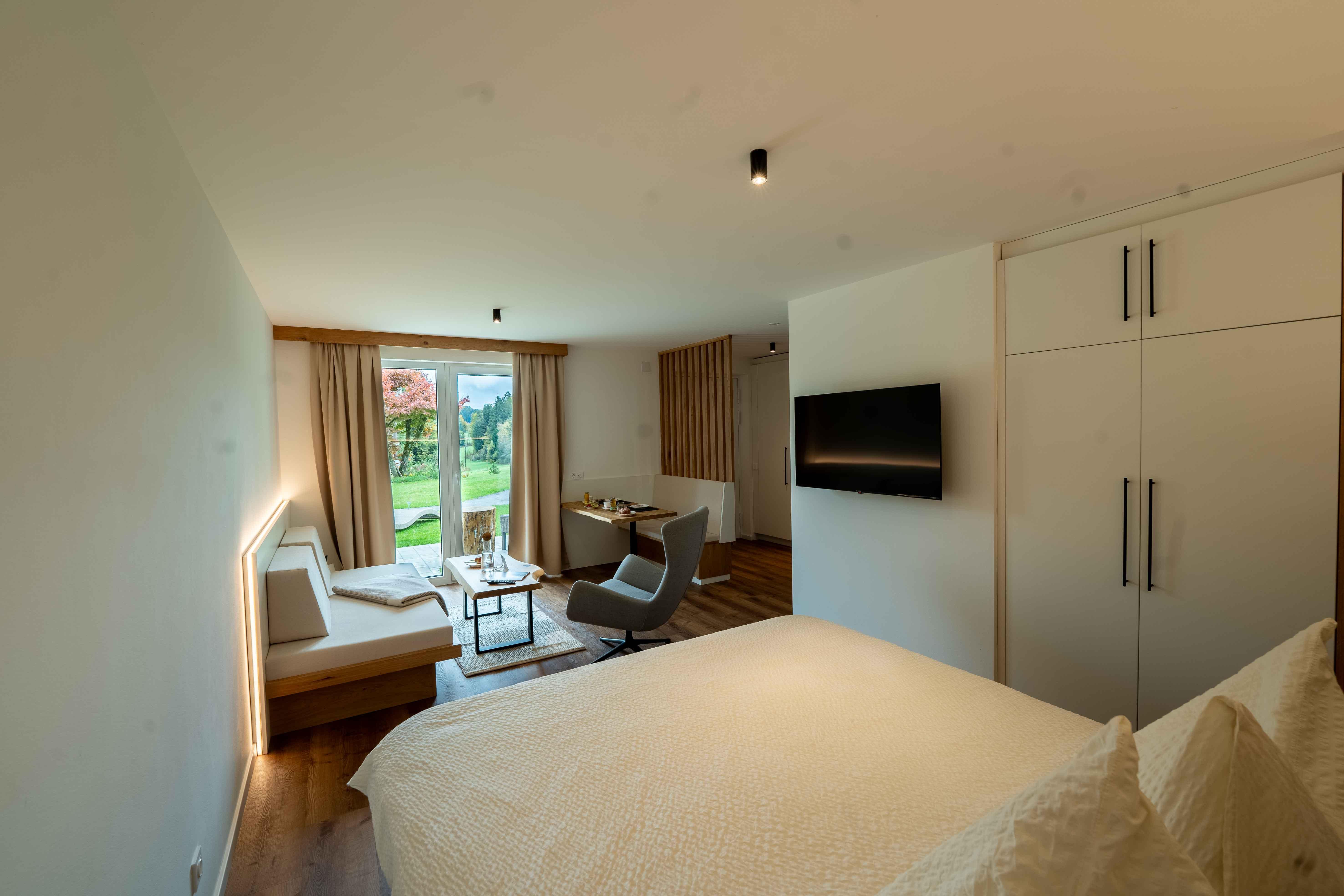 Die Natur Garten Suite Weißtanne verzaubert Menschen durch seine ruhige und zarte Wirkung. Ein Naturmaterial so zart und mit so viel Wirkungskraft. Hell, edel und ganz weich. 37m2 Refugium, Lichterfüllt, Warme Naturfarben und nichts stört.