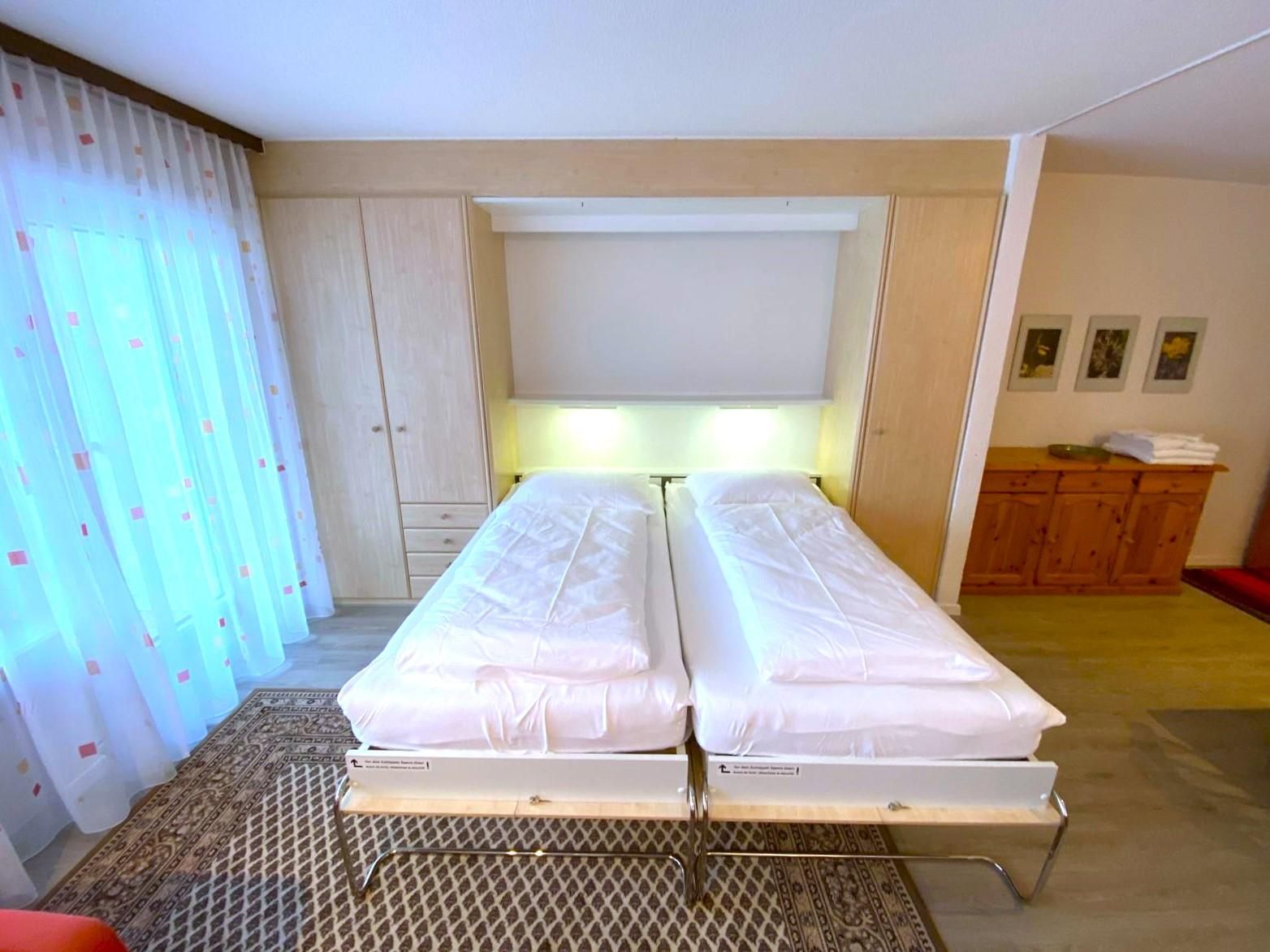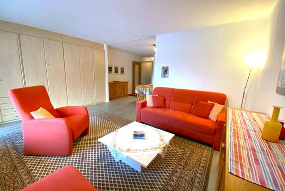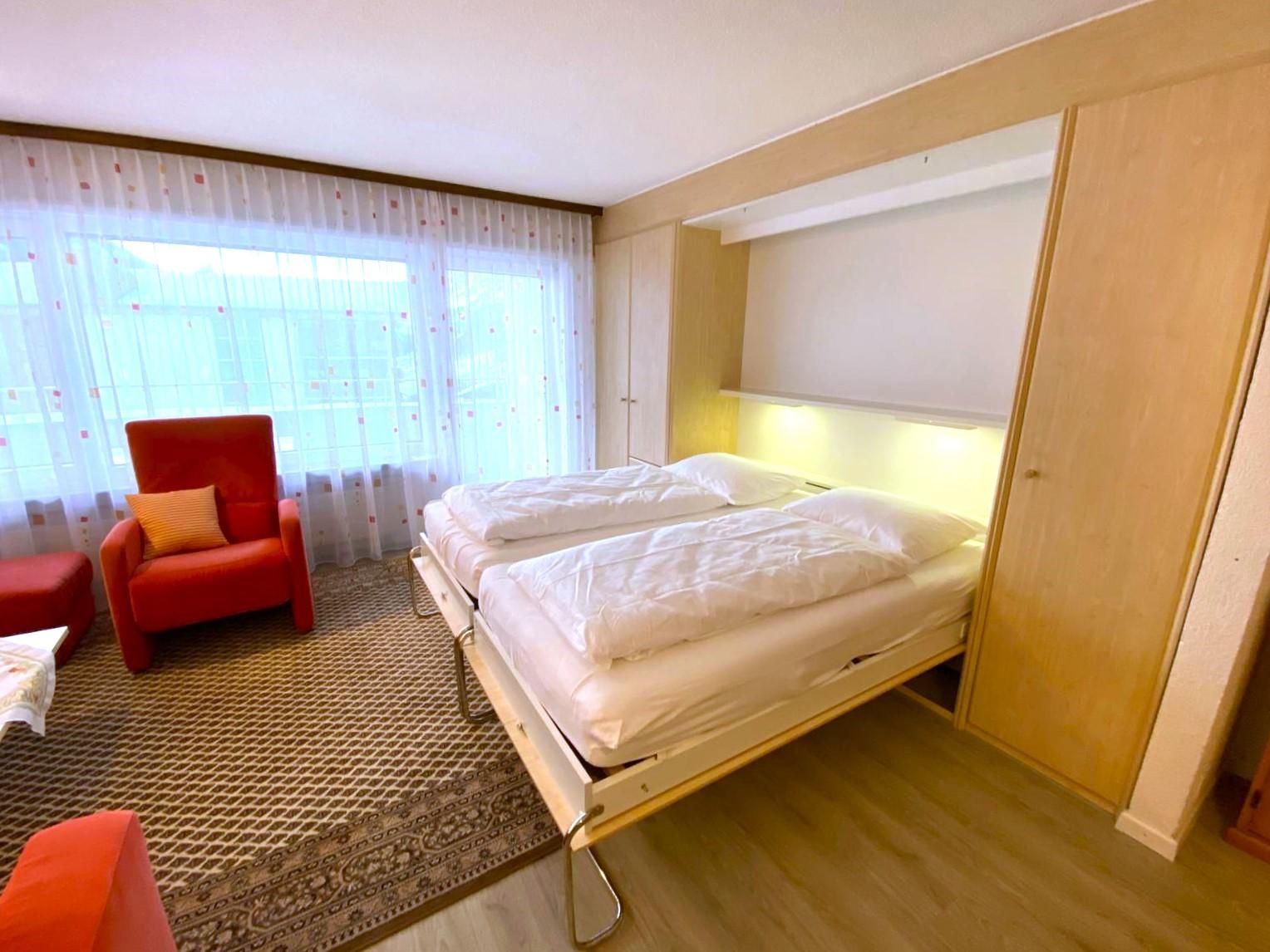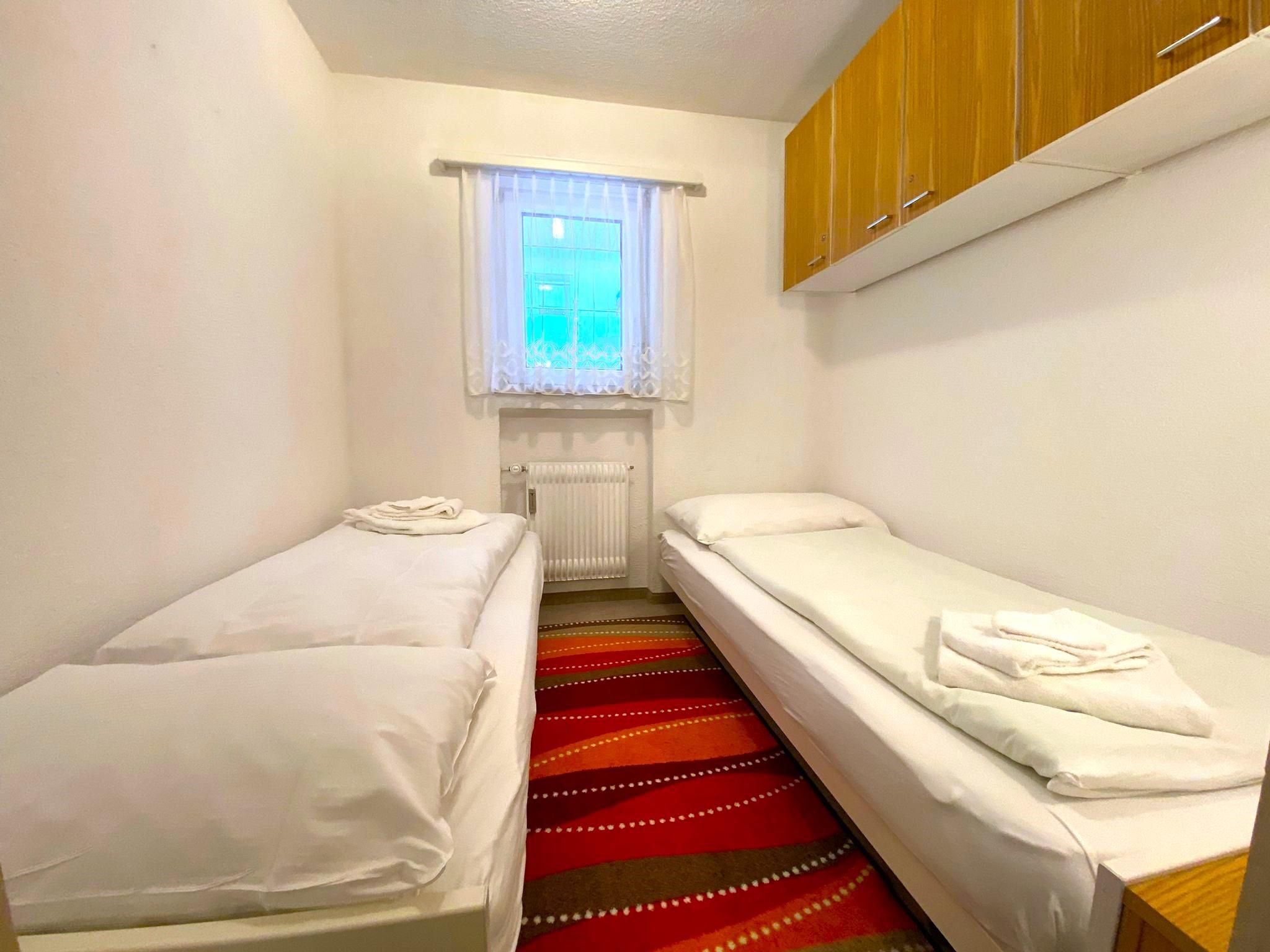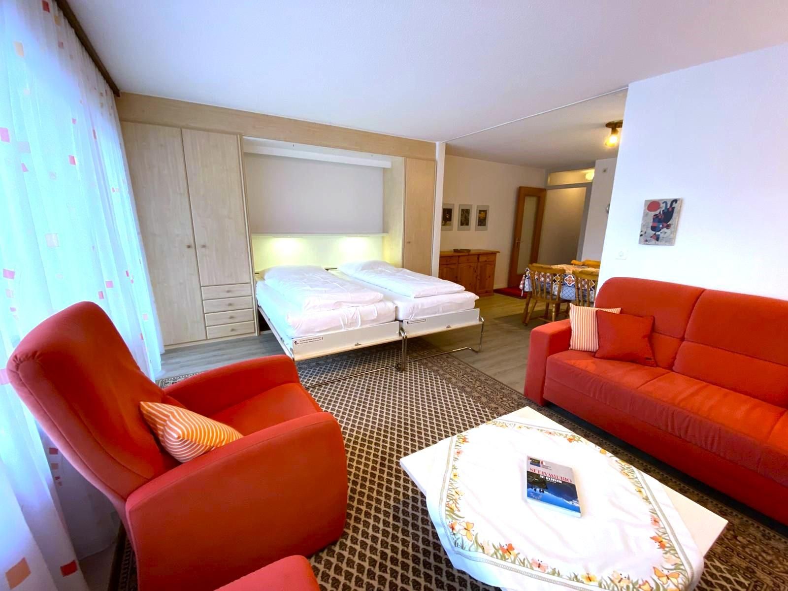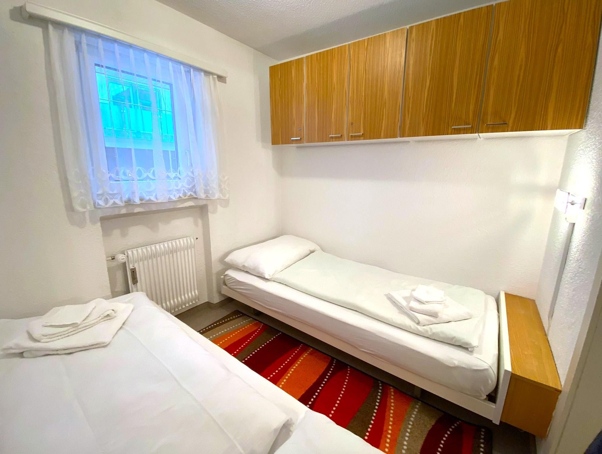 2-Zimmerwohnung: Wohn-/Esszimmer mit 2 Schrankbetten, Küche, Schlafzimmer mit 2 Einzelbetten, Dusche/WC, Balkon, gratis WiFi, Radio, TV. Garage inkusive.