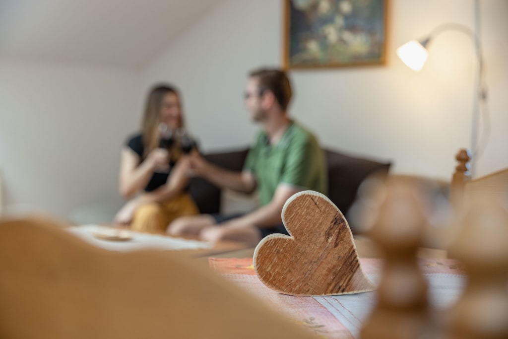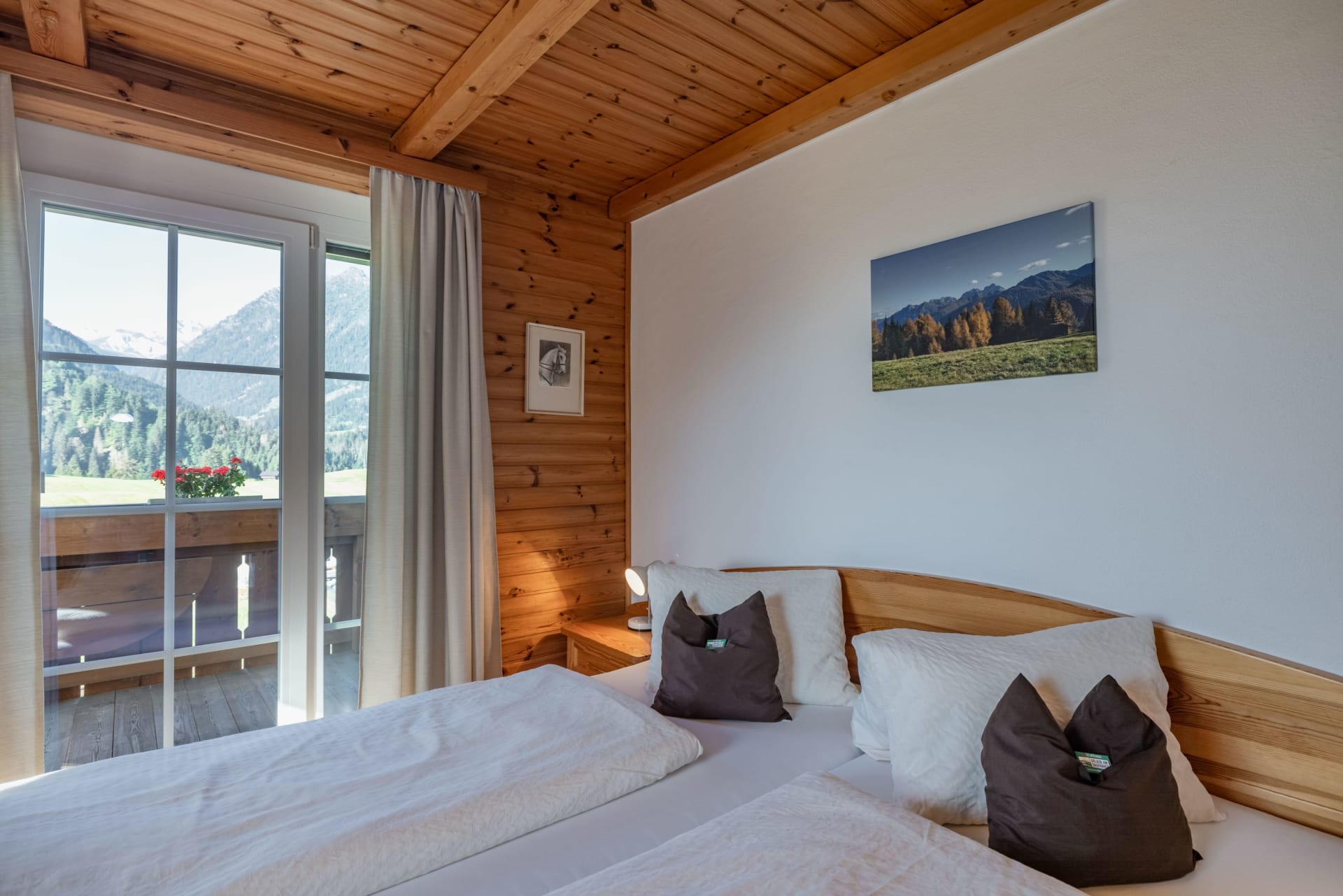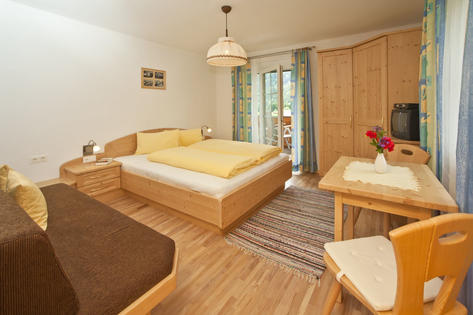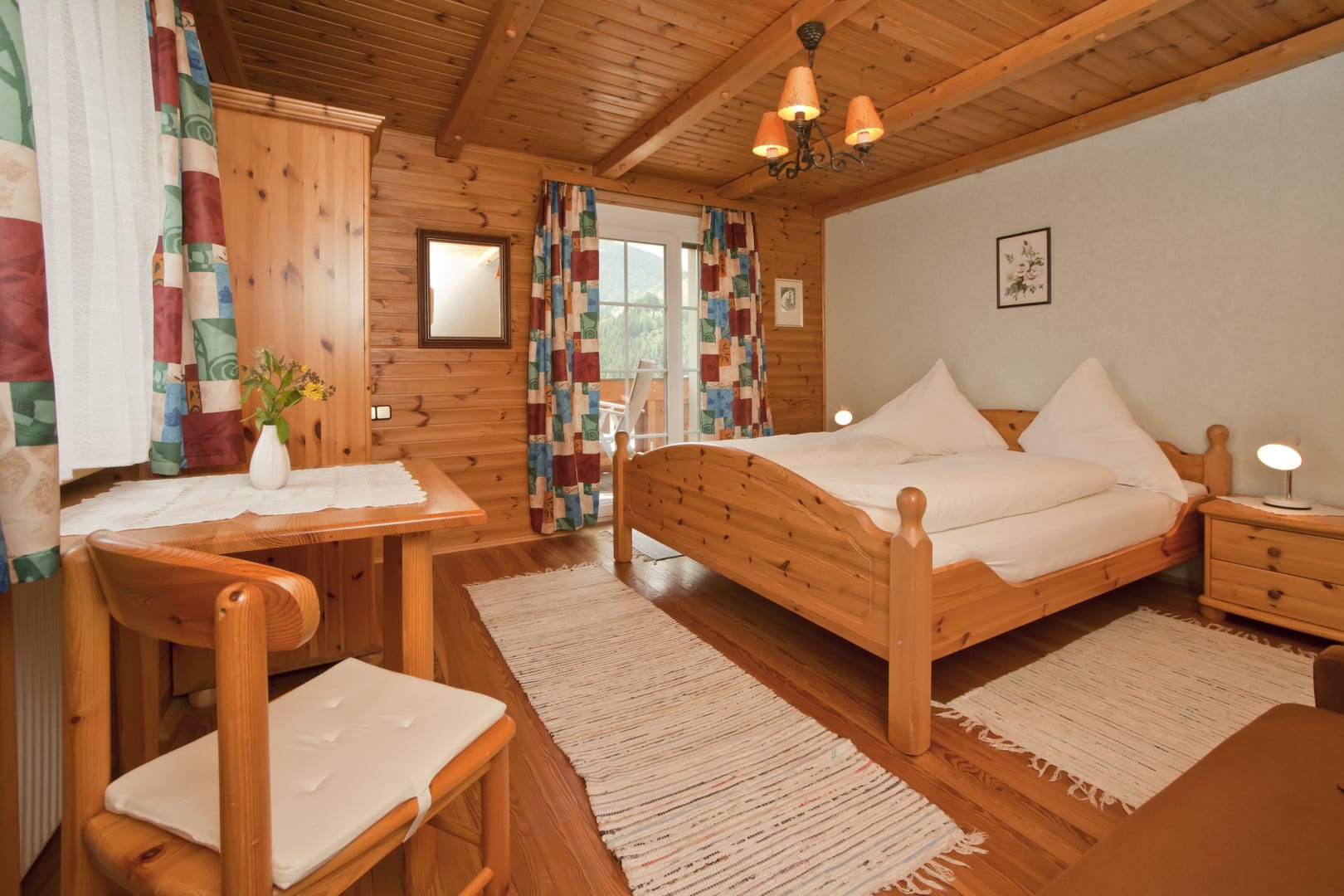 Das Doppelzimmer Sonnstein ist mit heimischem Holz eingerichtet und mit Du/ Wc, Sat/Tv, einem kleinen Kühlschrank und Balkon ausgestattet. Auf Sie wartet ein kraftvolles Frühstücksbuffet mit Bauernbrot, Eier, Butter, Milch und Joghurt aus eigener Erzeugung.
