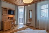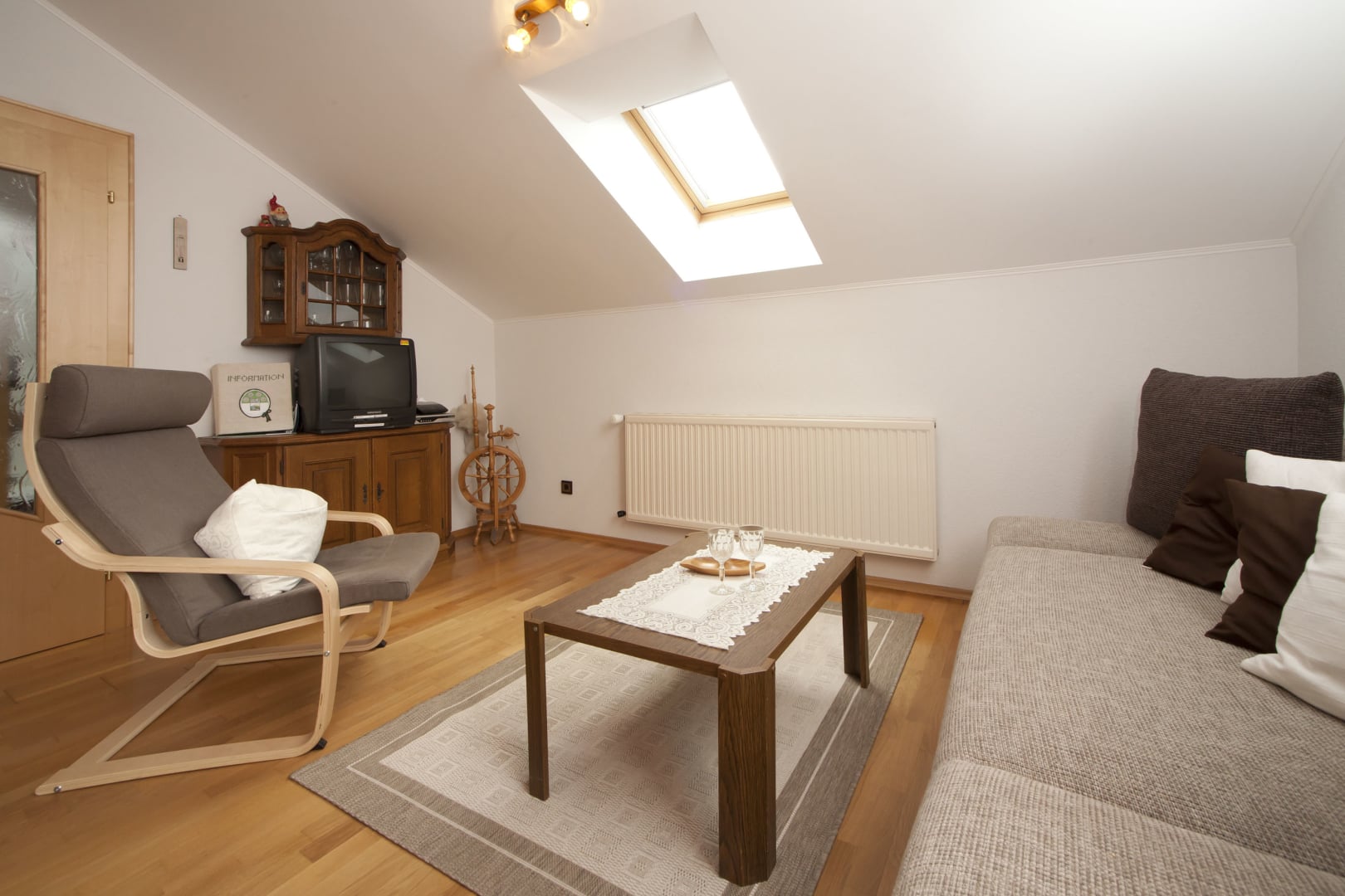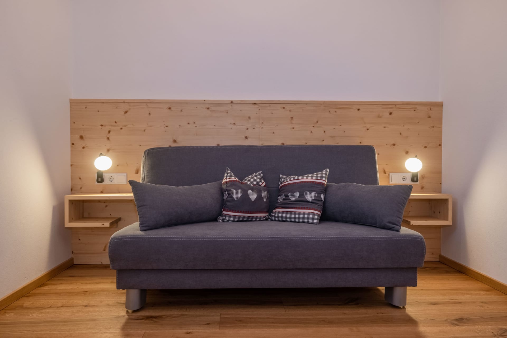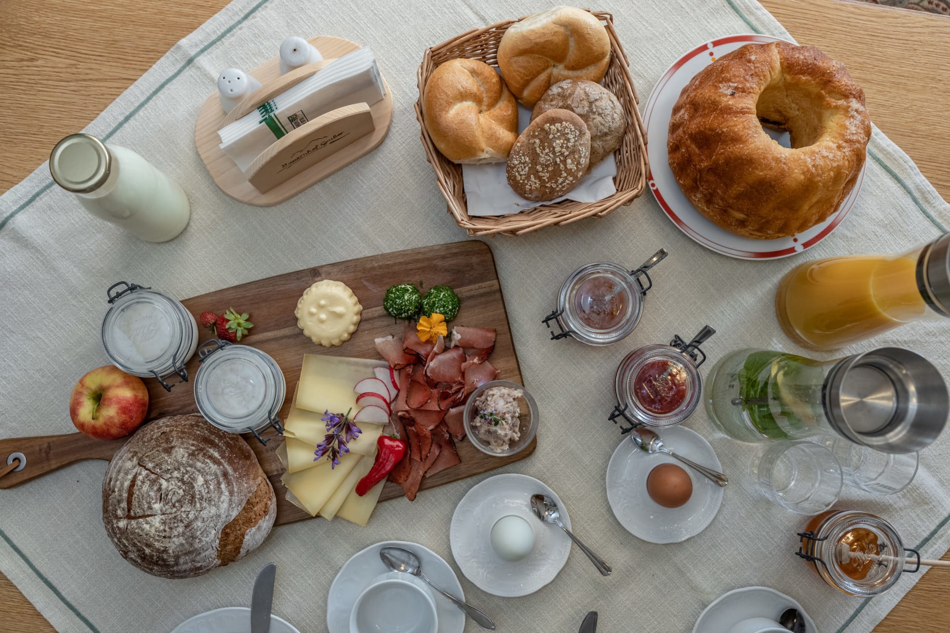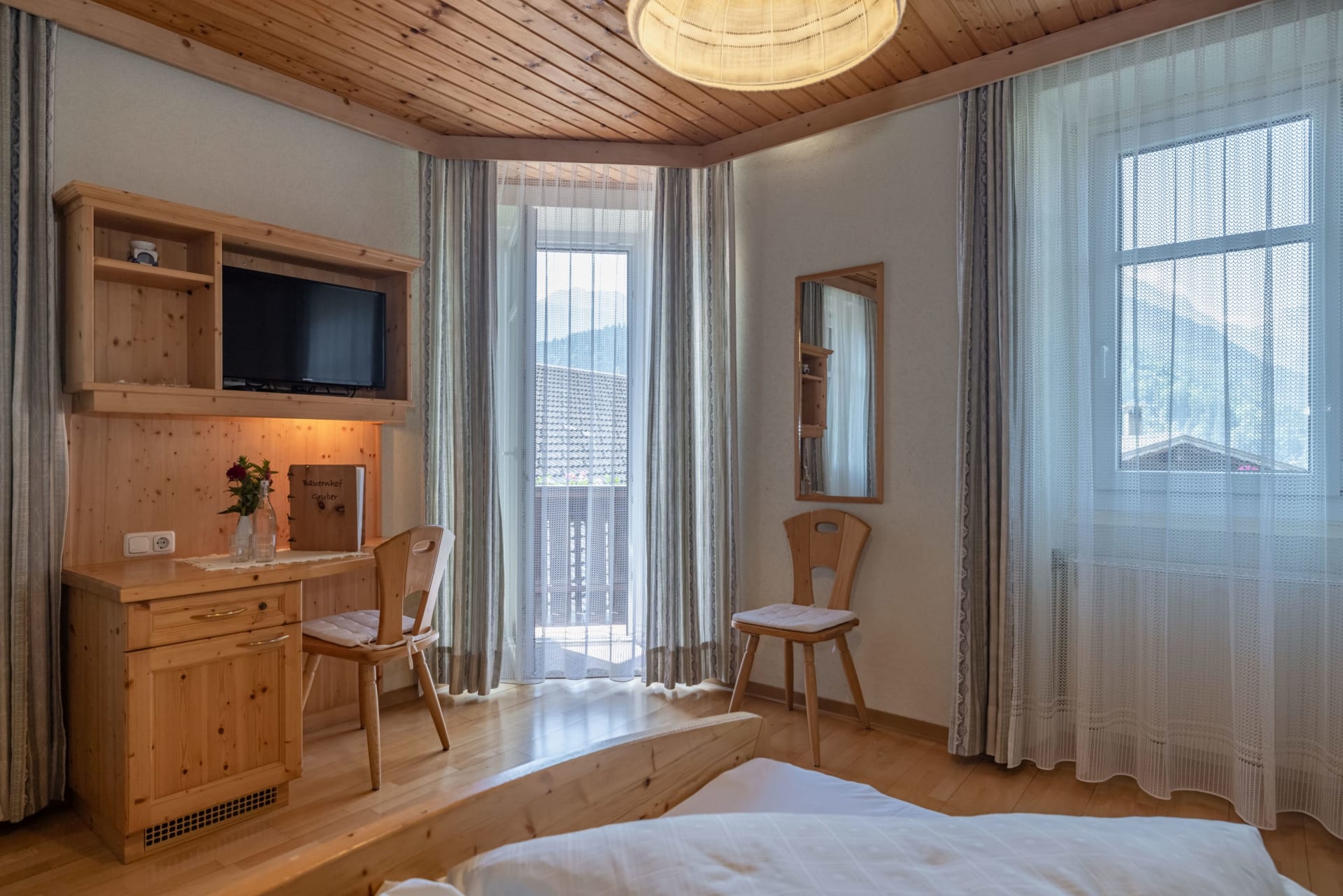 Das Doppelzimmer Sonnstein ist mit heimischem Holz eingerichtet und mit Du/ Wc, Sat/Tv, einem kleinen Kühlschrank und Balkon ausgestattet. Auf Sie wartet ein kraftvolles Frühstücksbuffet mit Bauernbrot, Eier, Butter, Milch und Joghurt aus eigener Erzeugung.