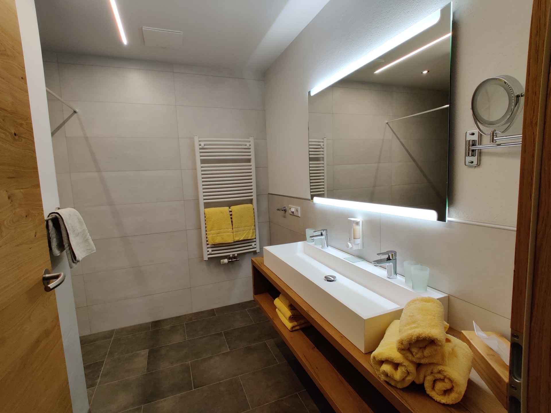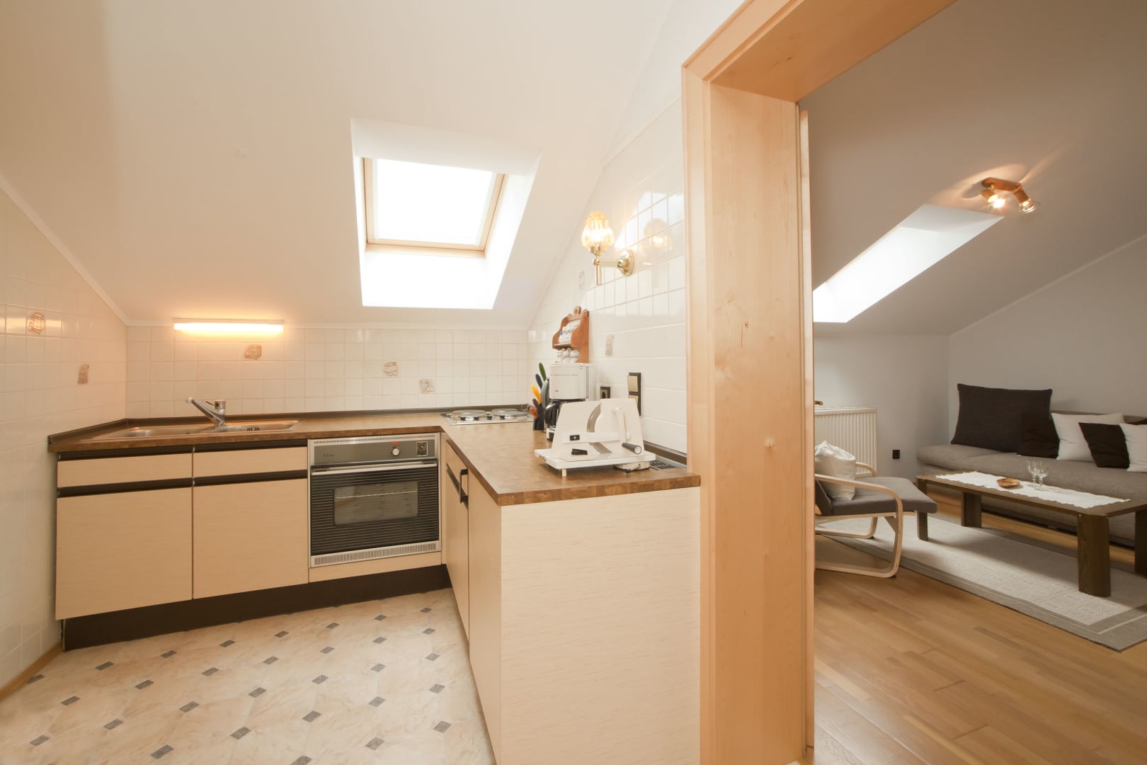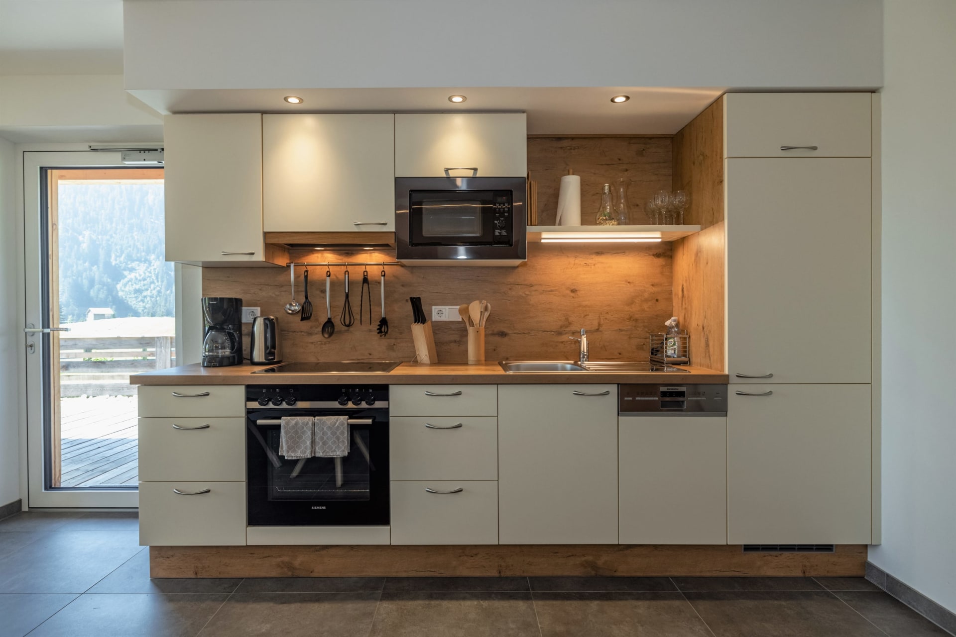 Unsere Ferienwohnung Bergkristall wurde 2021 neu errichtet: Ausstattung und Ausblick dieser Einheit sind alpenländisch und luxuriös. Heimisches Eichen und Zirbenholz wurde geölt, sodass der Duft des Holzes den Raum erfüllt. Leinen, Baumwolle und Naturstein erzeugen ein Wohlfühlambiente mit Ausblick auf die karnische, tief verschneite Bergwelt. Eine ebenerdige Terrasse erweitert den Wohnraum.