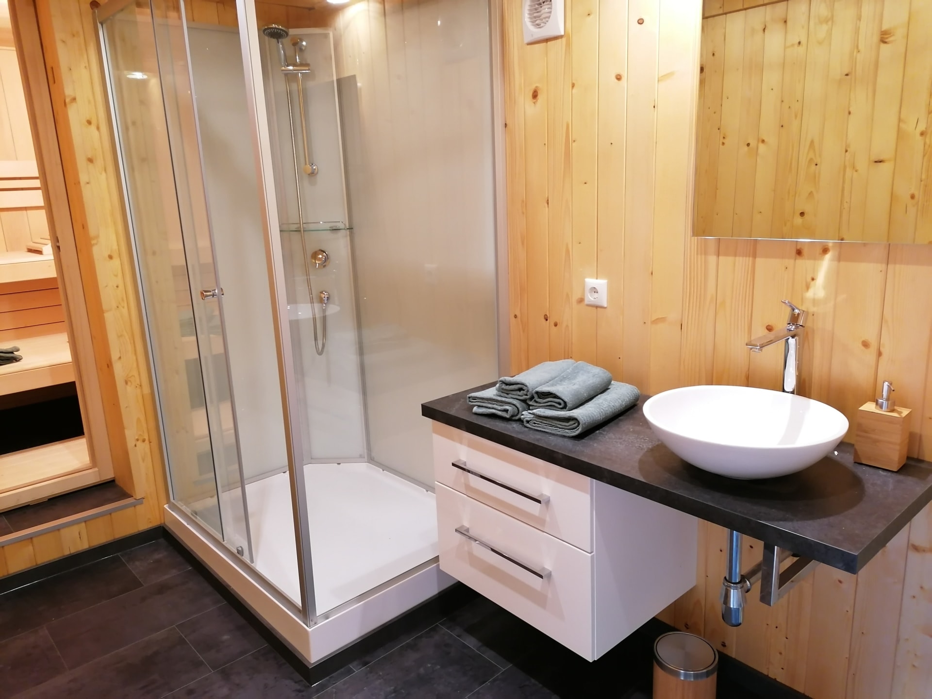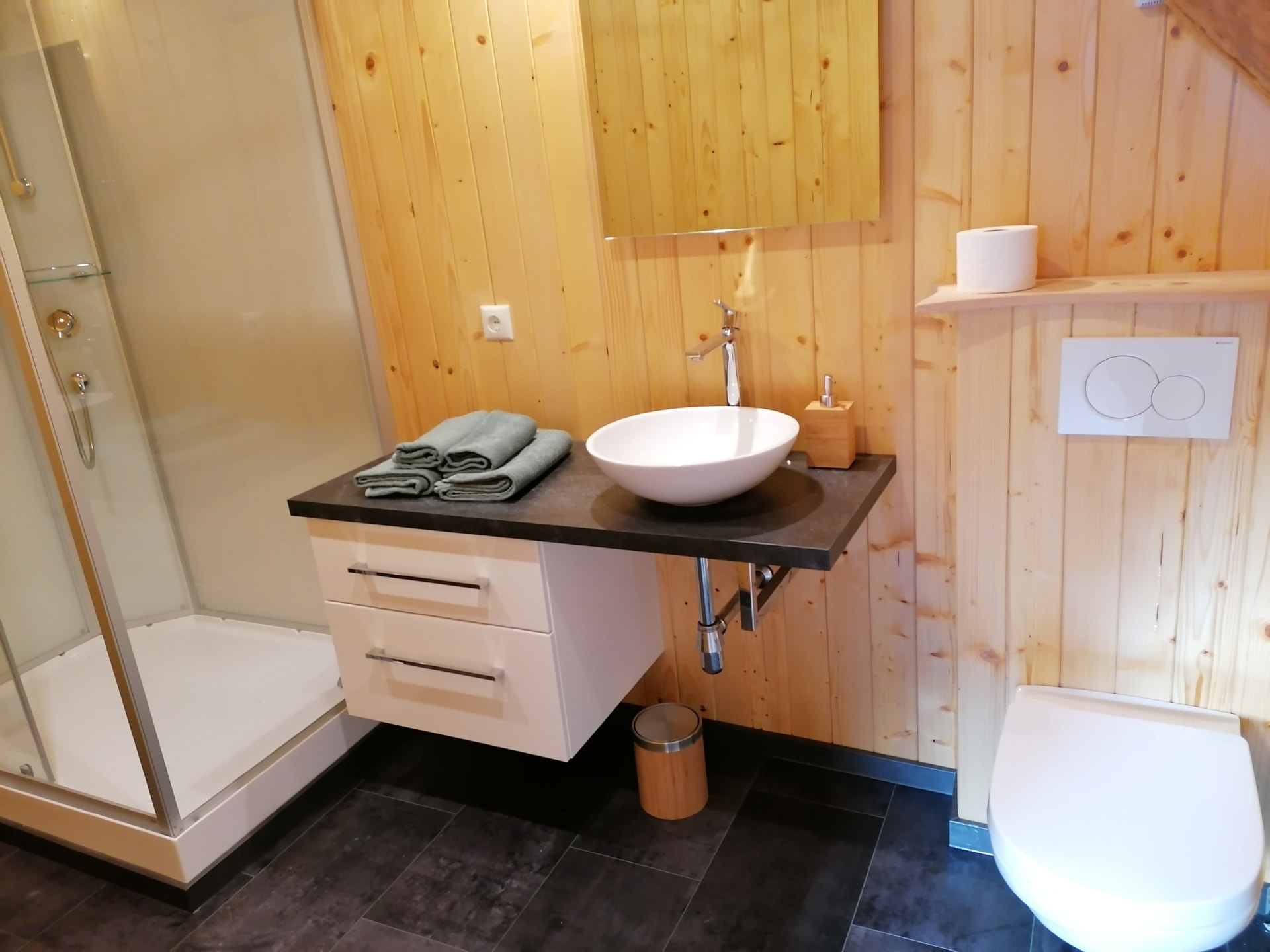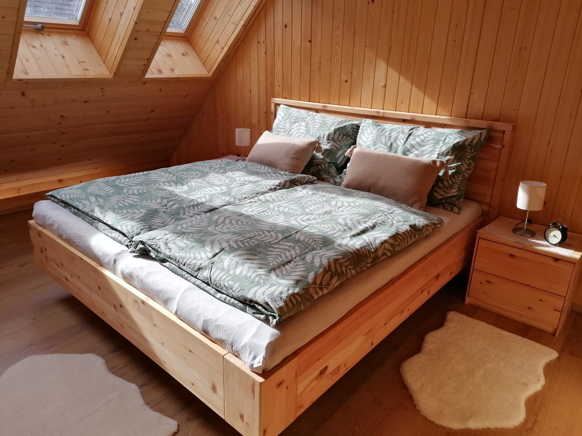Das Chalet befindet sich im 2. Stock der ehemaligen Scheune, die mit viel Liebe umgebaut wurde. An der Vorderseite des Chalets befinden sich Bienenstöcke. Dadurch können die Gäste die Bienen beobachten, sie hören und riechen. Die Gäste können Bienenstockluft und Propolis inhalieren, die inkludierte Sauna lädt zur Entspannung ein und bei der Teebar können sich Gäste kostenlos bedienen.