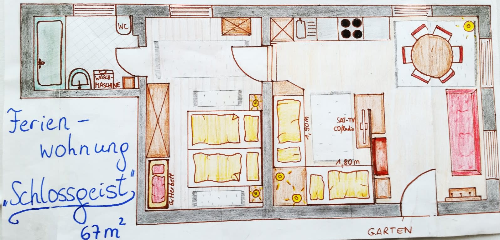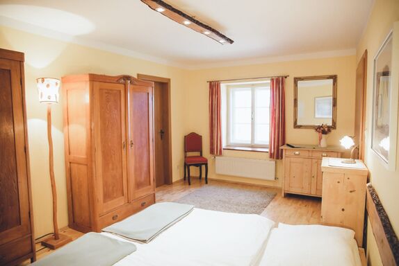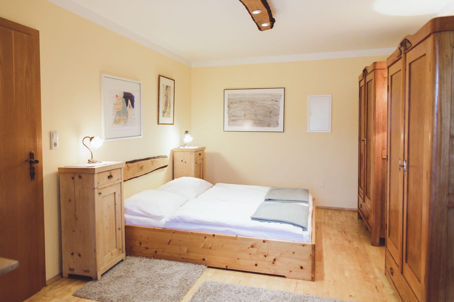 Der Ostflügel des Hauses, wo sich früher die Schlafräume der Mägde, das Apfellager und eine große Vorratskammer befanden, wurde zur Ferienwohnung umgebaut. Früher soll es hier gespukt haben! Vielleicht liegt es aber auch an den Fässern mit Apfelmost, die hier lagerten und den Leuten wohl reichlich Phantasie und wunderliche Träume beschert haben.