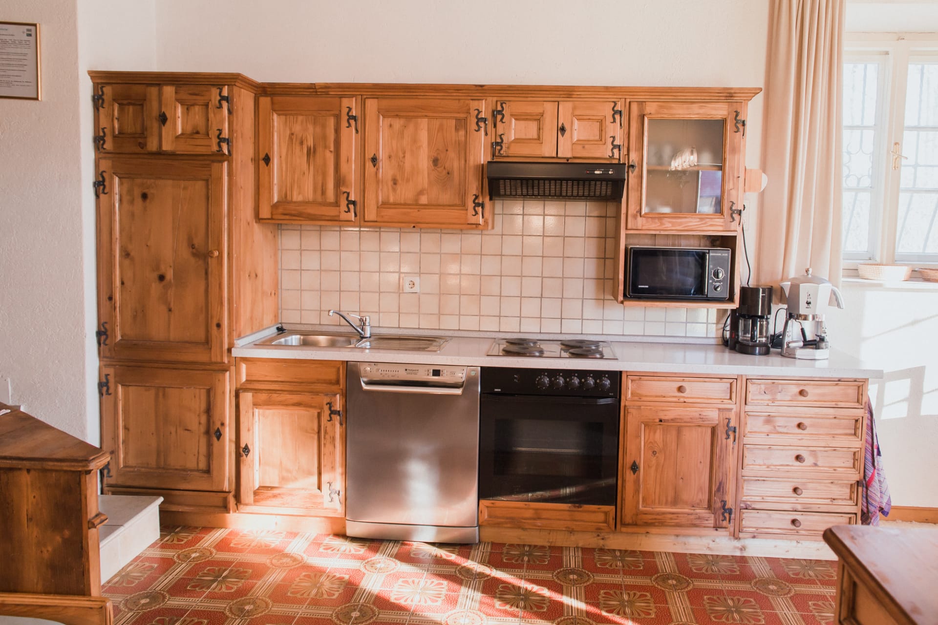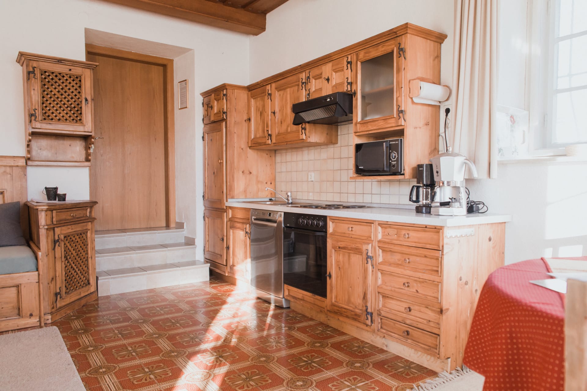 In der Gästeküche können Sie sich selbst Gerichte zubereiten, Kräuter können Sie selbst im Bauerngarten ernten!
