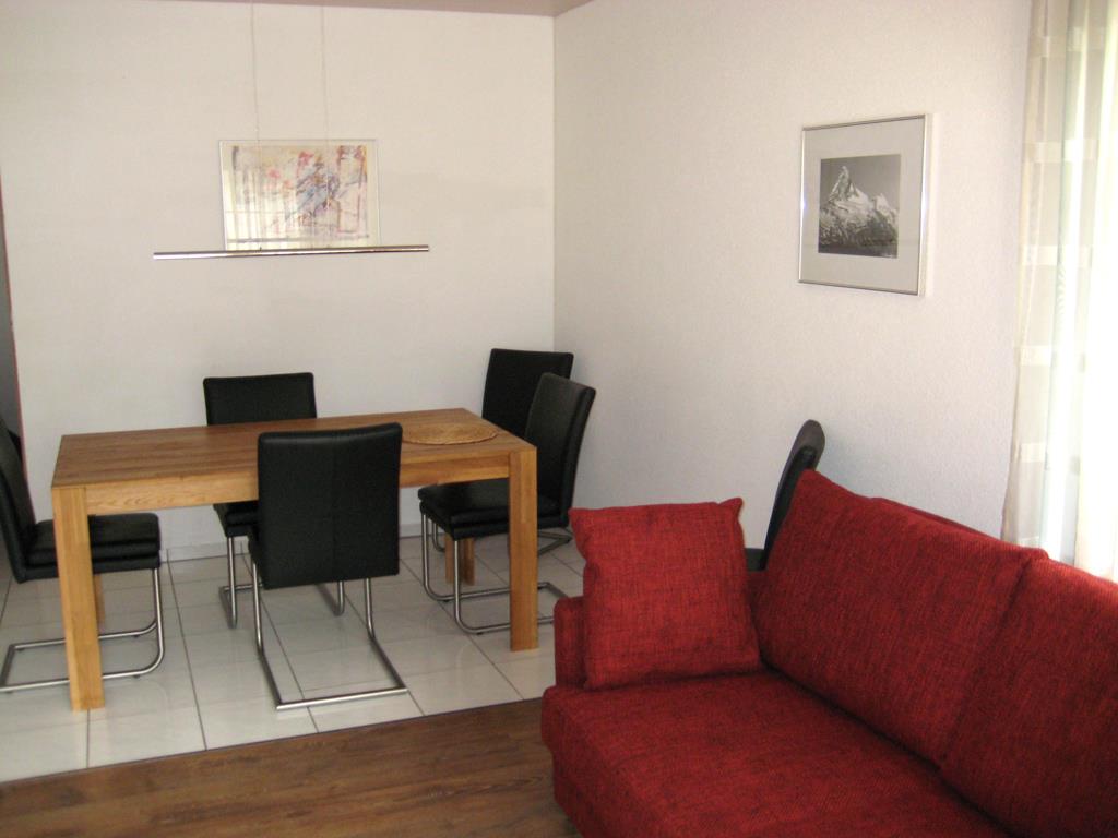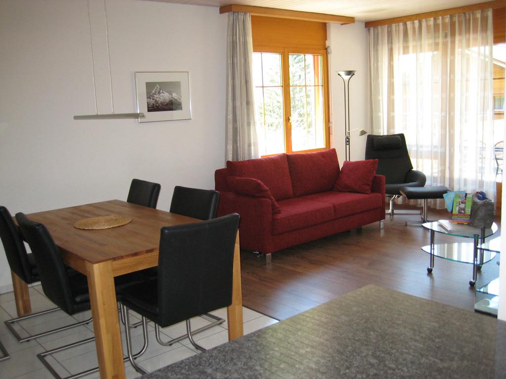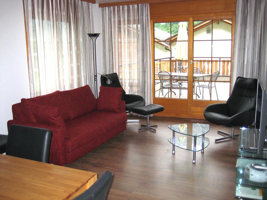 3-Zimmerwohnung für 6 Pers. (94m2) im 3.Stock mit Terrasse (70m2): Neue offene Küche mit Geschirrspüler, Wohn-/Esszimmer mit hochwertigem Bettsofa, Radio, TV, gratis WiFi, 1 Schlafzimmer mit 2 Betten und Bettsofa, TV, Dusche/WC, 1 Schlafzimmer mit französischem Bett (1.60m), Bad/WC. Spielraum in der Residenz. Garage inklusive. Nichtraucher-Wohnung. Keine Haustiere erlaubt. Täglicher Brot-Lieferservice.