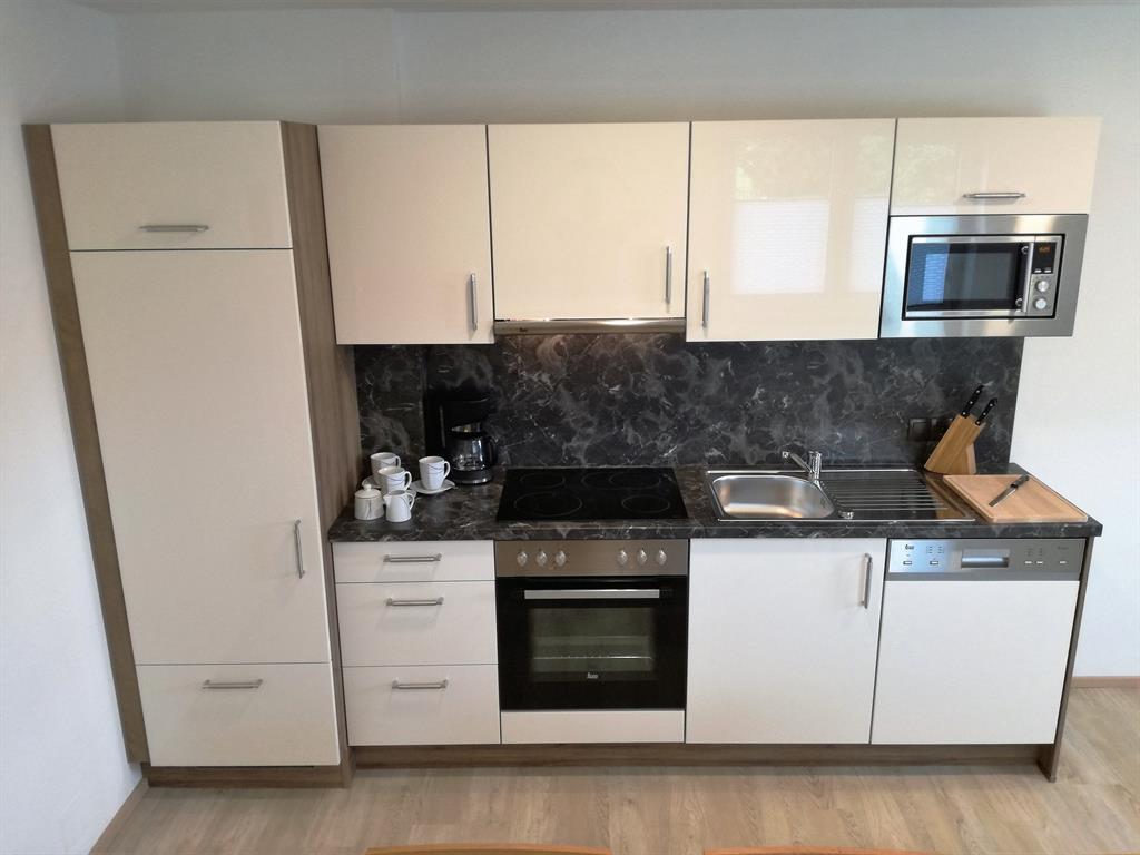 Die Wohnküche ist komplett ausgestattet mit Geschirrspüler, Kühl-Gefrierkombination, Mikrowelle und Kaffeemaschine.