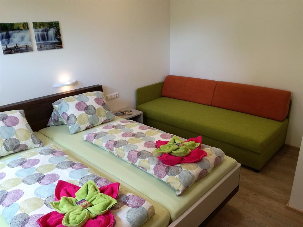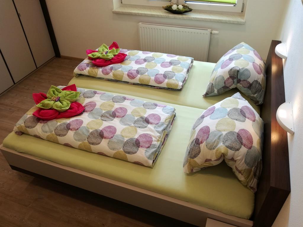 Unsere im Sommer 2017 fertiggestelltes Ferienwohnung für 2-6 Personen besteht aus 2 Doppelbettzimmer mit je einer Couch, einer großen Wohnküche, einem Badezimmer mit Dusche/WC und einem Vorraum. Die Wohnung ist sehr gemütlich und modern mit liebevollen Details sowie mit Sat-TV und free W-Lan ausgestattet.