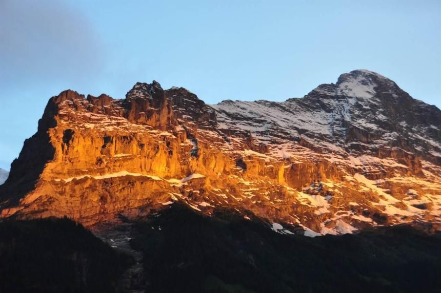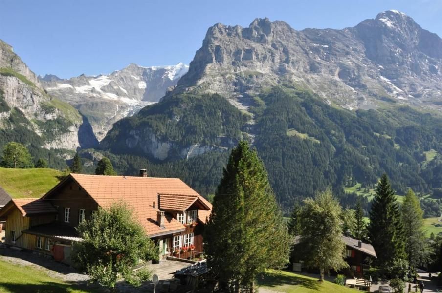 Der Außenbereich lädt mit einer Terrasse zum Verweilen ein, von wo aus man einen panoramischen Blick auf die imposanten Berge wie den Eiger und das Wetterhorn genießen kann. Neben der Wohnung im Erdgeschoss steht den Gästen auch ein Parkplatz zur Verfügung. Es ist zu beachten, dass die Terrasse und der Parkplatz die einzigen gemeinschaftlich nutzbaren Bereiche sind, wobei die restlichen Außenbereiche des Hauses privat sind.
