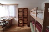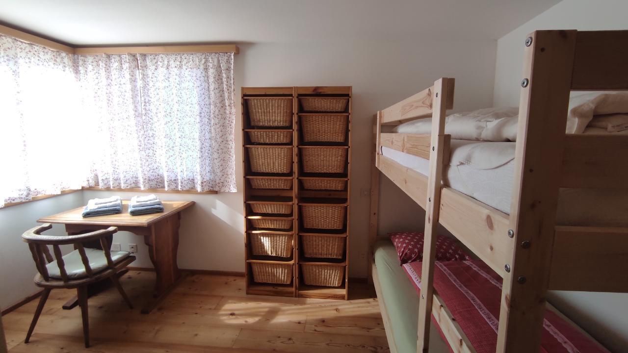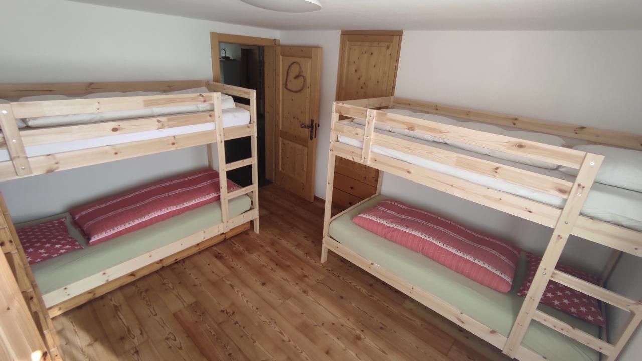 - zwei Schlafzimmer: das erste mit einem Doppelbett (160 x 190 cm) und das zweite mit zwei Etagenbetten (90 x 200 cm), insgesamt 6 Schlafplätze; in beiden Zimmern gibt es einen Einbauschrank