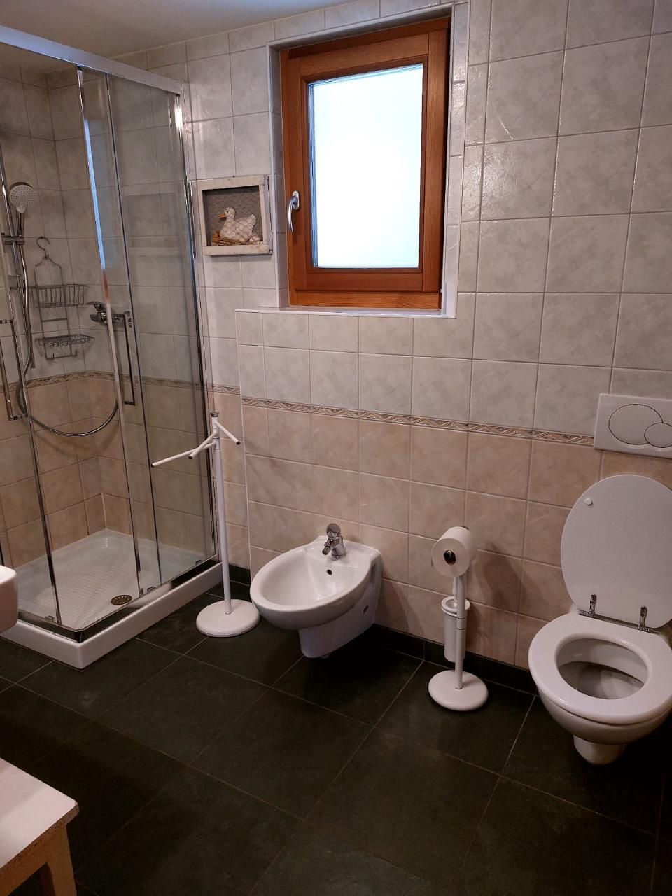 - ein großes Badezimmer mit Dusche, Toilette und Bidet