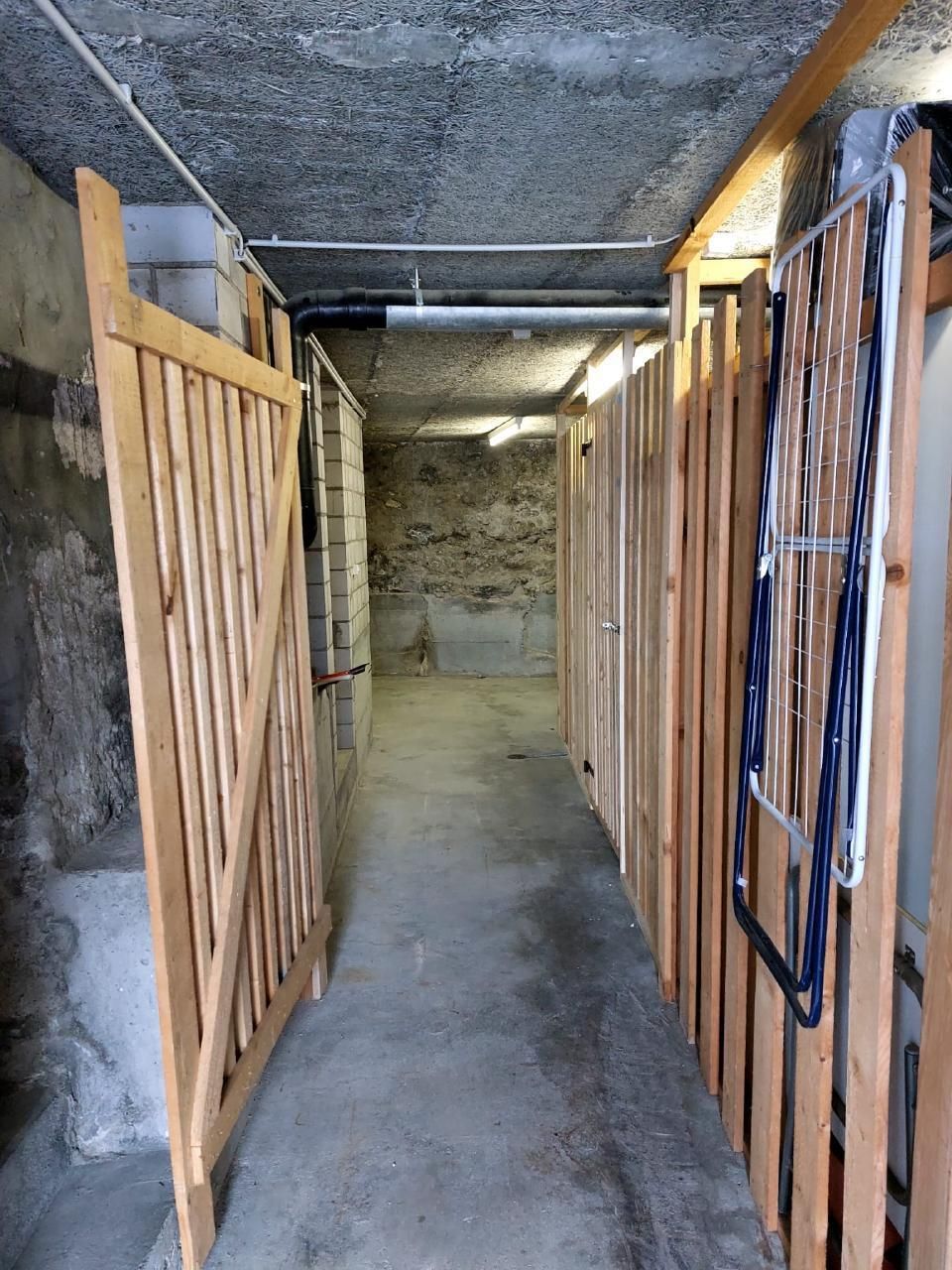 Es gibt einen bequemen überdachten Parkplatz (Nr. 8), einen umzäunten Gemeinschaftsraum zum Abstellen von Fahrrädern, Buggys, Skiern und Schlitten sowie einen kleinen Hof zur gemeinschaftlichen Nutzung.