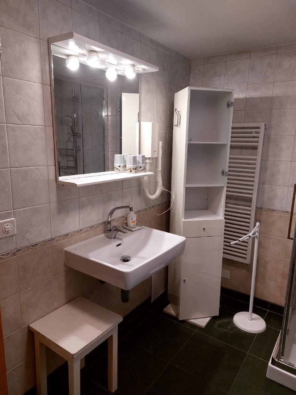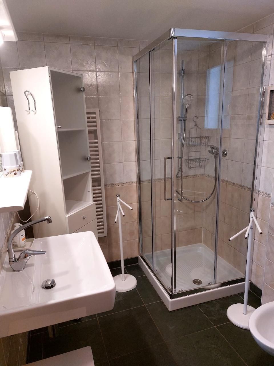 - ein zweites, kleineres Badezimmer mit Toilette und Waschbecken