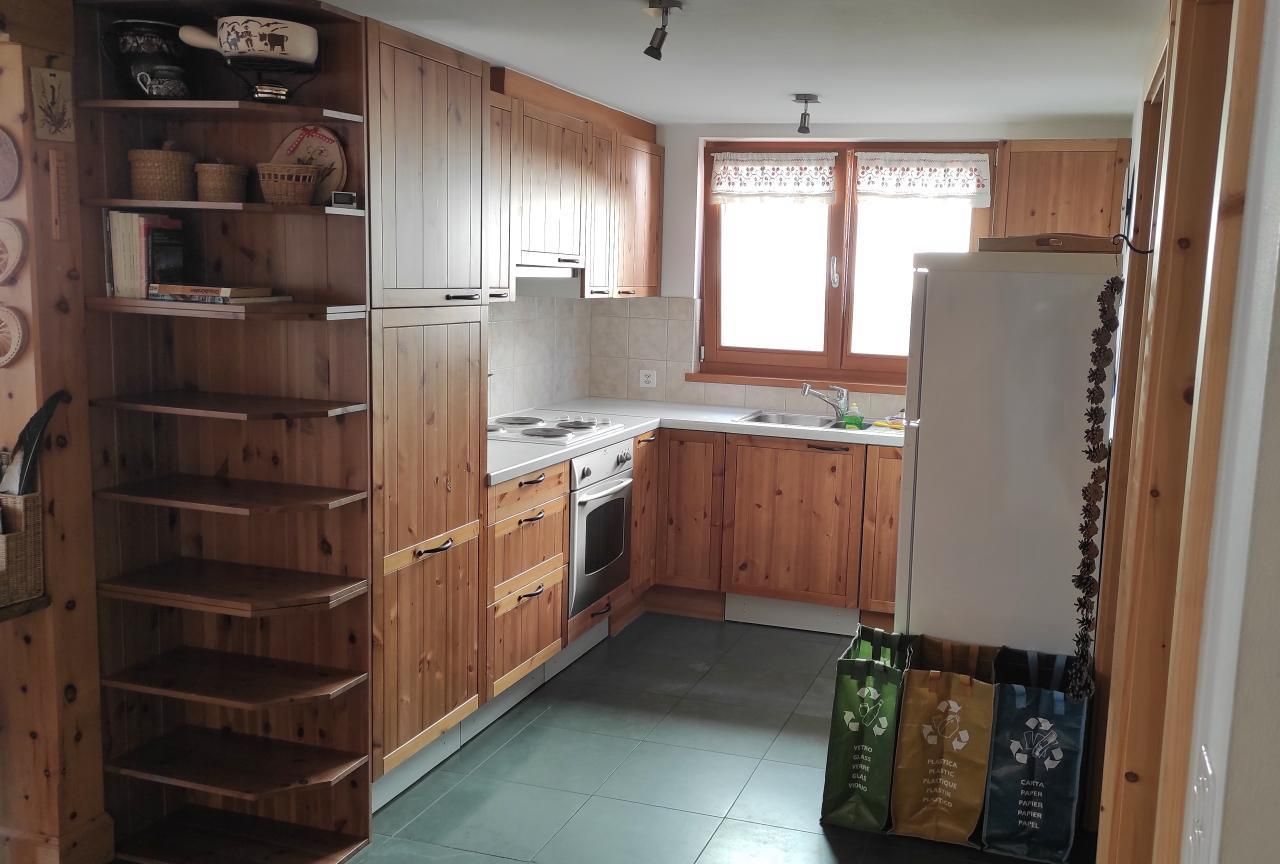 Die Wohnung befindet sich im Erdgeschoss einer Doppelhaushälfte. Sie ist direkt, ohne Treppe, zugänglich. Günstige Lage und eine schöne Aussicht auf die umliegenden Berge.