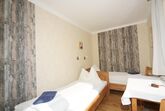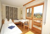 Mit Vollholzmöbeln eingerichtete Familieneinheit bestehend aus einem Doppelzimmer und einem Zweibettzimmer mit Verbindungstür. Beide Zimmer mit Du/WC und großem Balkon einmal Richtung Osten und einmal Richtung Süden.