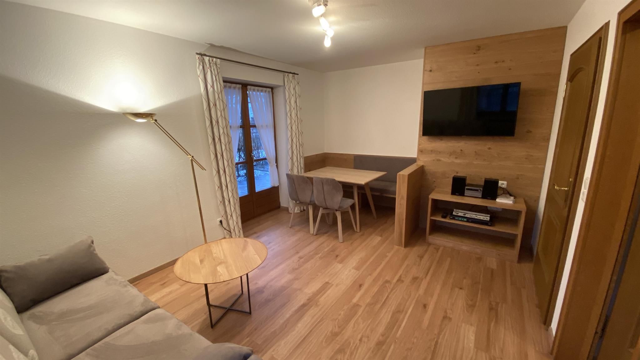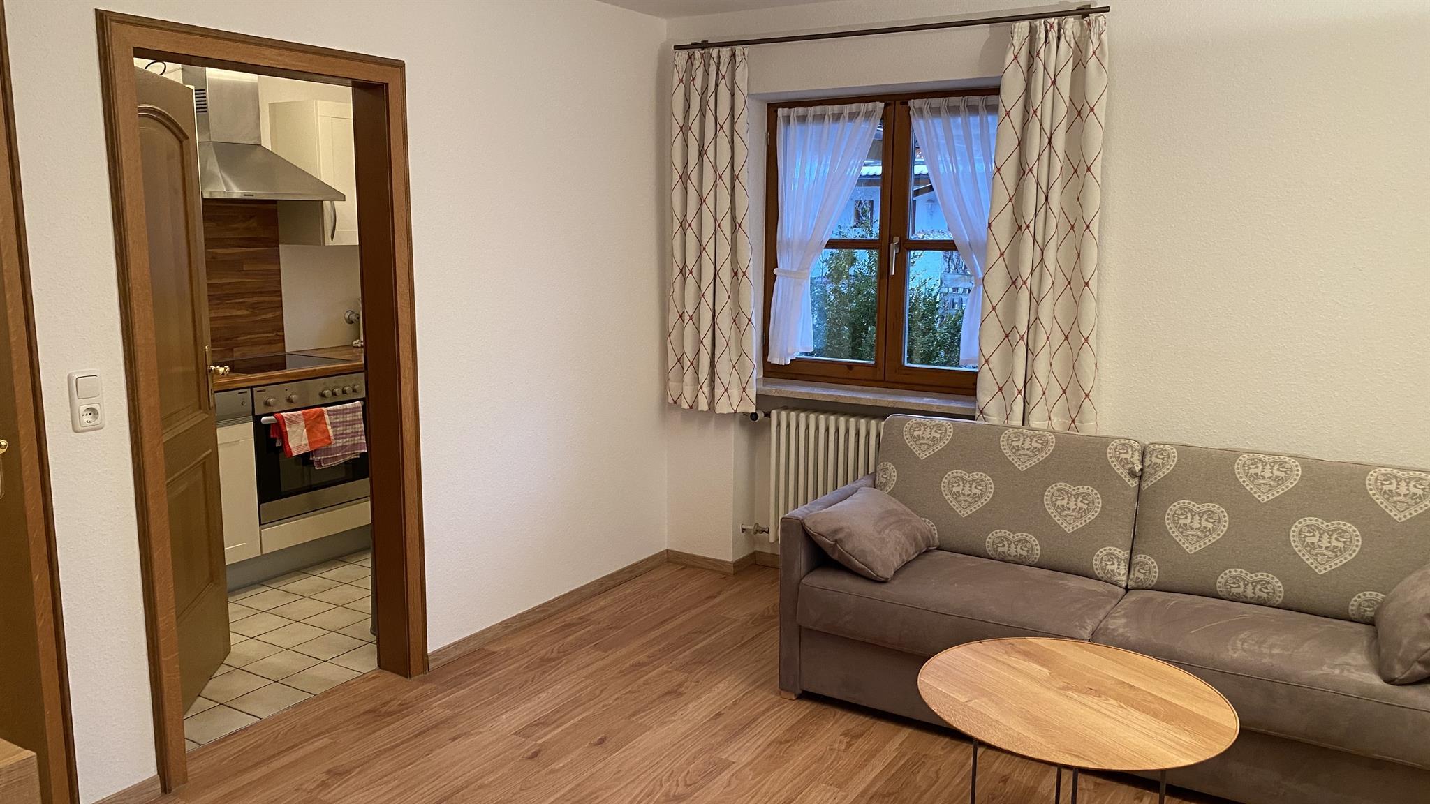 Das Apartment Hohenschwangau befindet sich im Erdgeschoss mit überdachter Südterrasse und Garten.