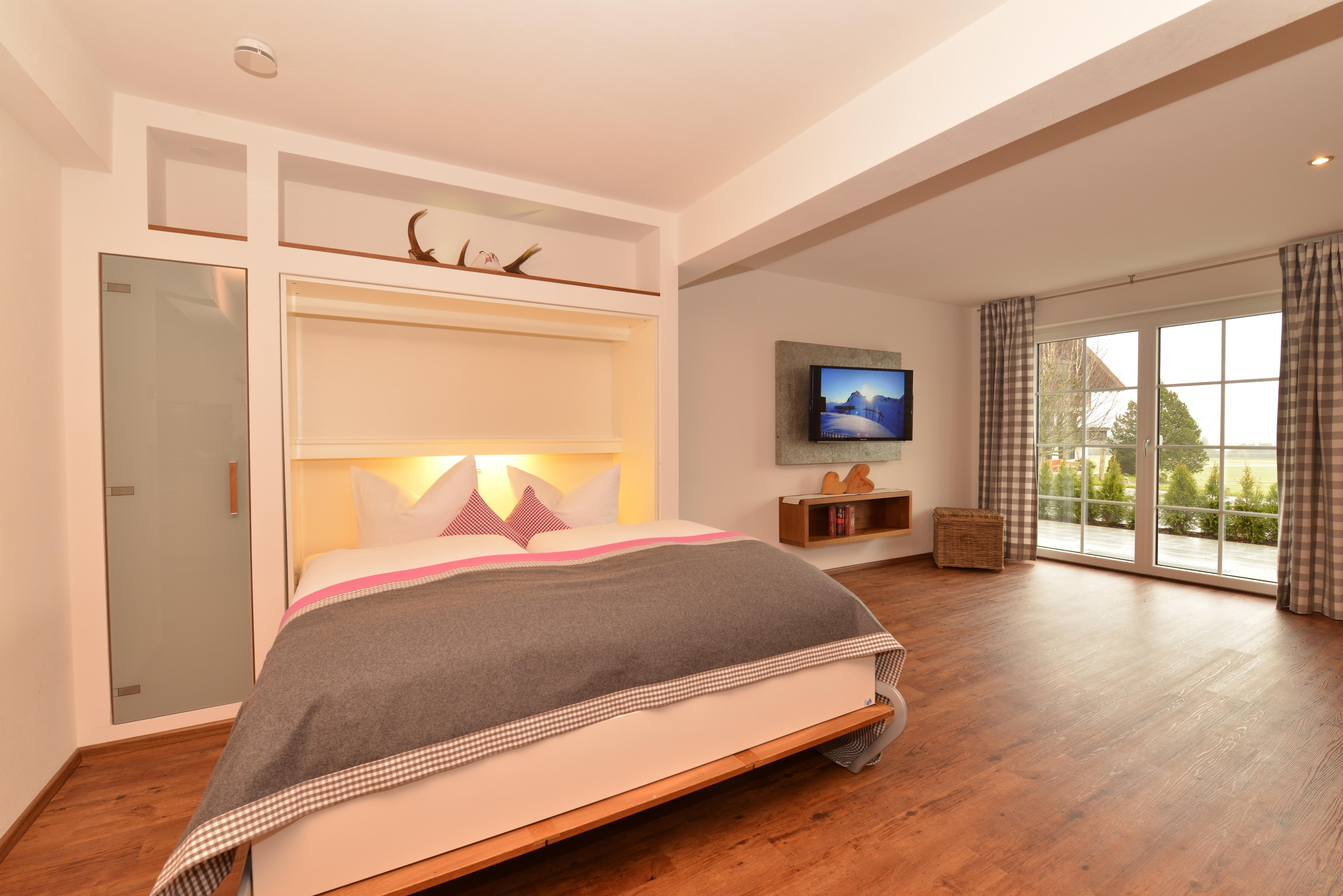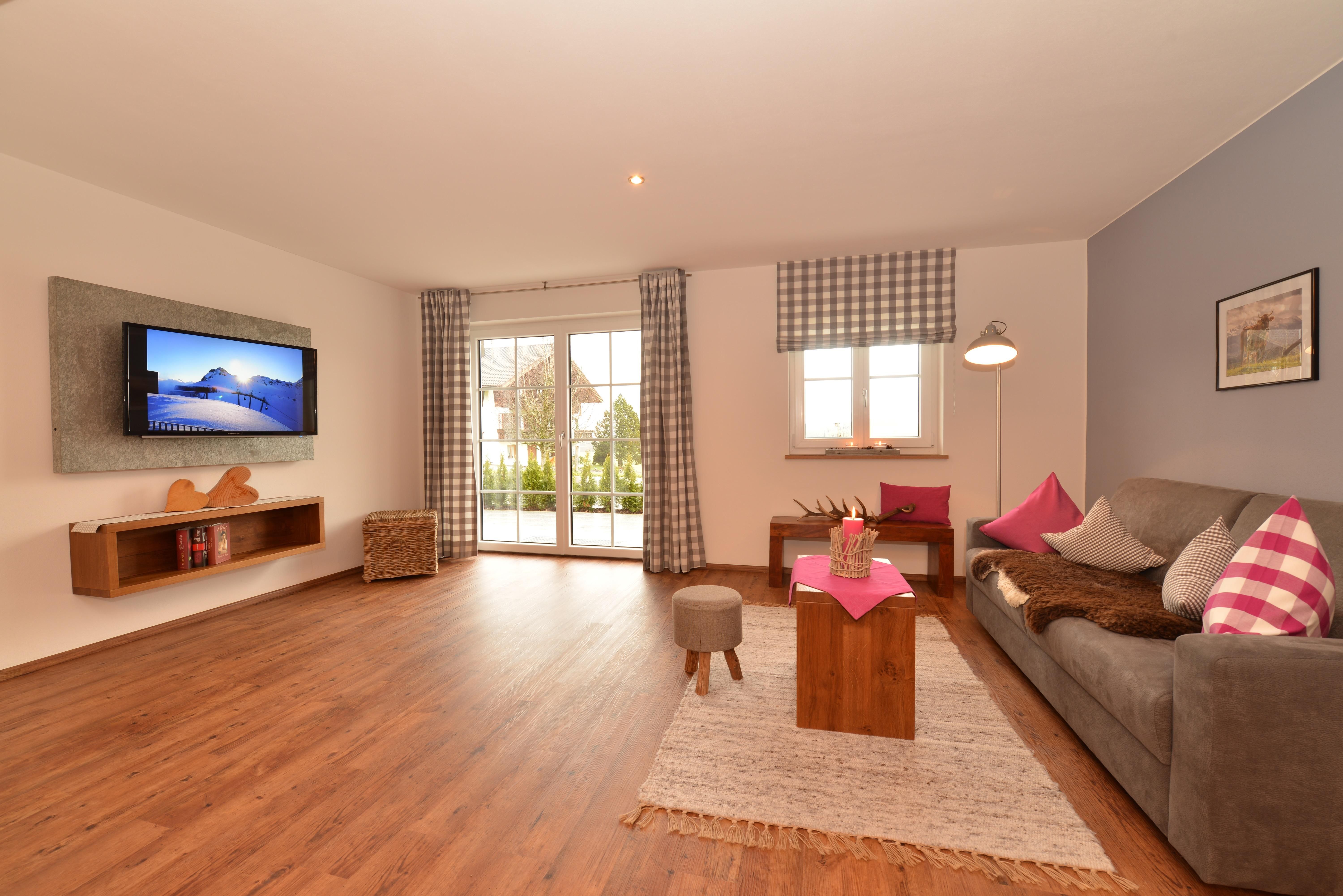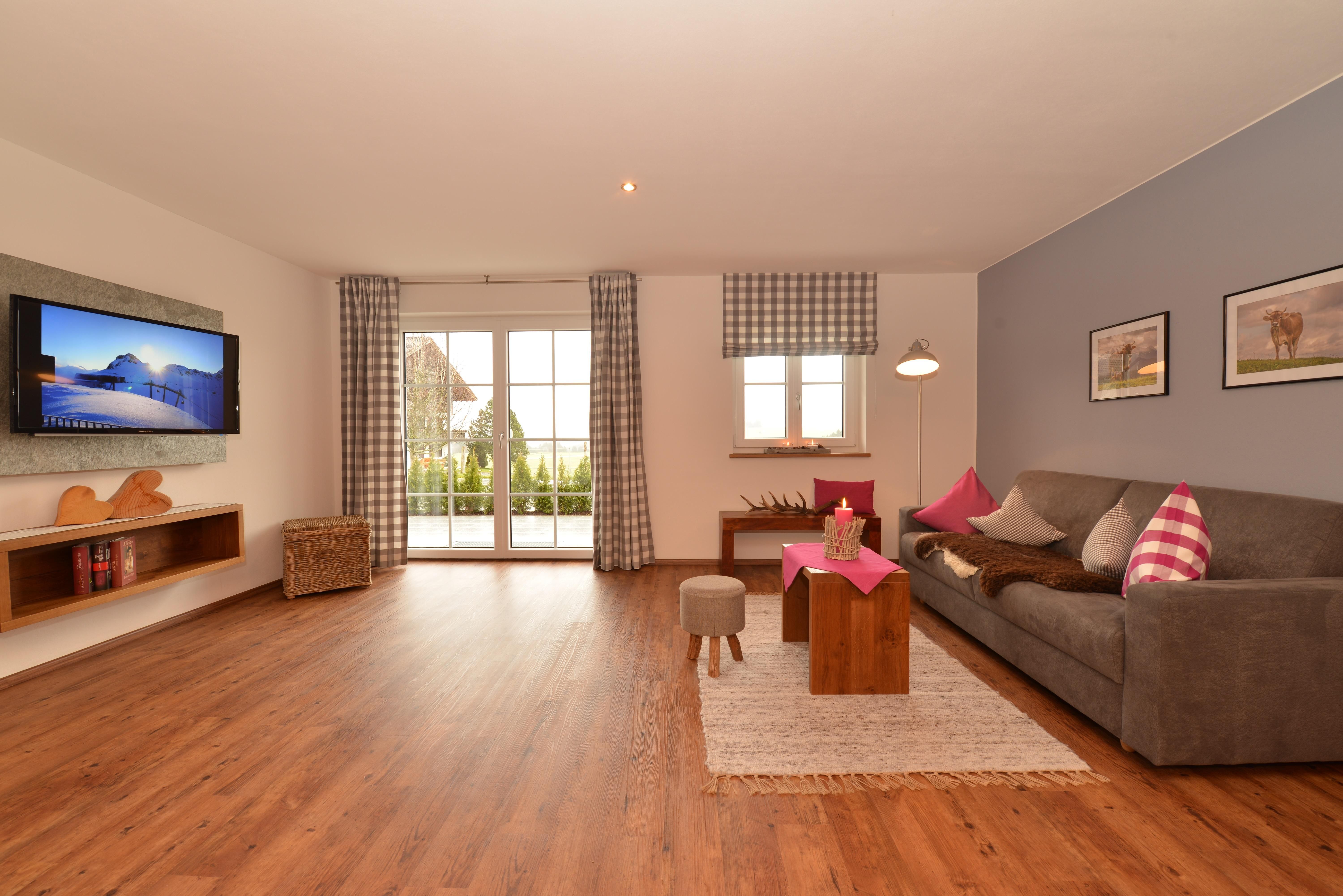 Das Appartement 201 (barrierefrei), 57 qm, im modernen Landhausstil ausgestattet, mit Designböden, liegt im EG mit Süd-Ost-Terrasse und freiem Blick auf die Oberallgäuer Bergwelt! Wohnzimmer mit Sitzecke, Flachbild-TV, gemütliche Essecke und komplett ausgestattete Küche mit allem Komfort. Wohn- /Schlafraum, Bad mit DU/WC. WLAN. Belegung mit 3 Personen möglich.