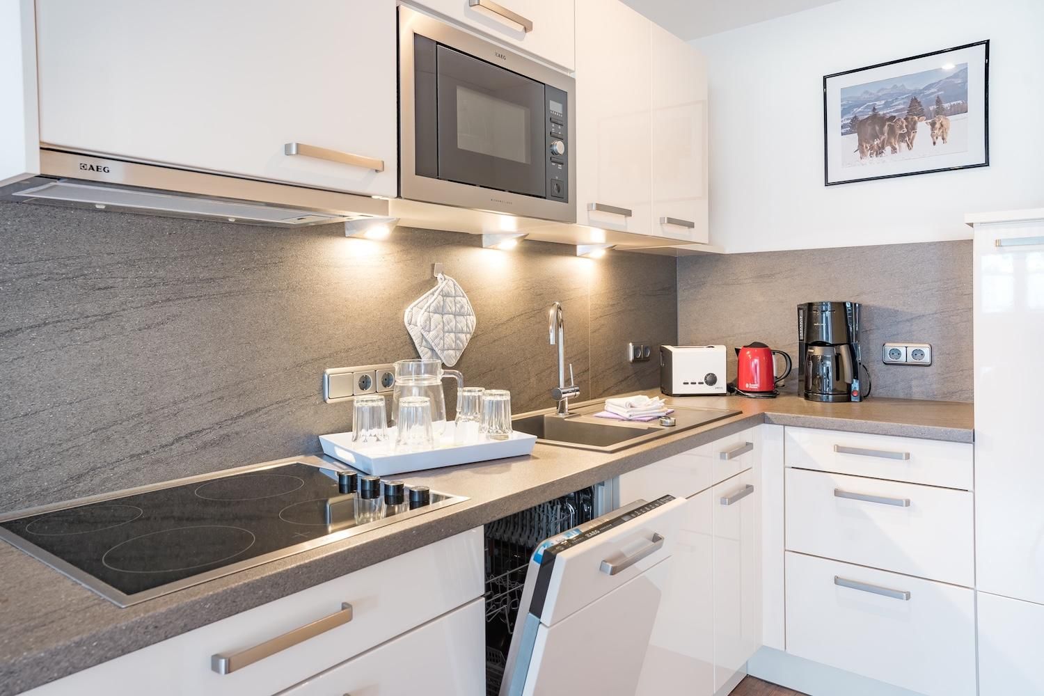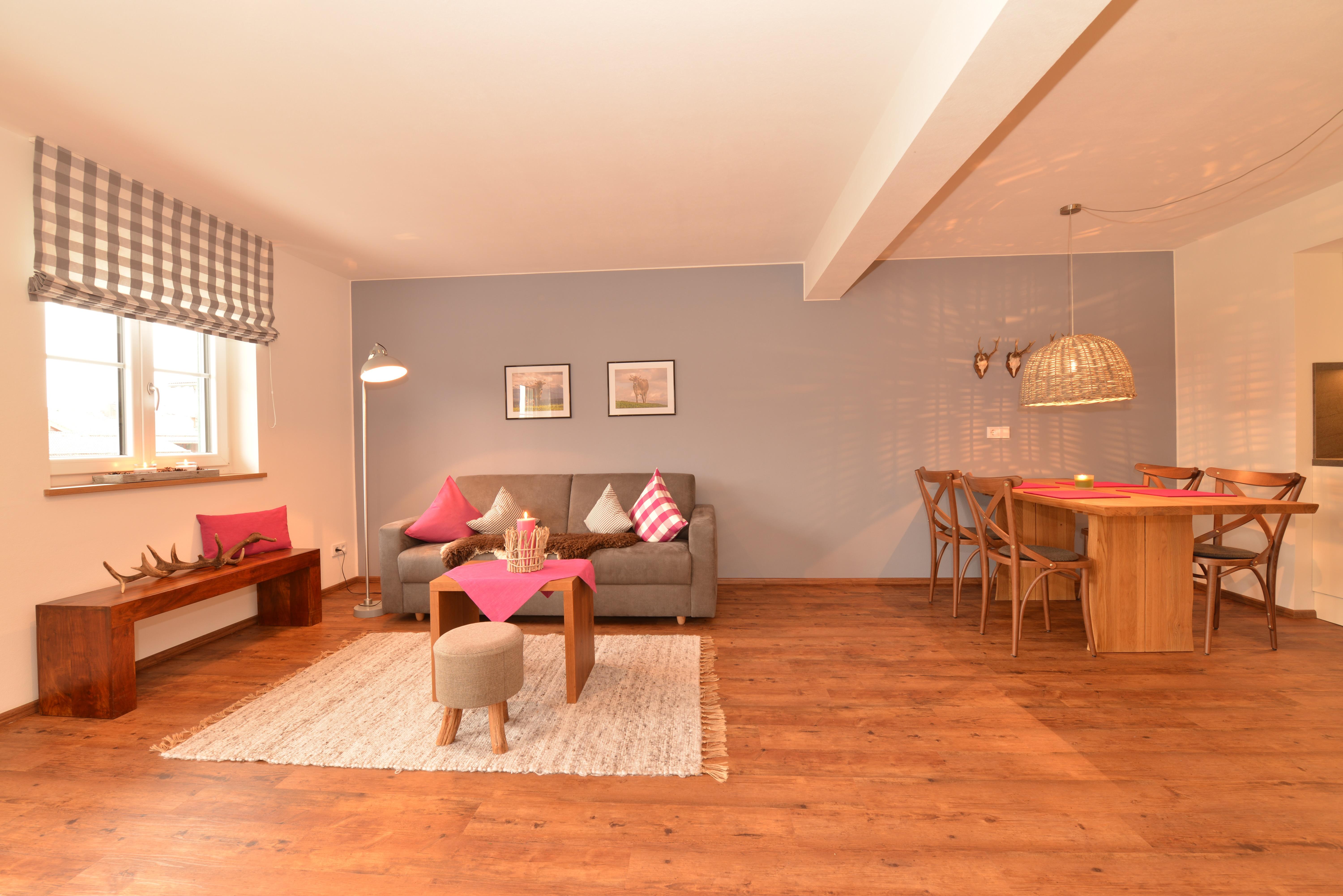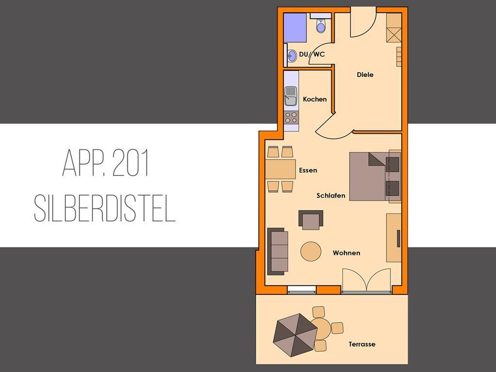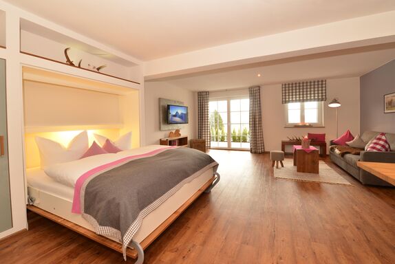 Das Appartement 201 (barrierefrei), 57 qm, im modernen Landhausstil ausgestattet, mit Designböden, liegt im EG mit Süd-Ost-Terrasse und freiem Blick auf die Oberallgäuer Bergwelt! Wohnzimmer mit Sitzecke, Flachbild-TV, gemütliche Essecke und komplett ausgestattete Küche mit allem Komfort. Wohn- /Schlafraum, Bad mit DU/WC. WLAN. Belegung mit 3 Personen möglich.